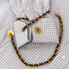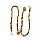 - Gold tone chainlink with black woven leather