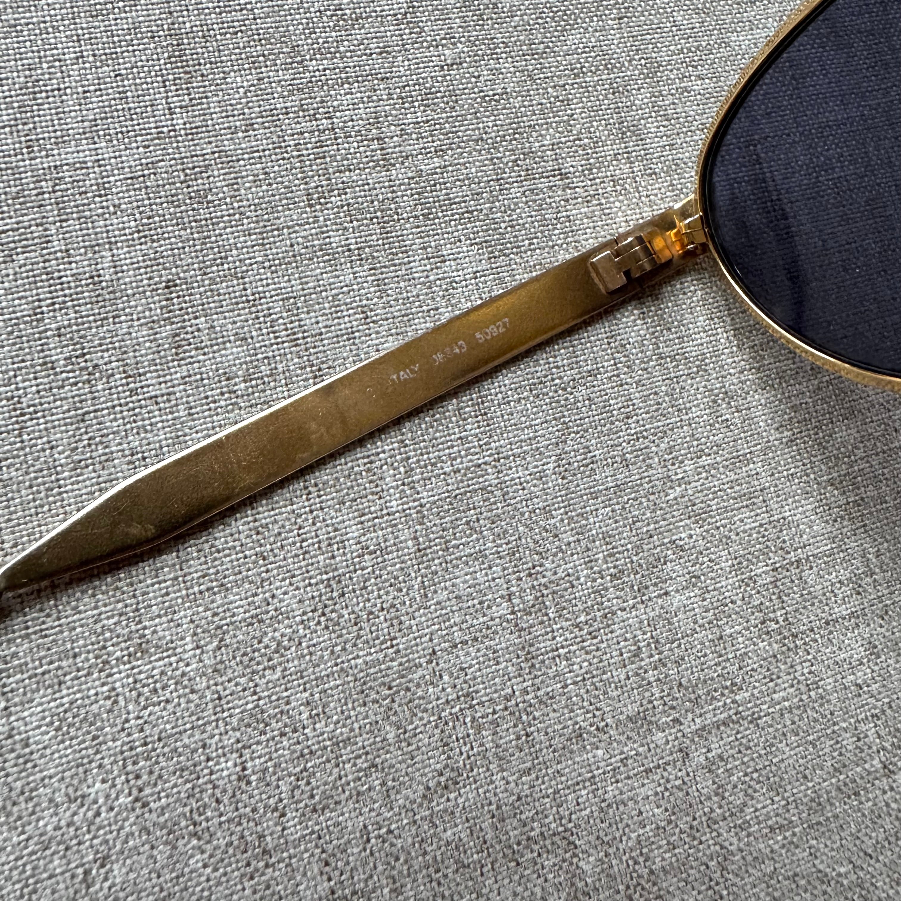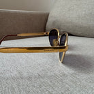 - Gold tone arms with brown rubber tips