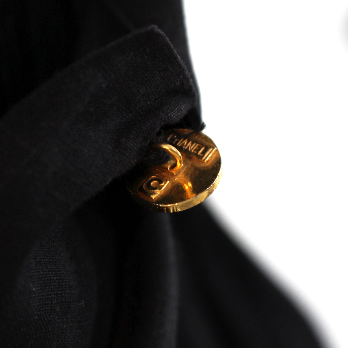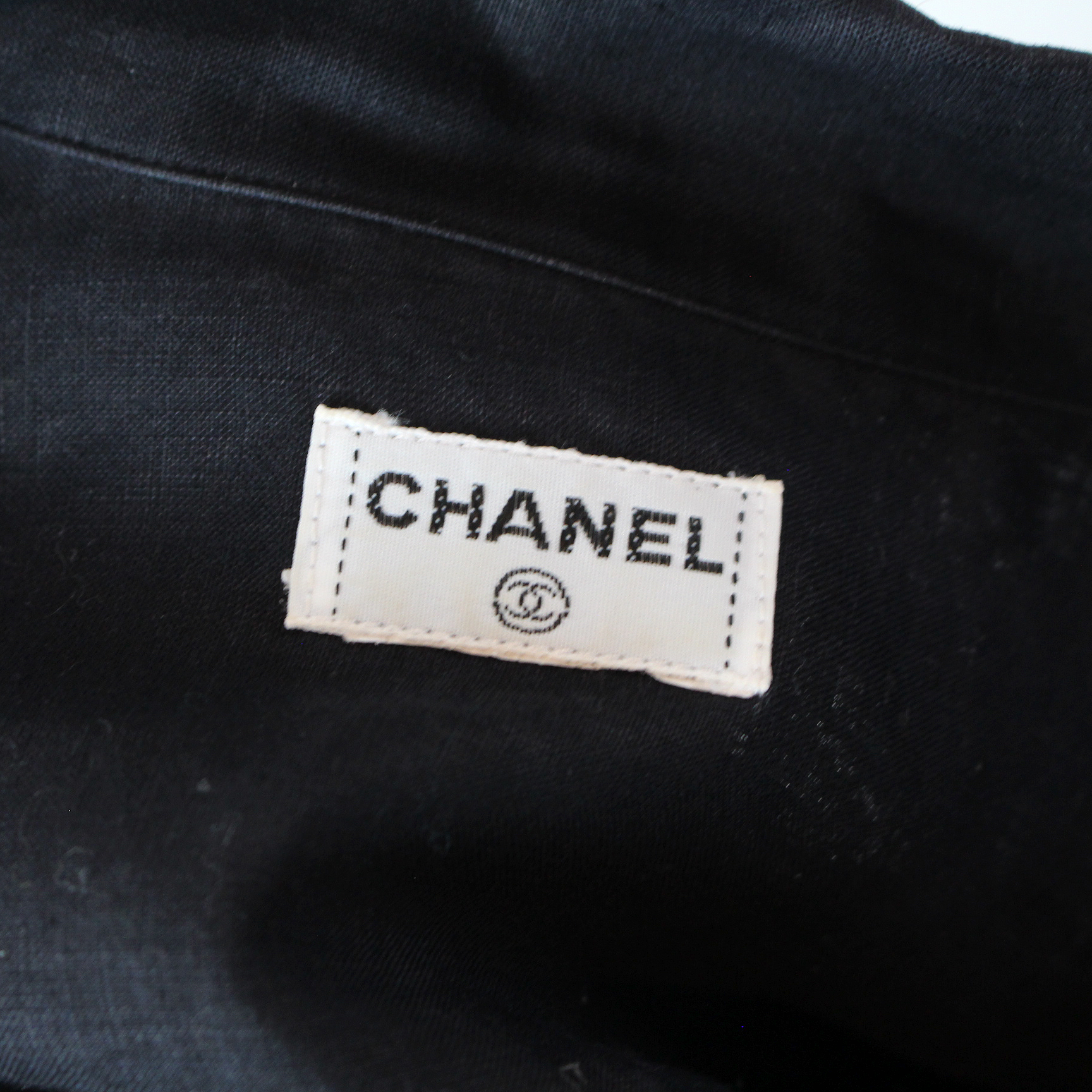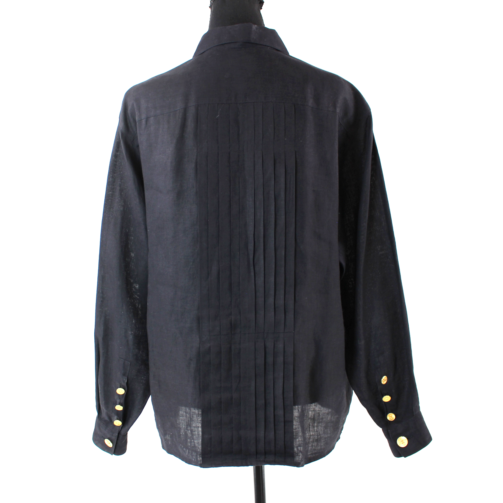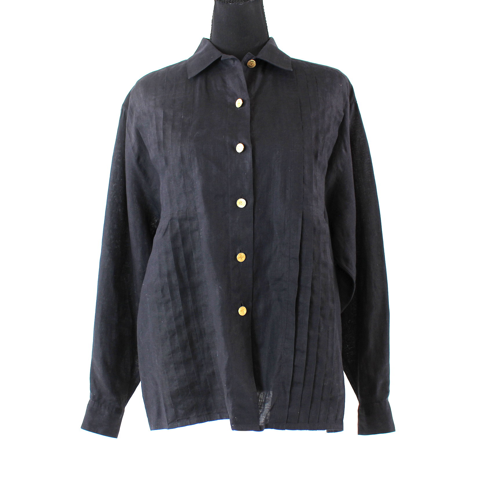 Chanel Black Linen Pintuck Gold CC Logo Button-Up Tunic Blouse