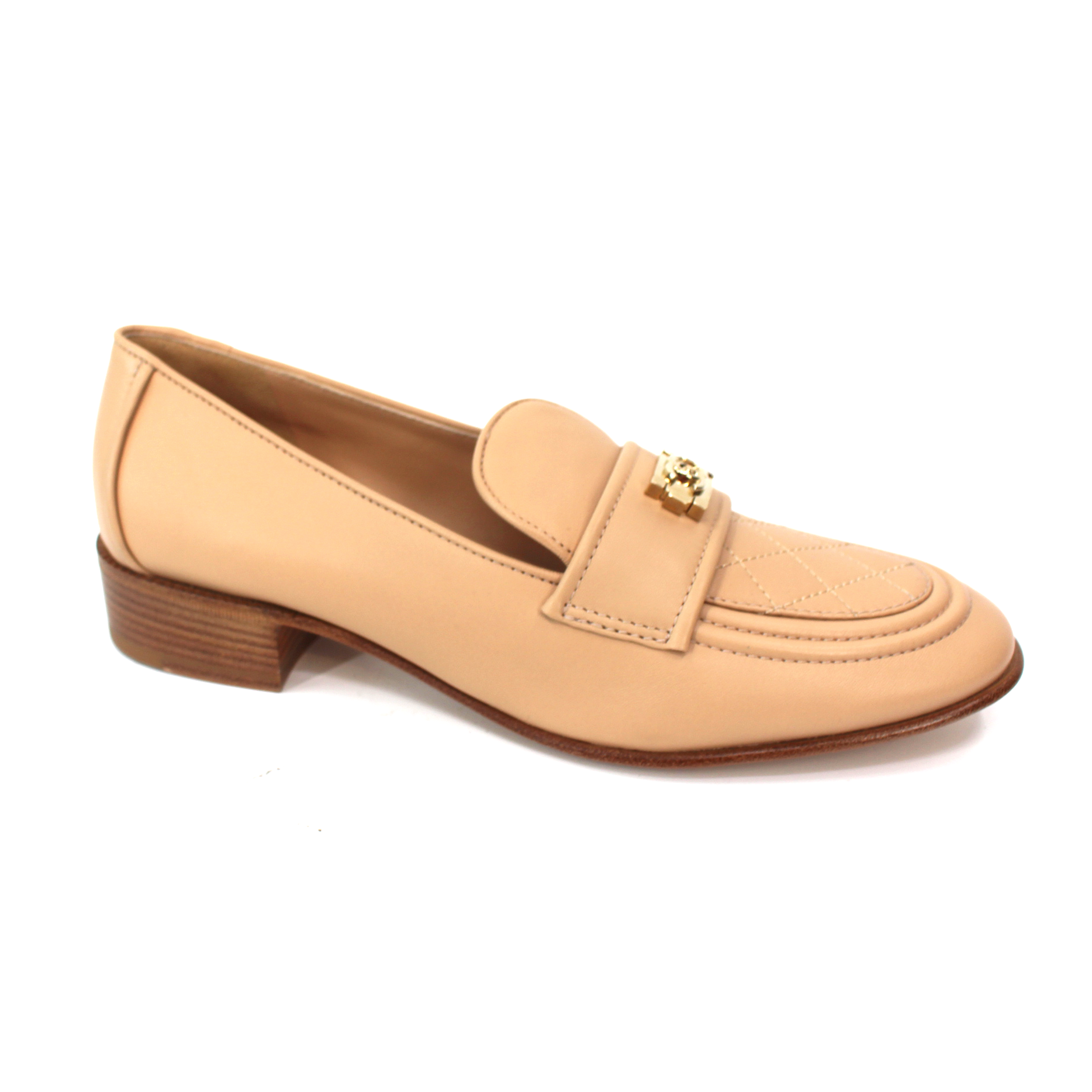 Chanel 20B Dark Beige Quilted Boy Lego CC Gold Moccasin Loafer