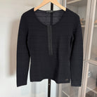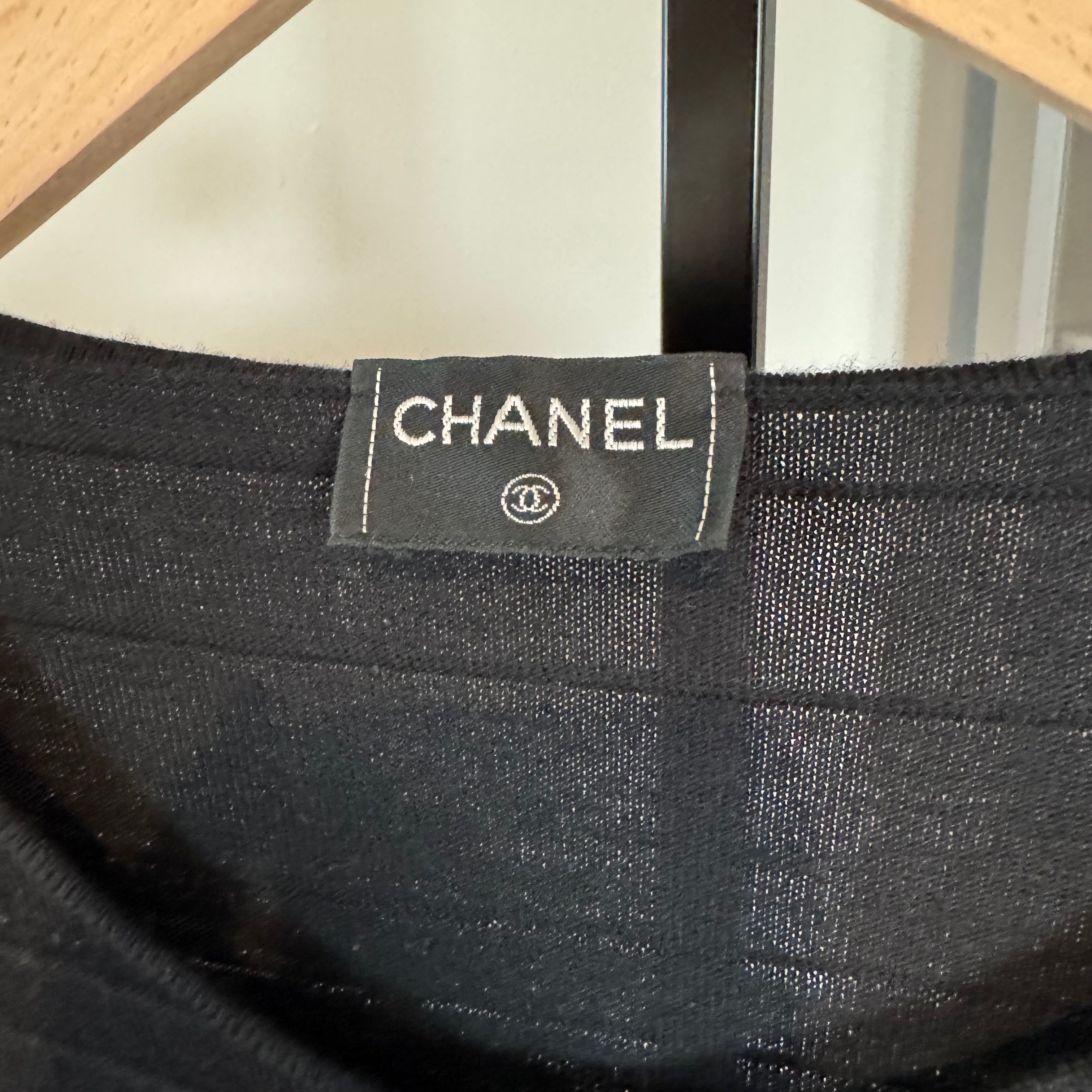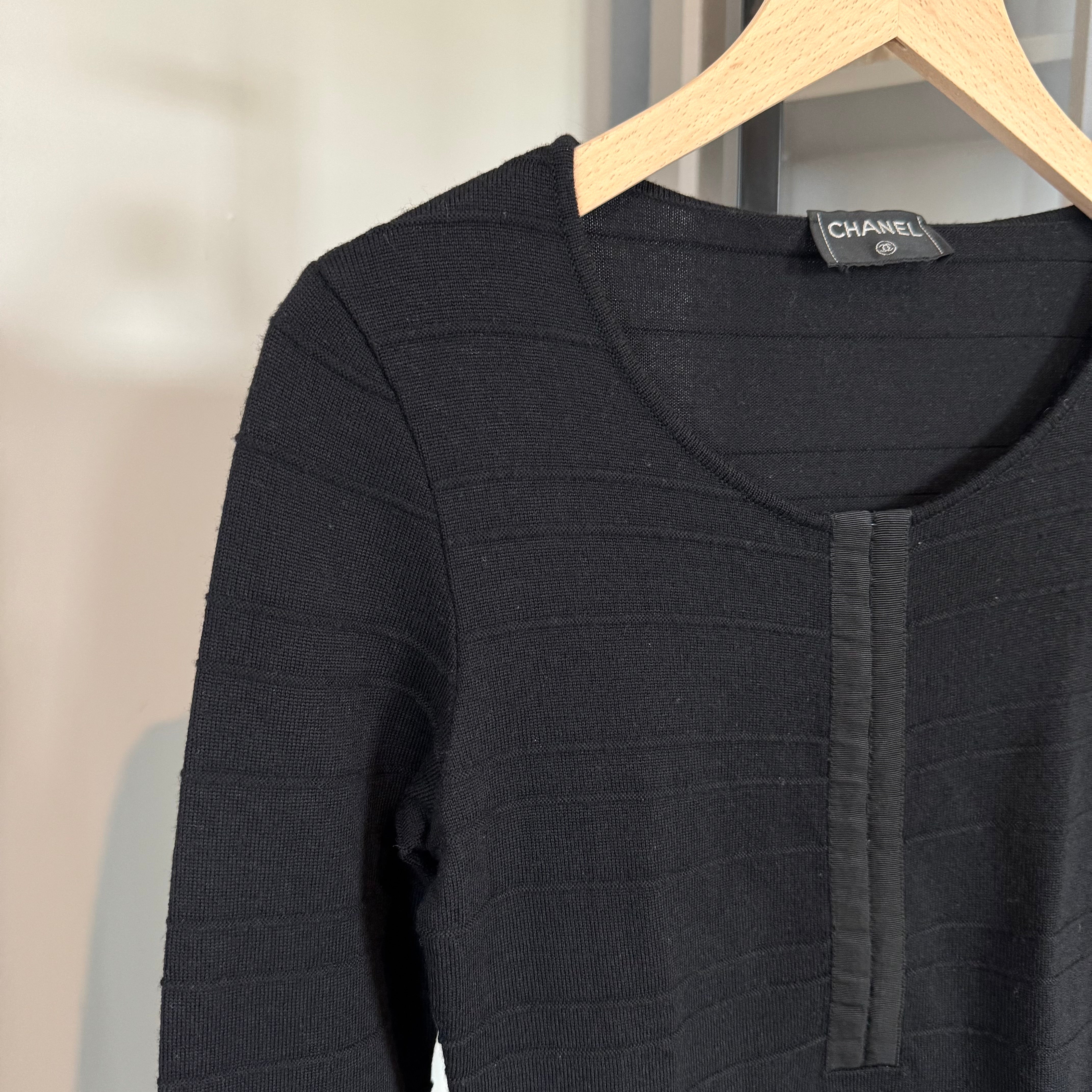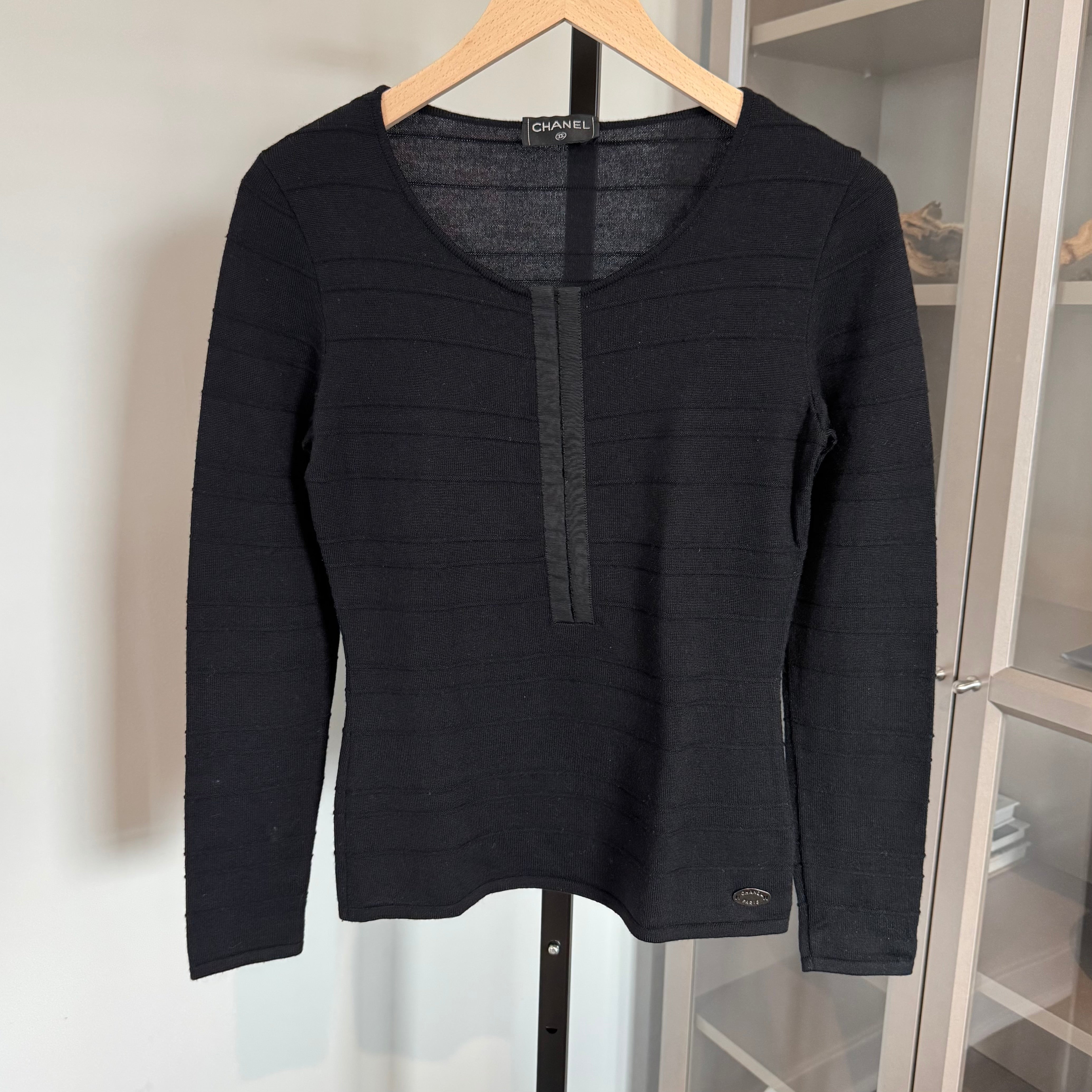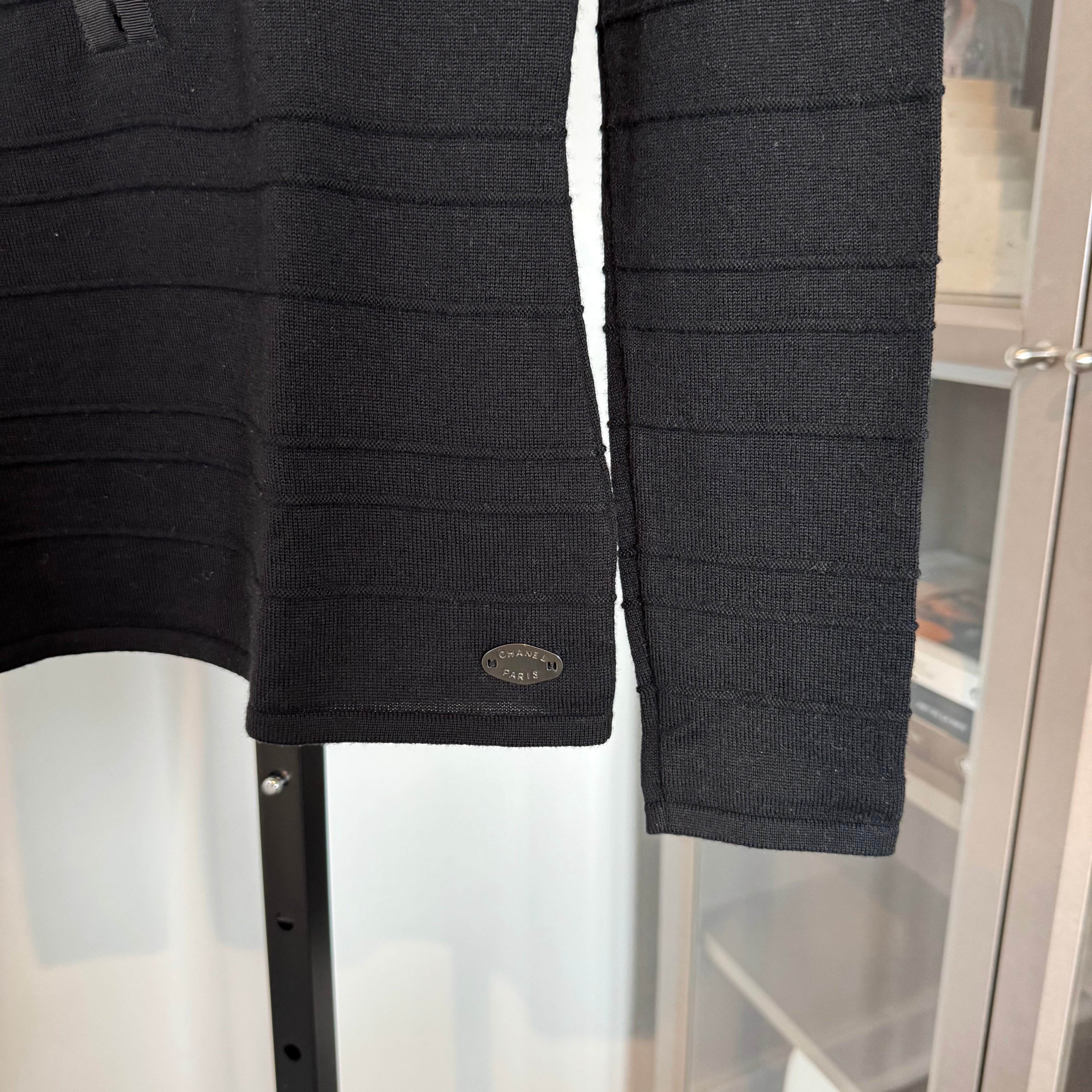 Chanel Black Wool Scoop Neck Hook & Eye Placket Sweater