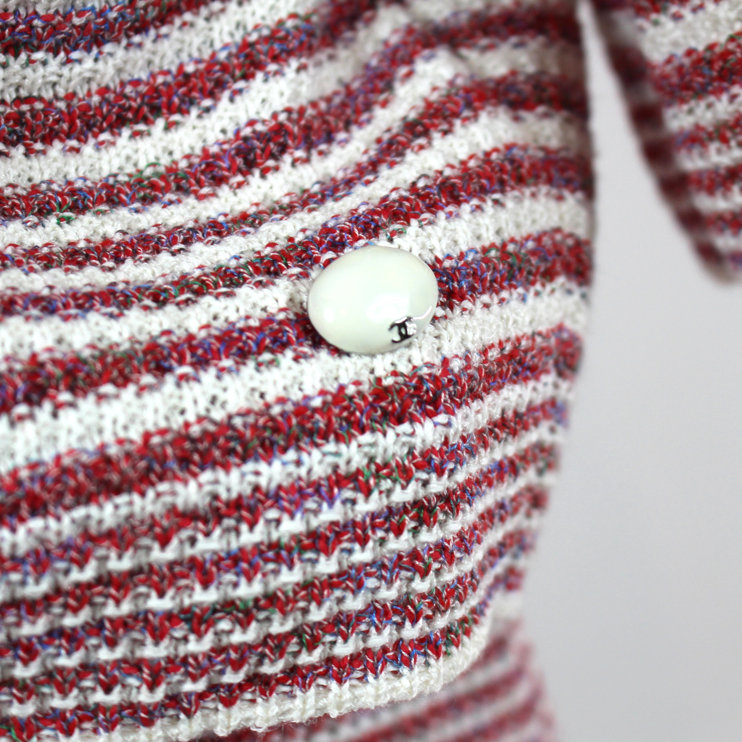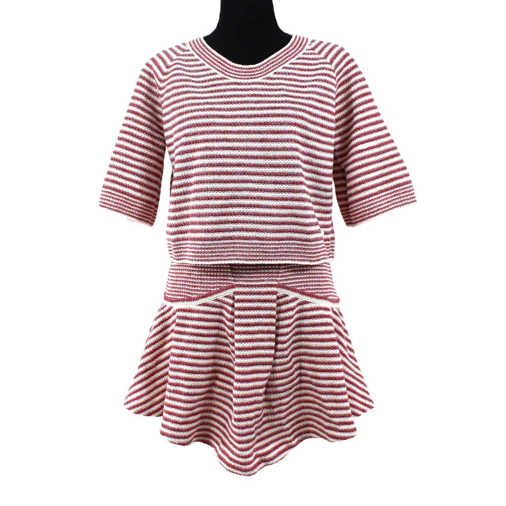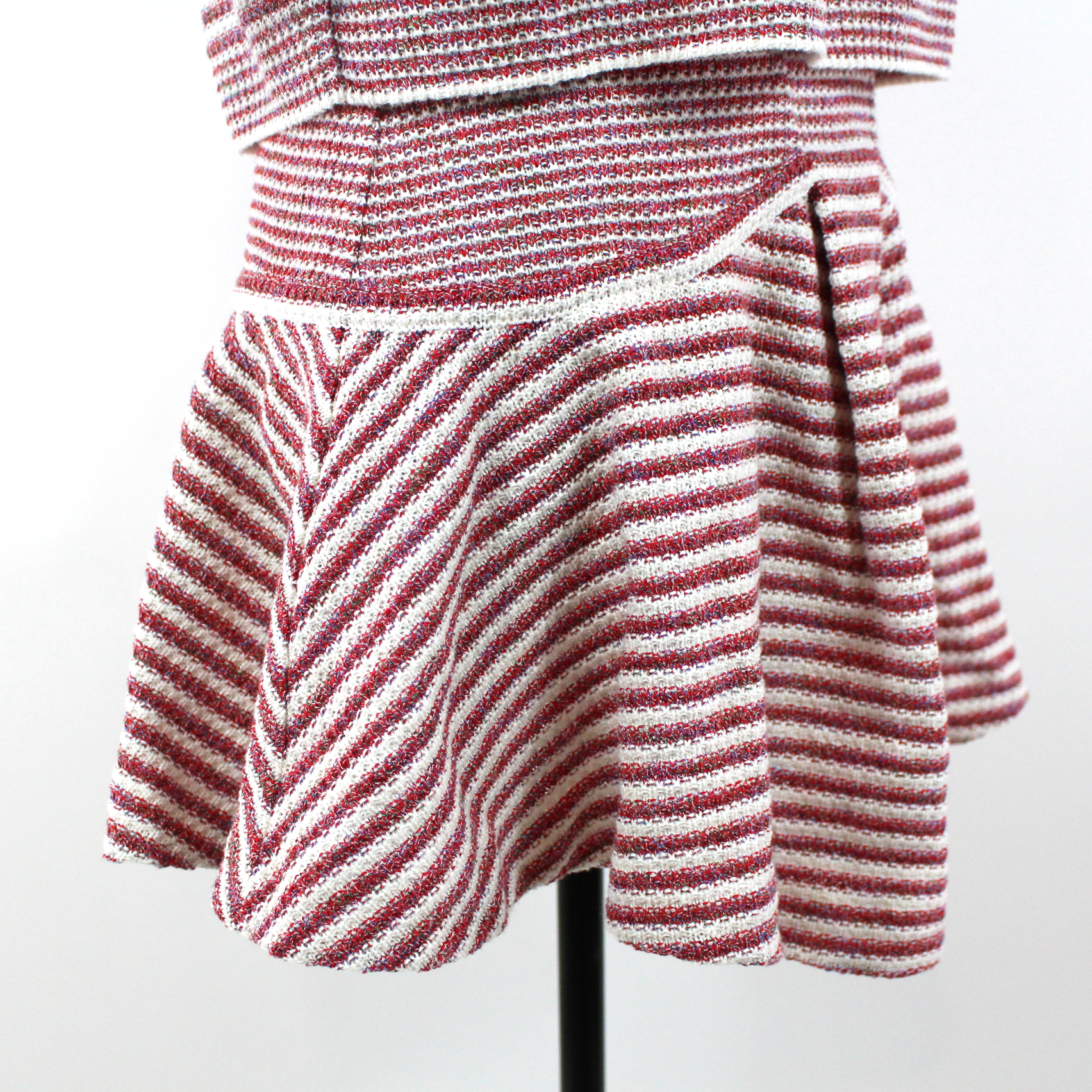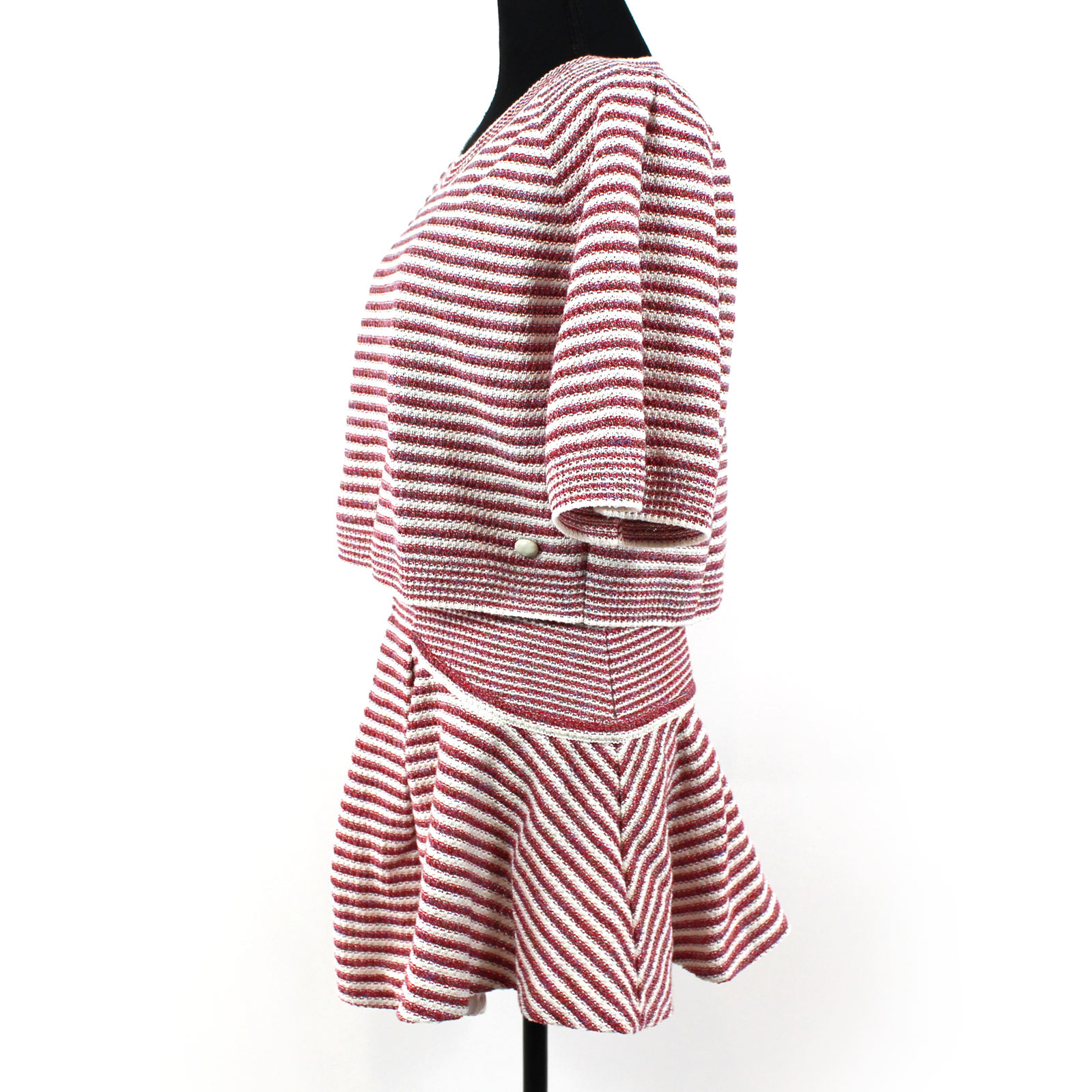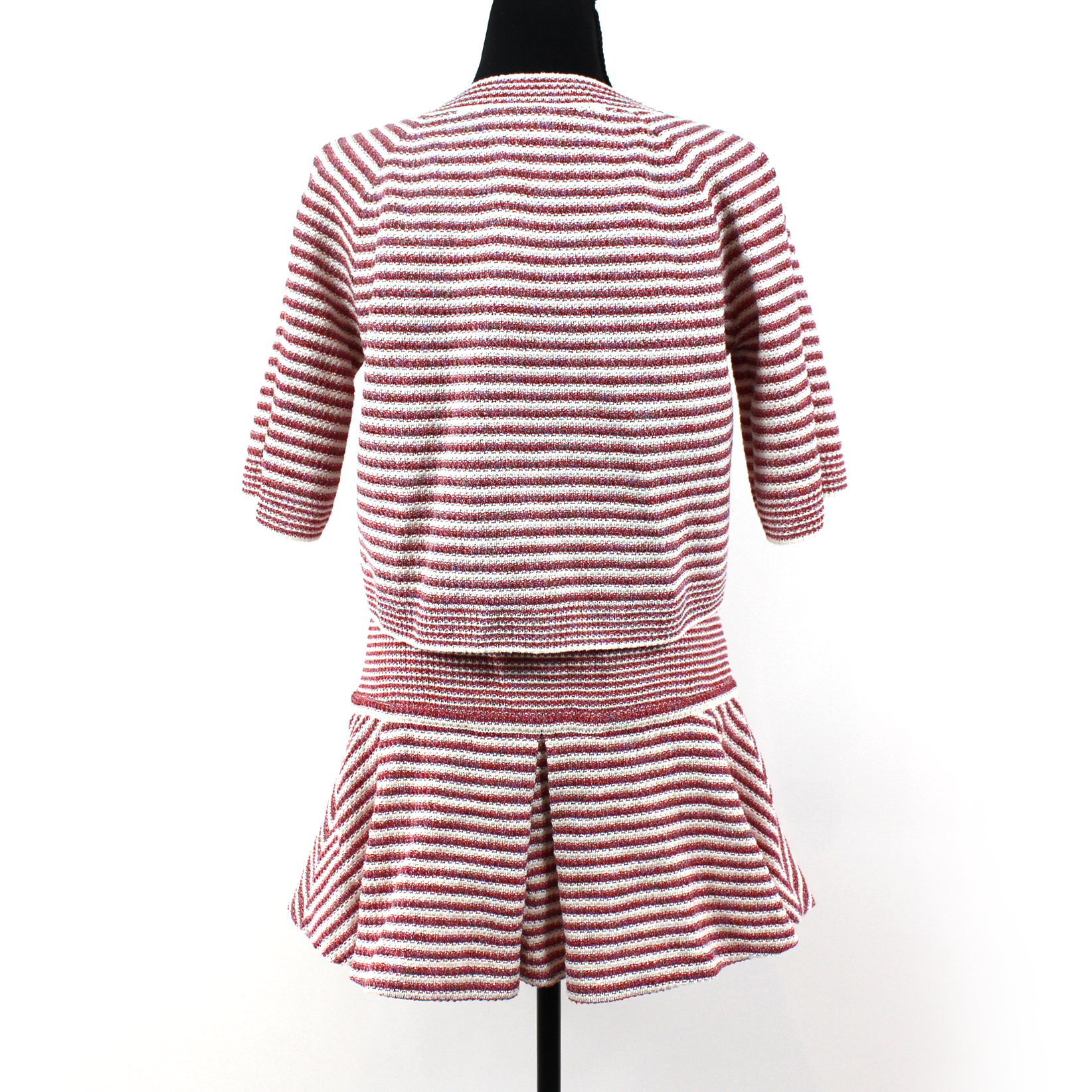 Chanel Red White Striped Knit Boxy Sweater Mini Skirt Matching Outfit