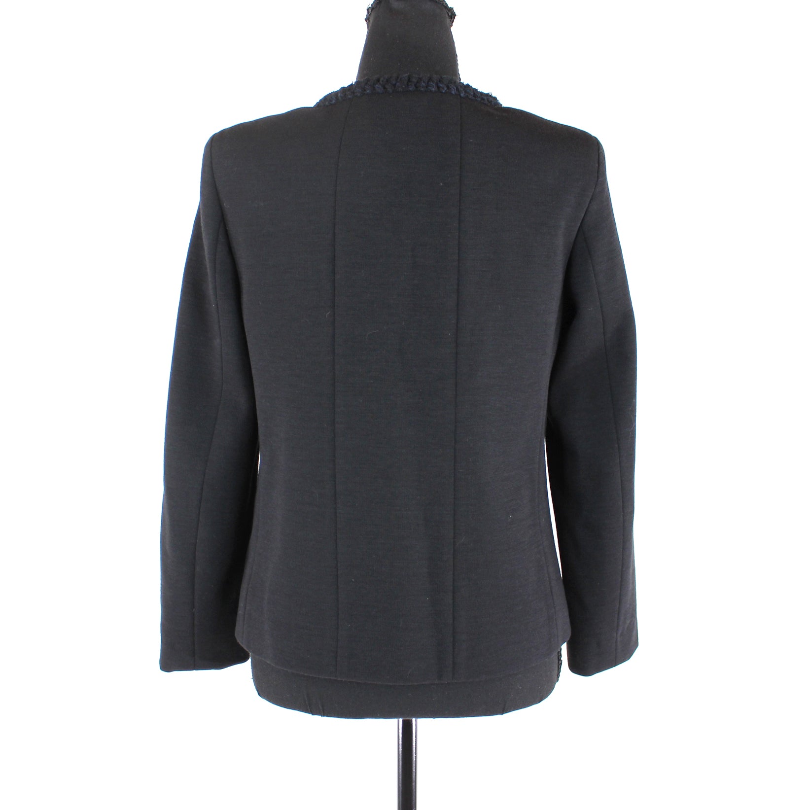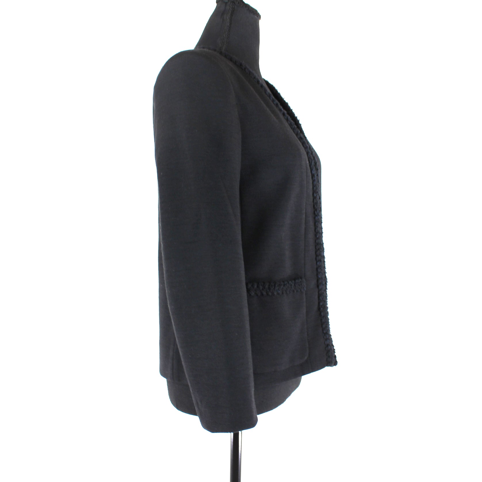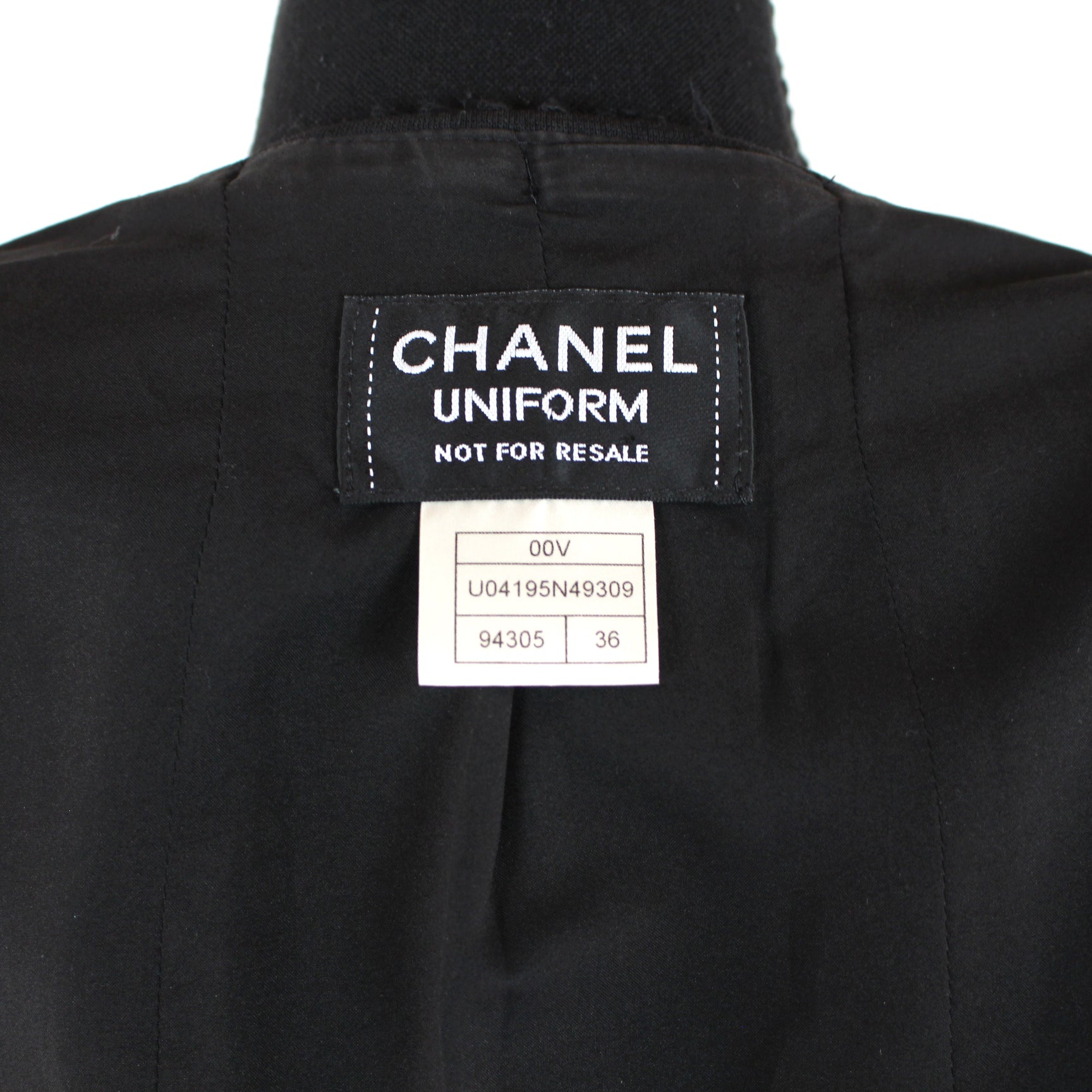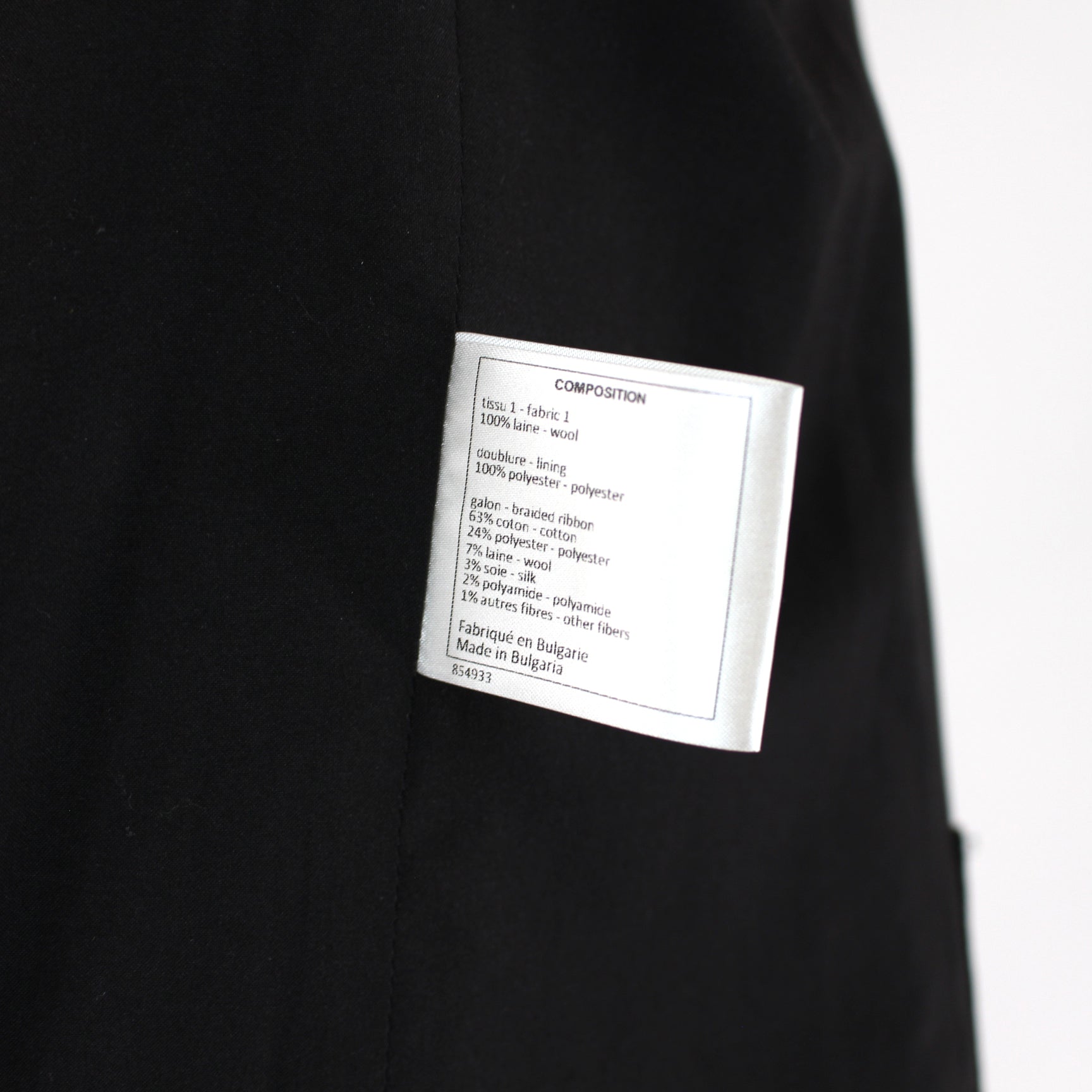 Chanel Uniform Black Wool Navy Braided Detail Trim Blazer Jacket