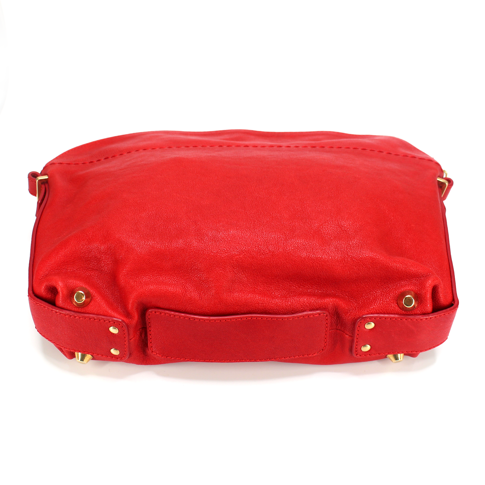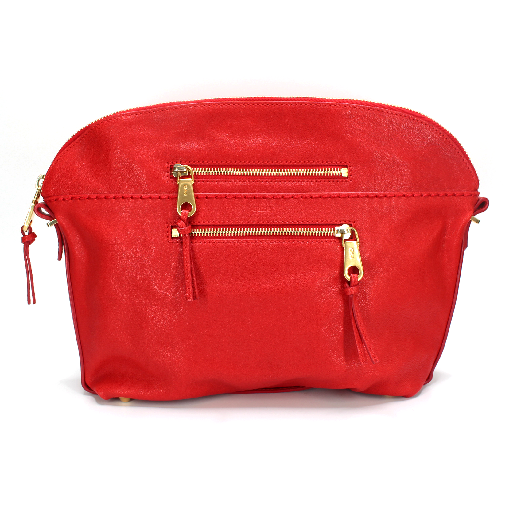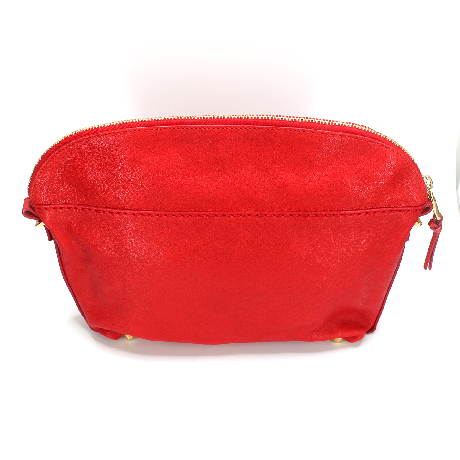 Chloe' Red Leather Clutch Cosmetic Pouch with Gold Hardware