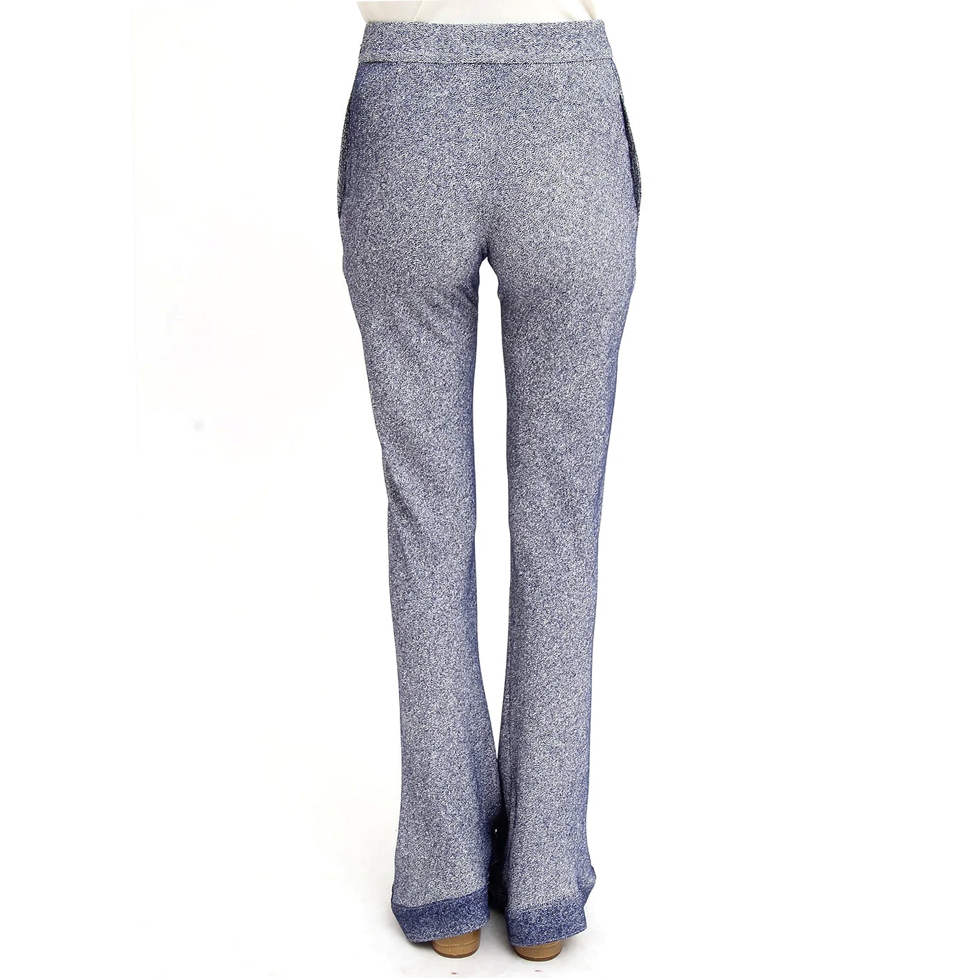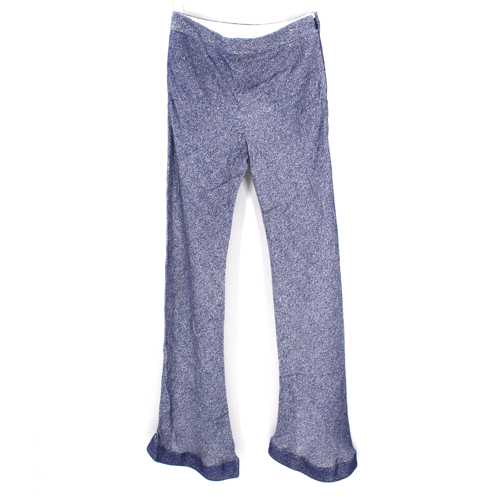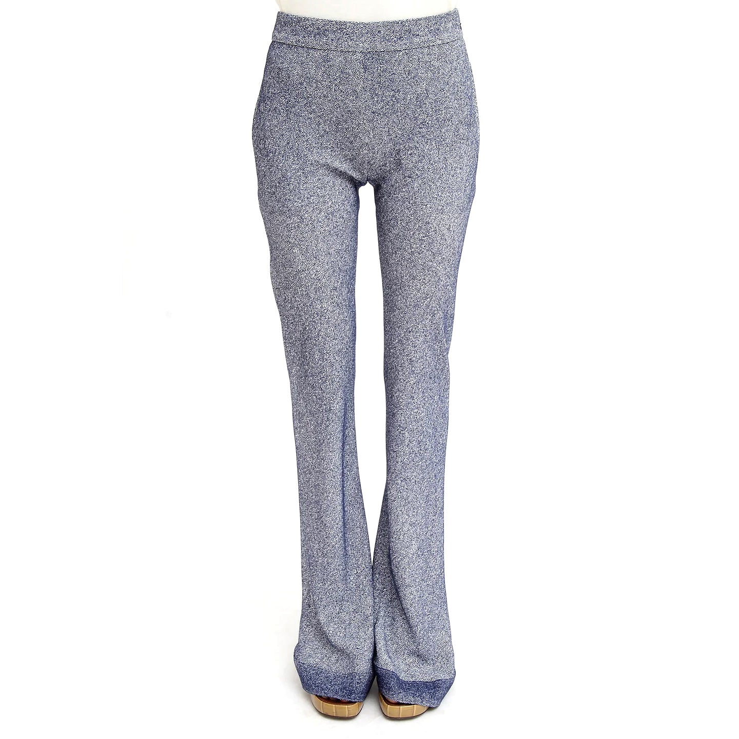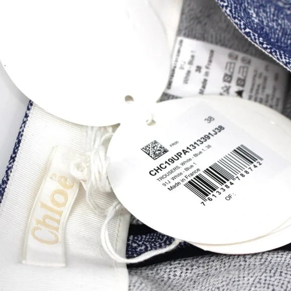 Chloé Silk Blend Royal Blue White Flat Front Trouser Bell Cuff Pants.