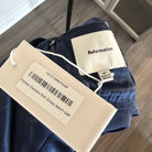 Reformation Daniela Silk Navy Blue Deep V-Neckline Maxi Dress