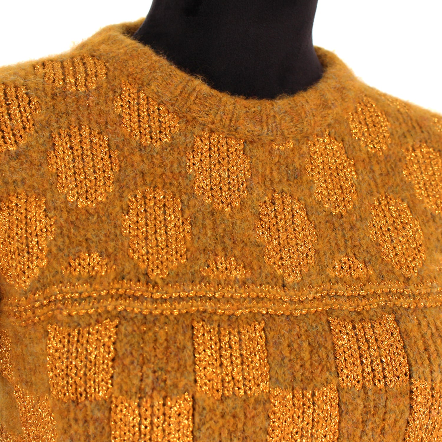 This gorgeous checkered sweater from Roberto Collina features gold metallic threads and warm long sleeves.