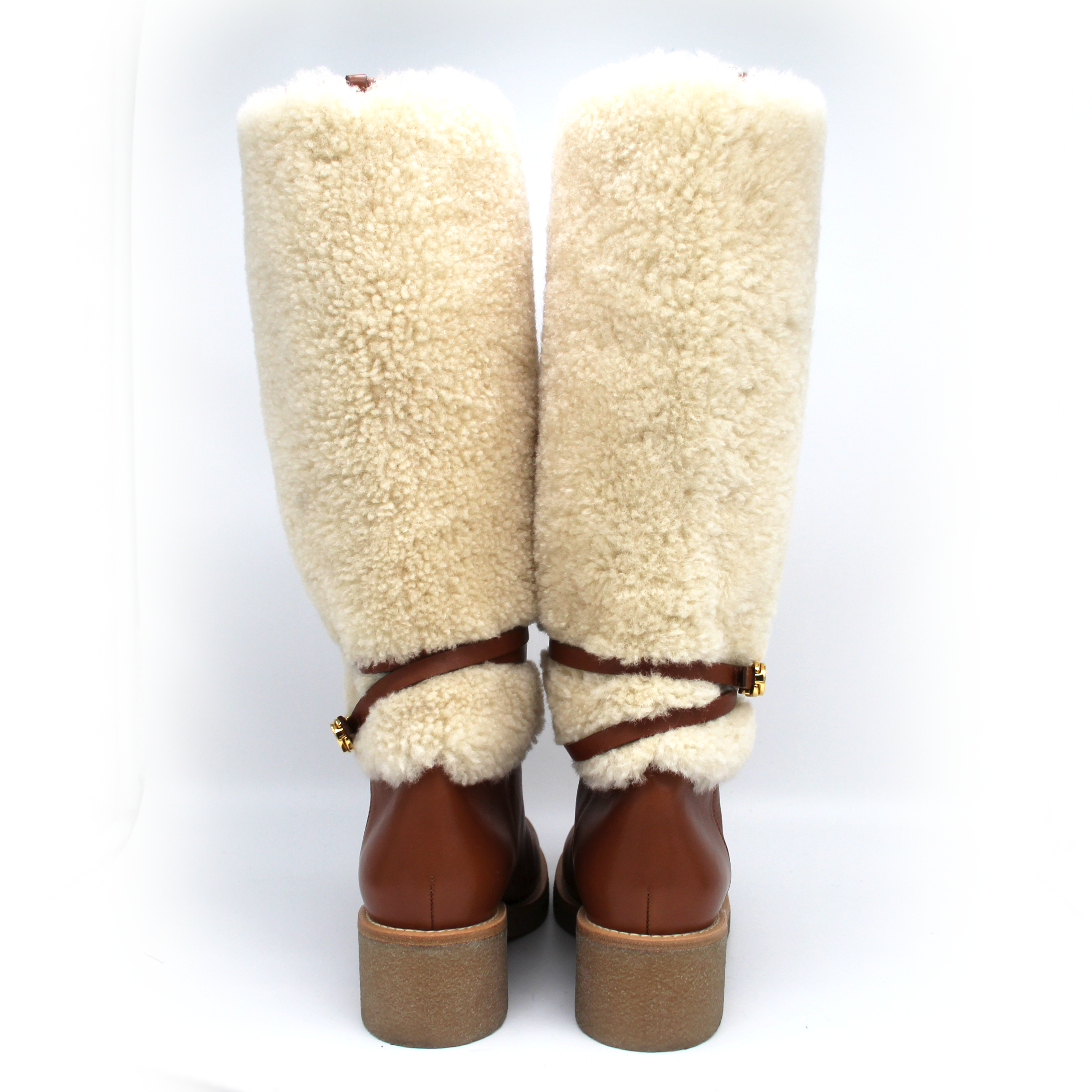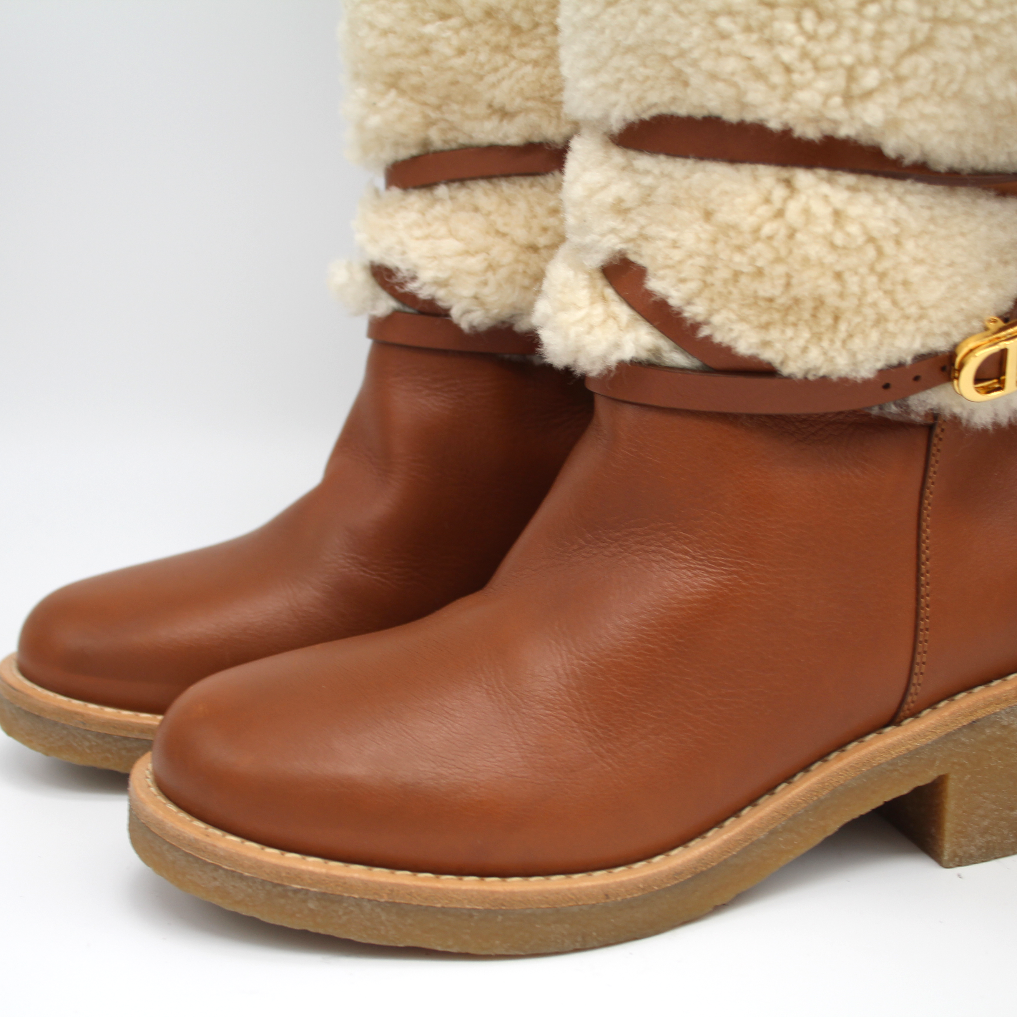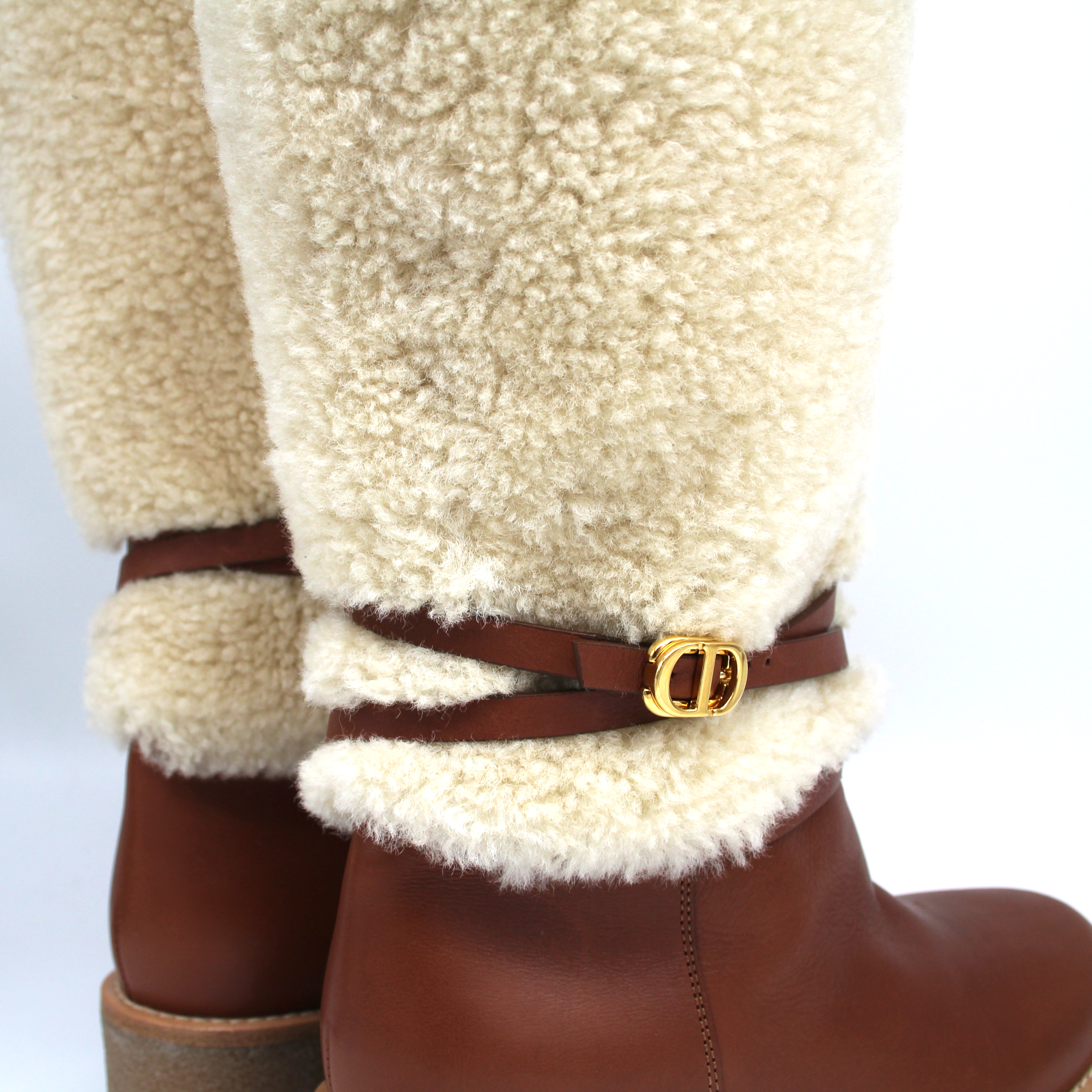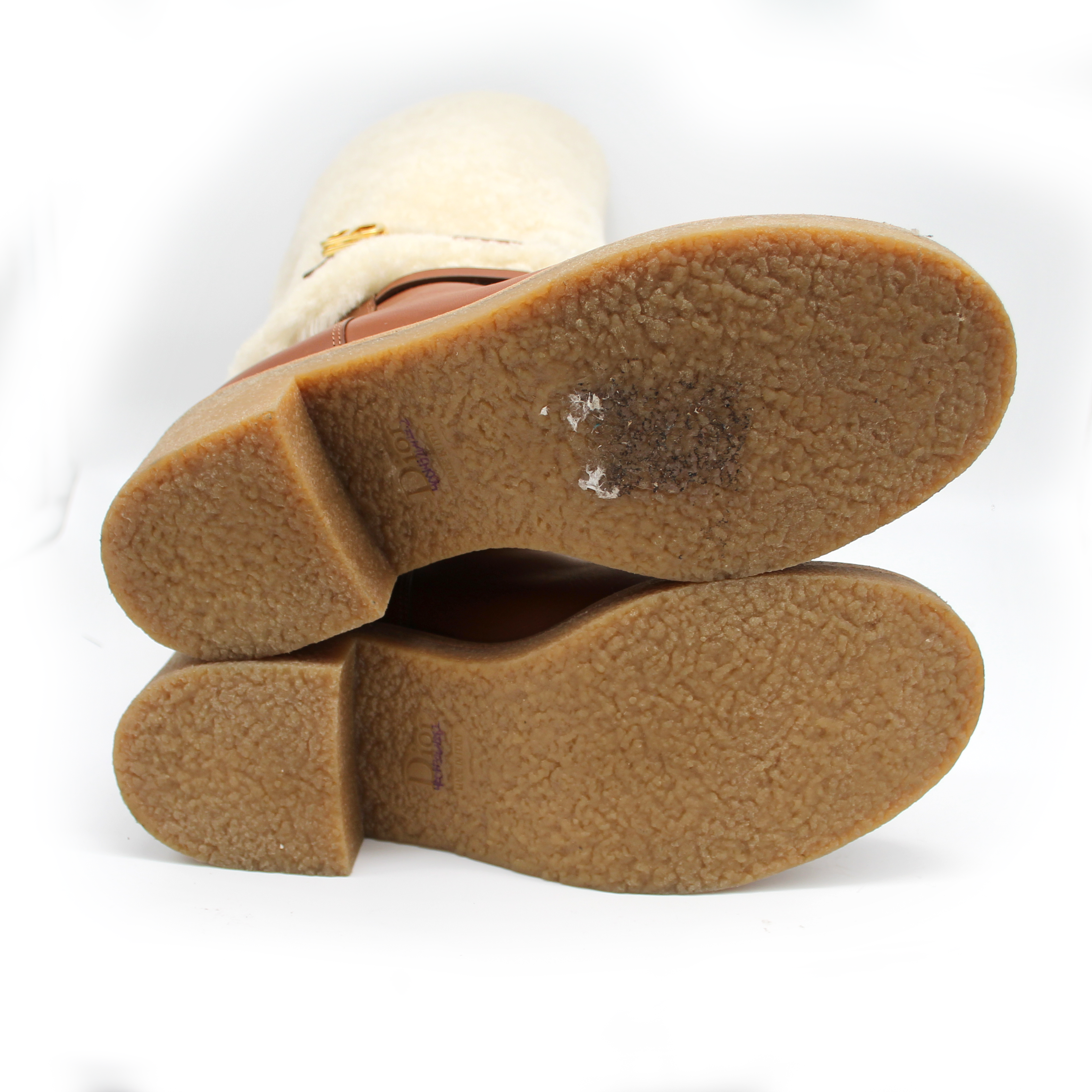 Christian Dior Leather D Furious Shearling Knee High Riding Boots.