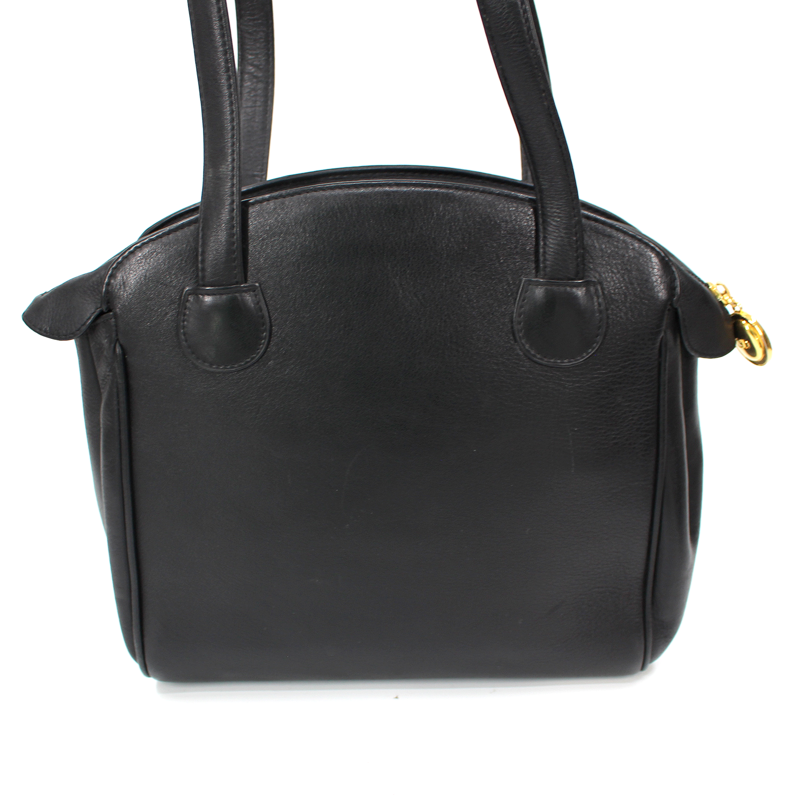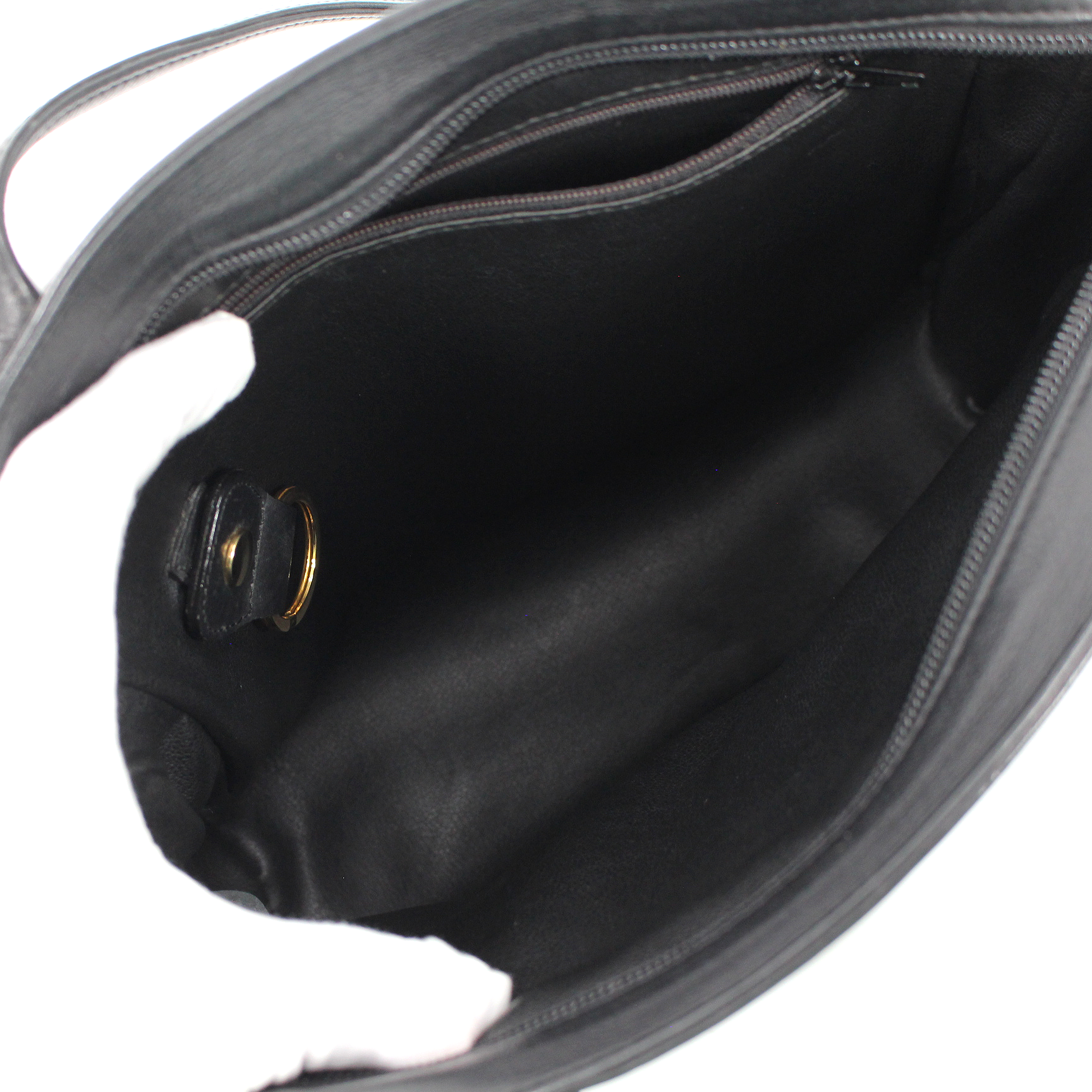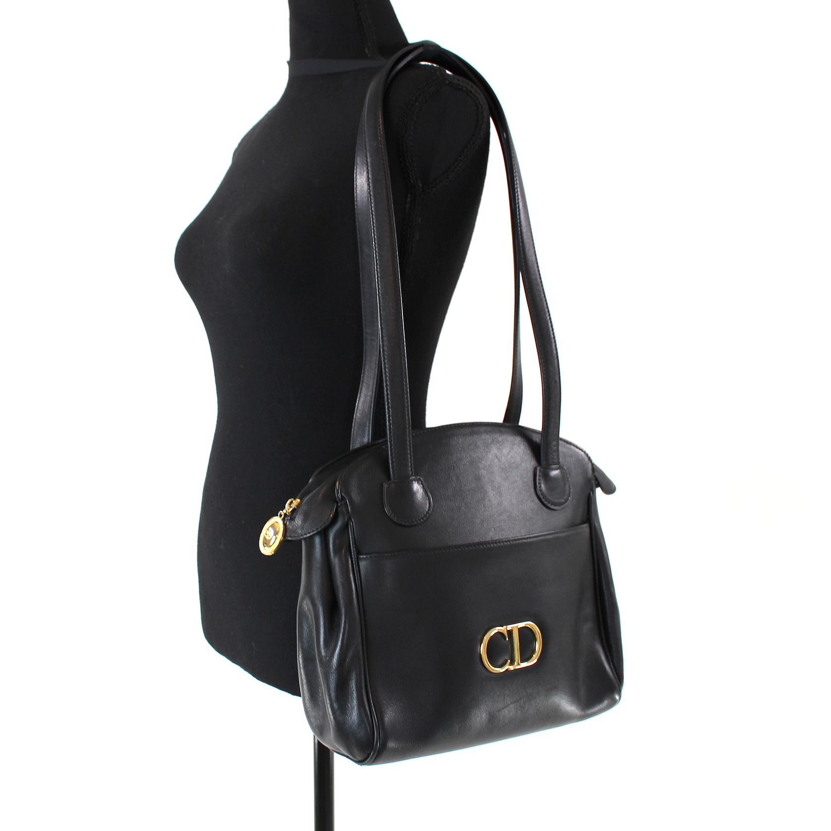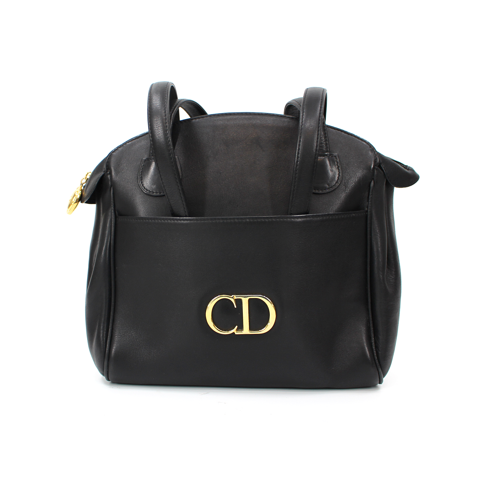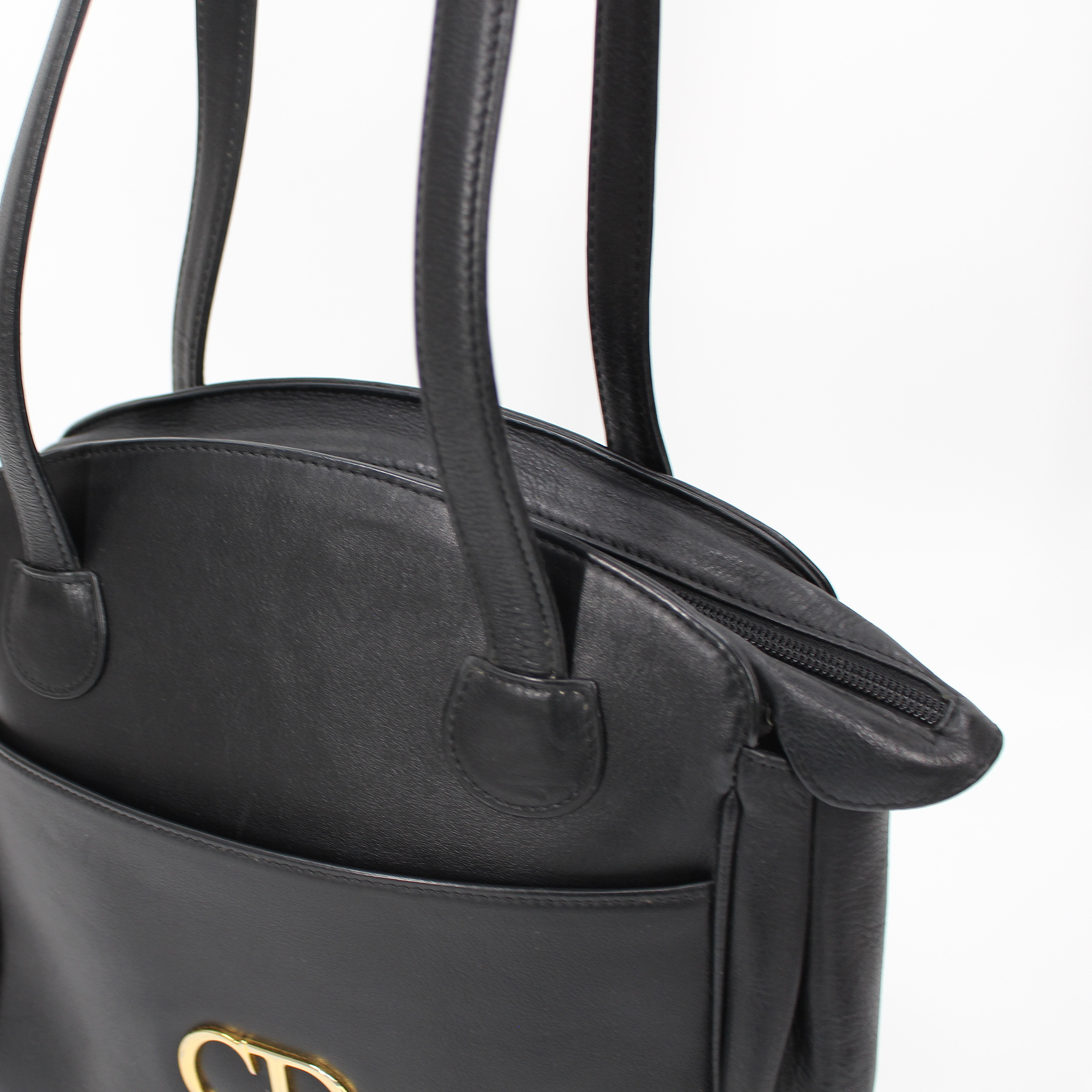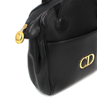 Christian Dior Black Leather Gold Metal Logo CD Zip Shoulder Bag