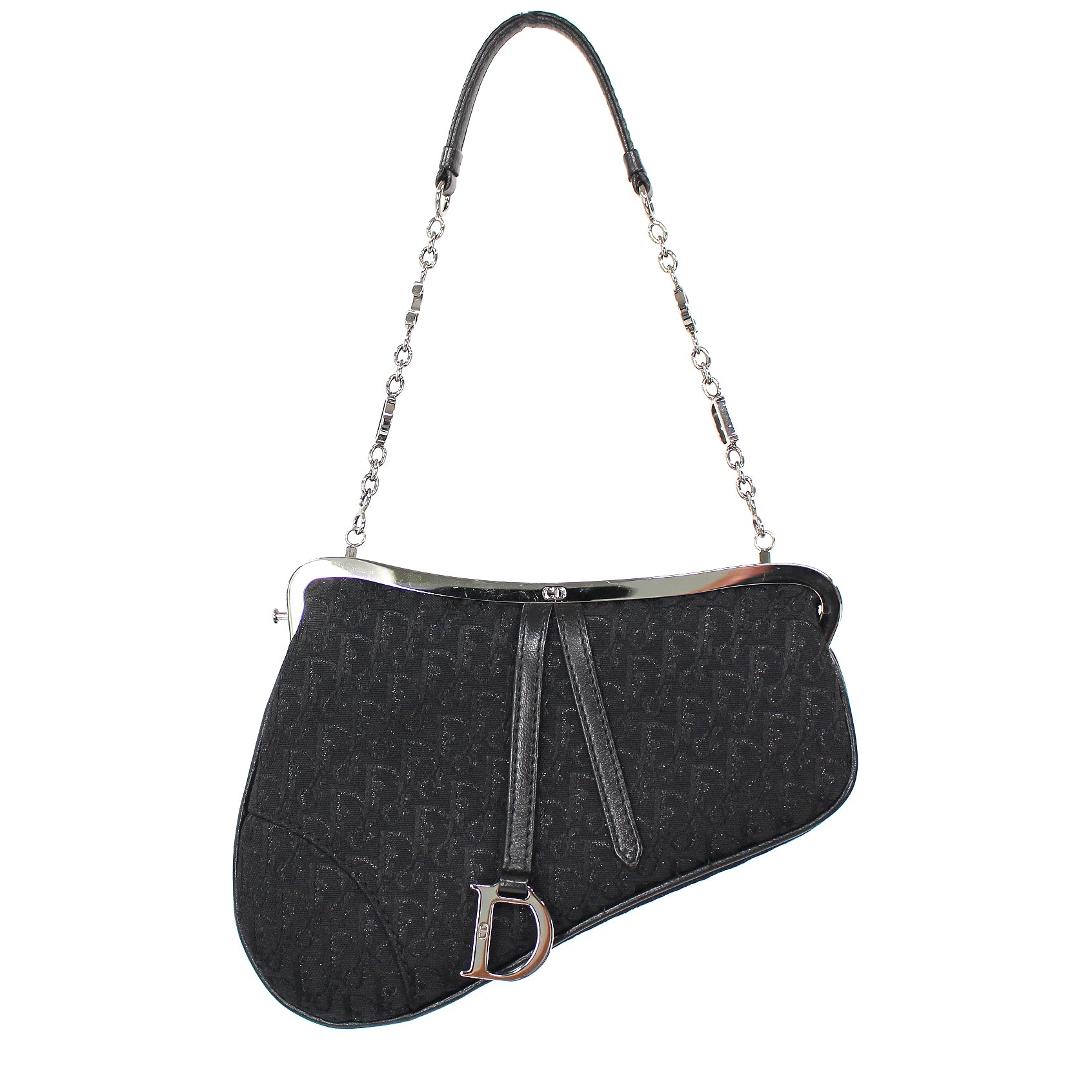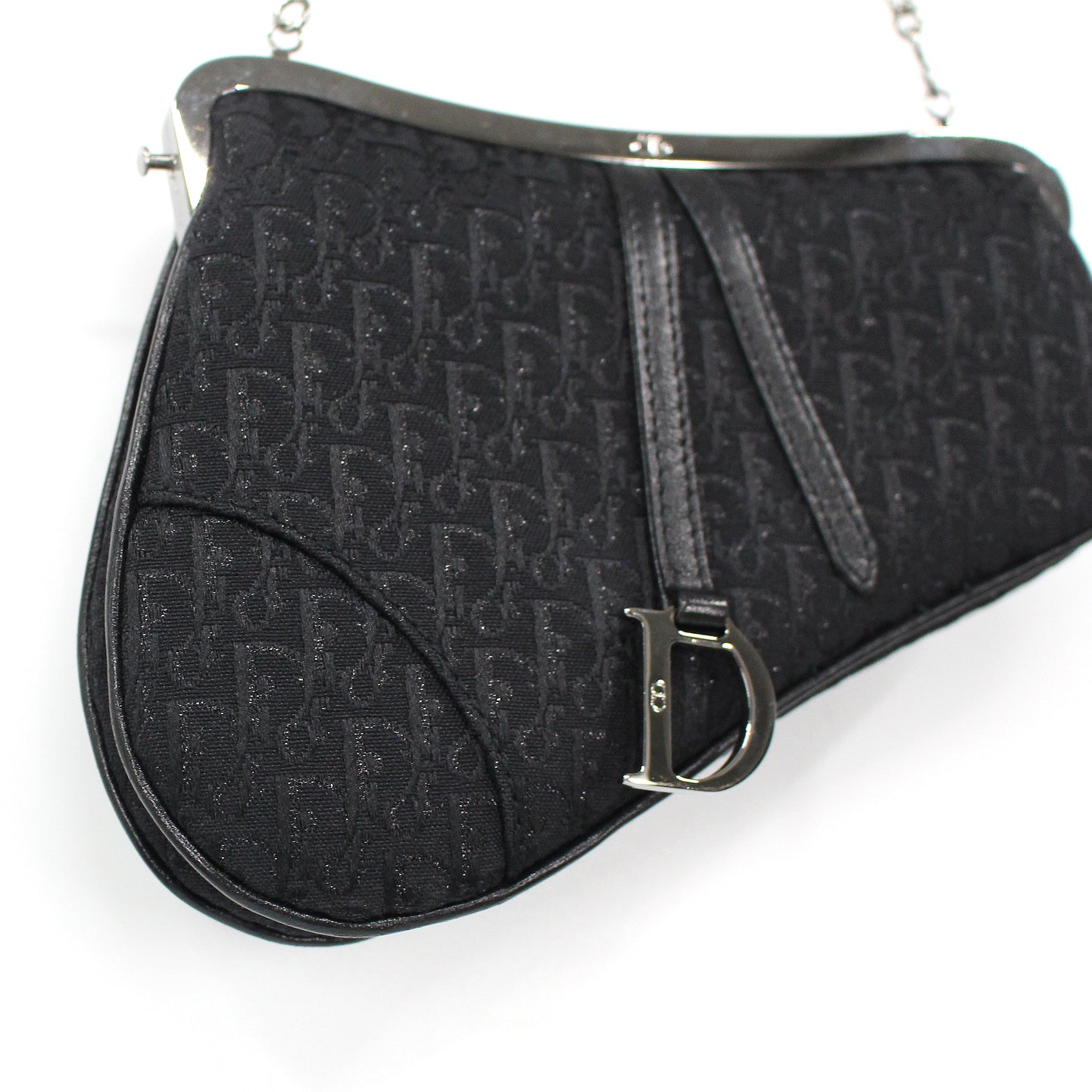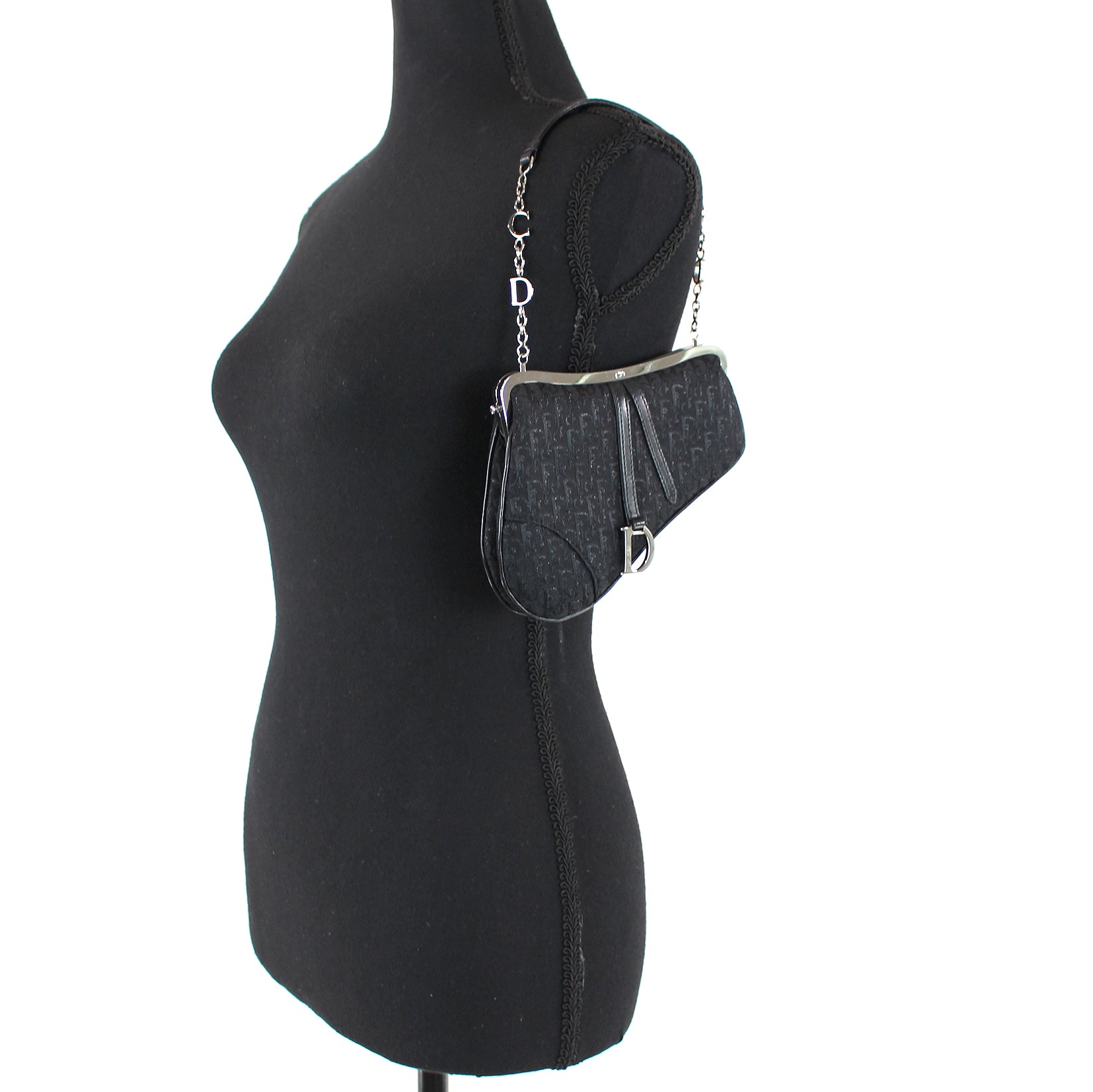 Christian Dior Black Monogram Mini Saddlebag Chainlink Charm Handbag