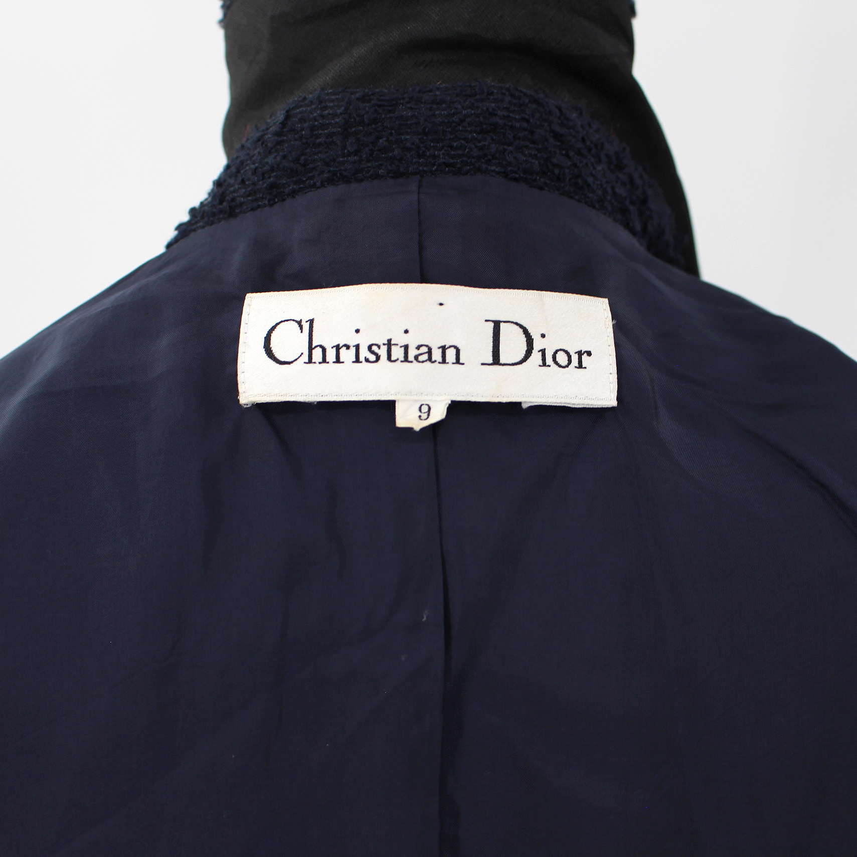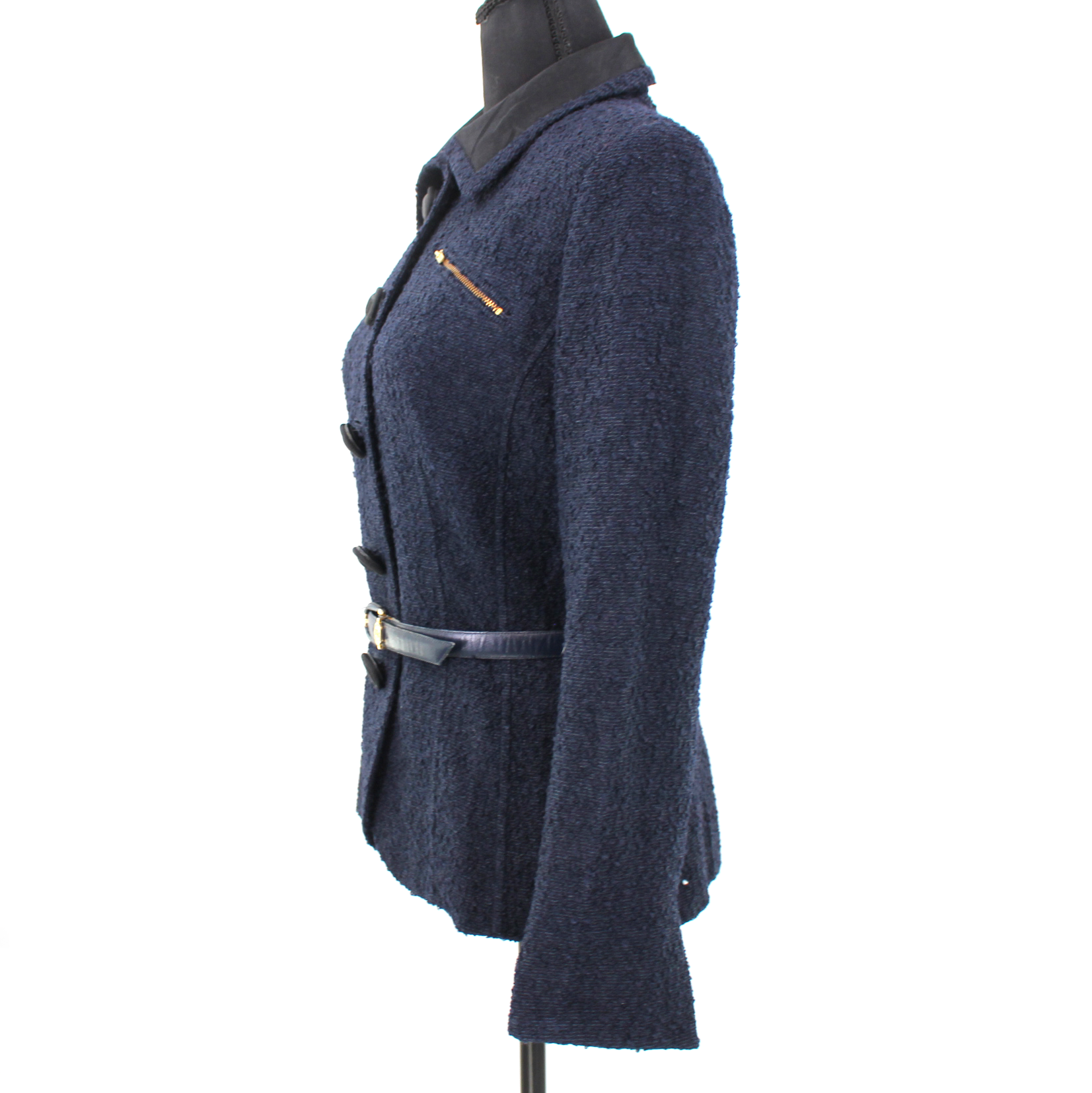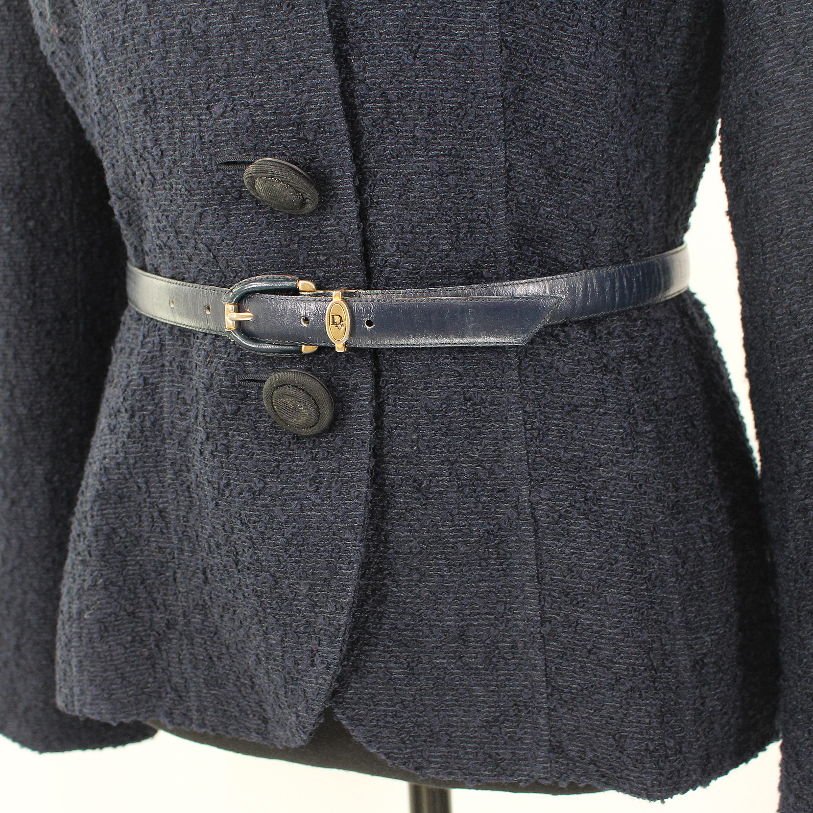 Christian Dior Fitted Navy Black Mohair Blend Boucle Blazer Dior Belt