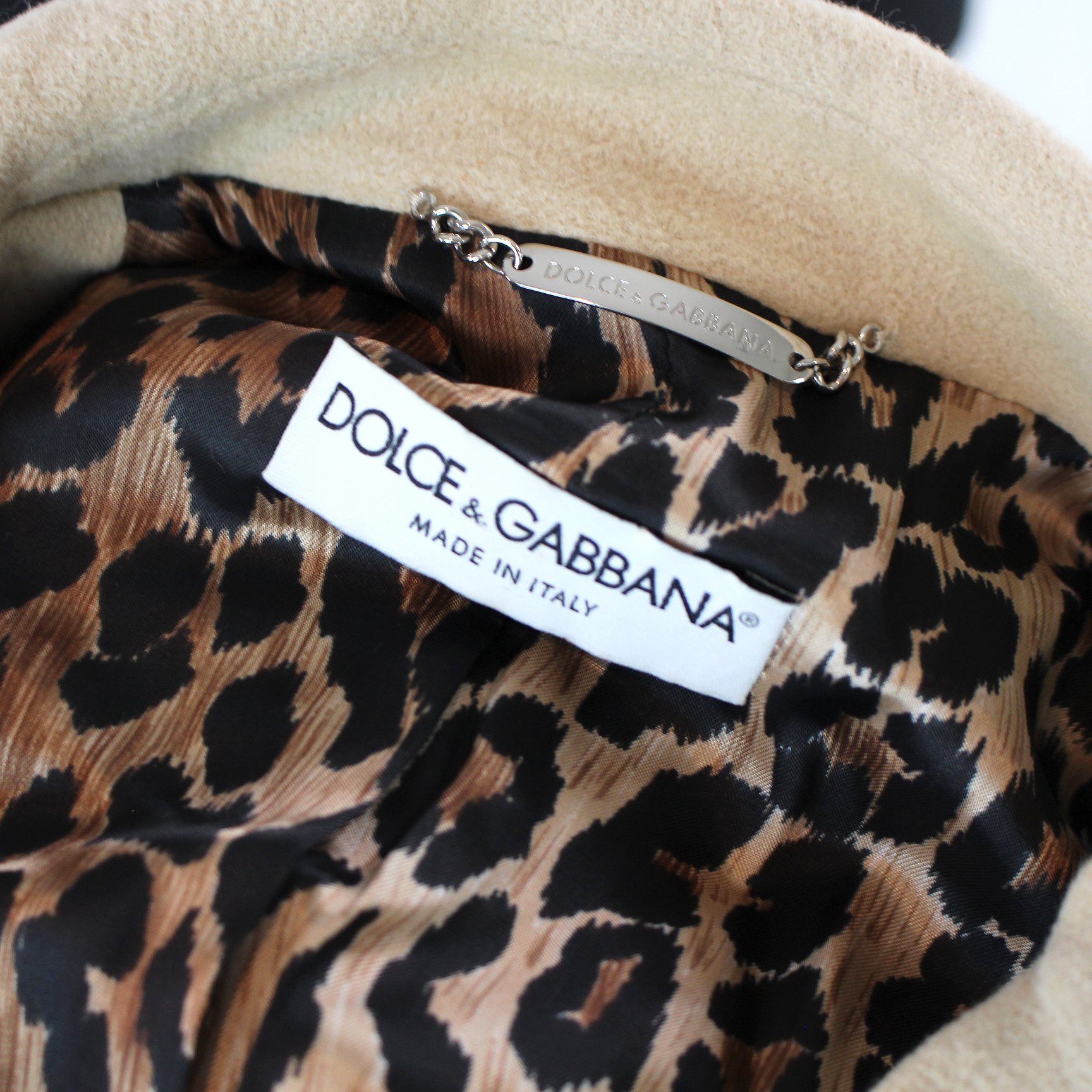 Dolce & Gabbana Camel Tan Angora Leopard Lined Button Front Pea Coat