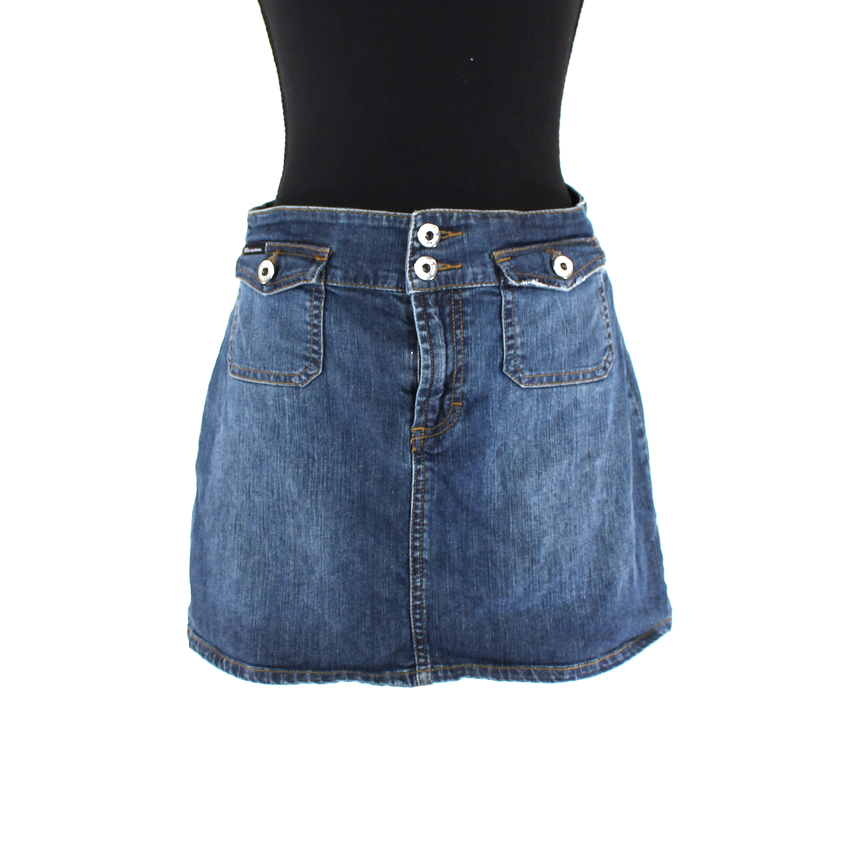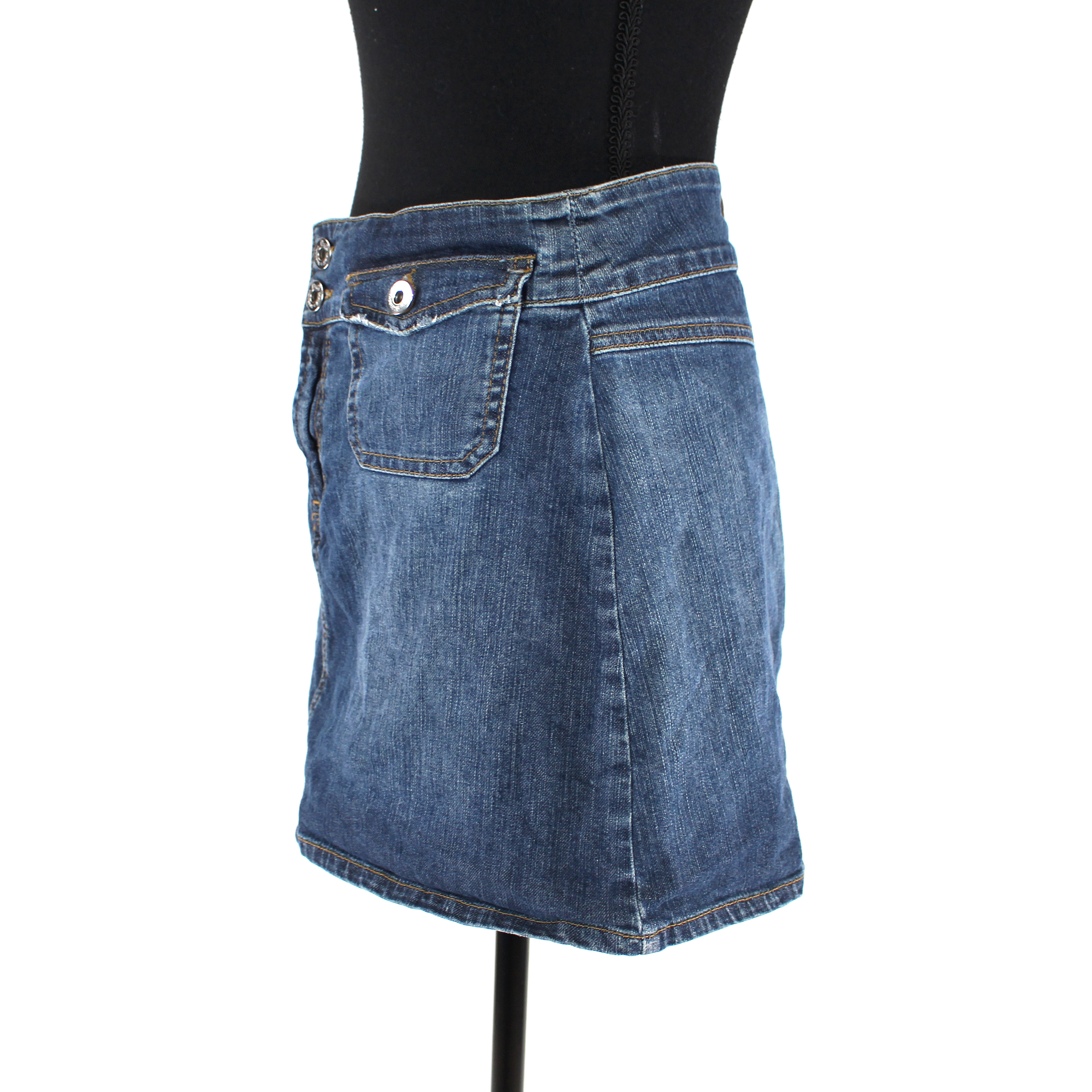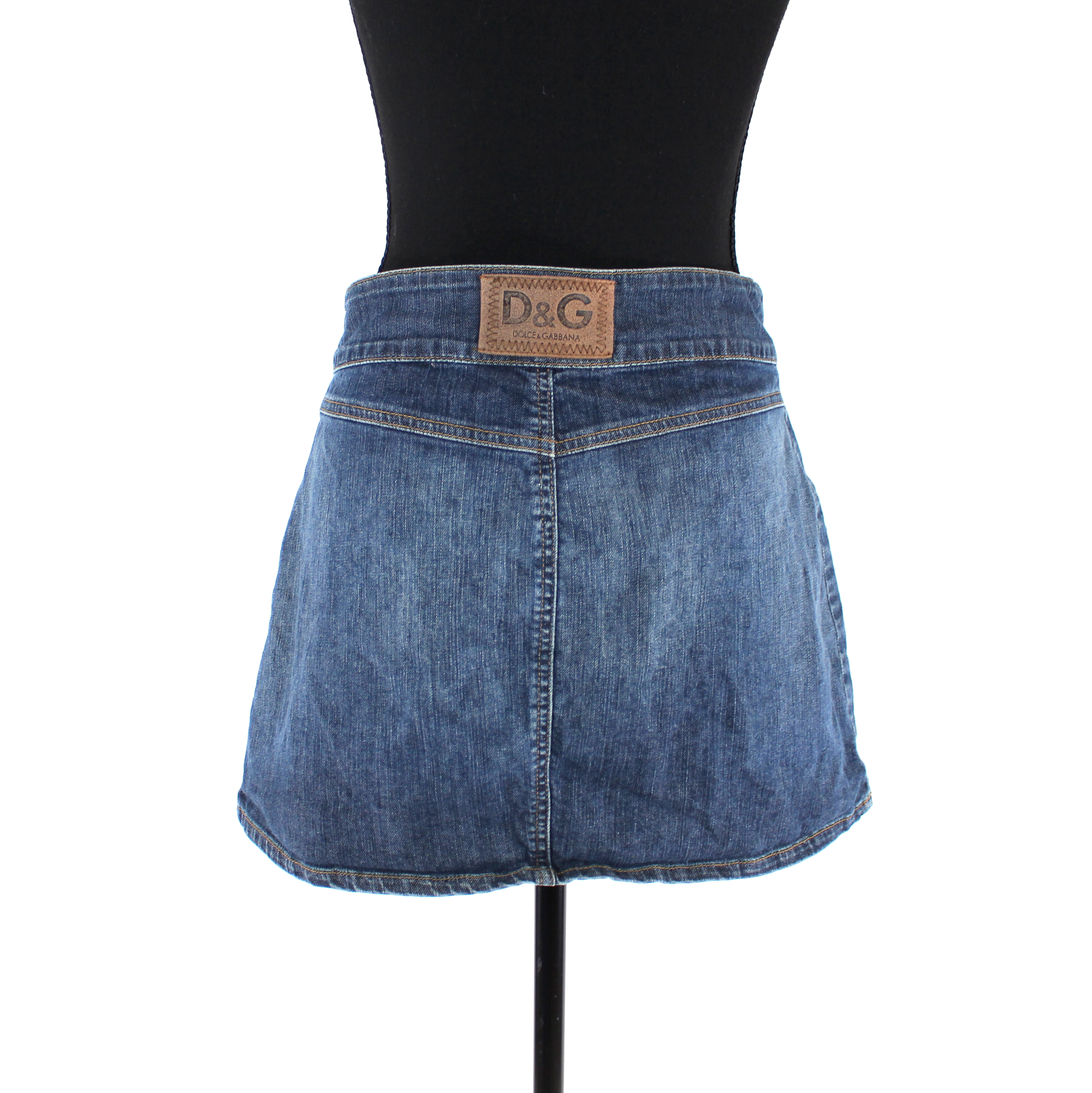 D&G Dolce & Gabbana Blue Denim A-Line Flap Button Pocket Mini Skirt