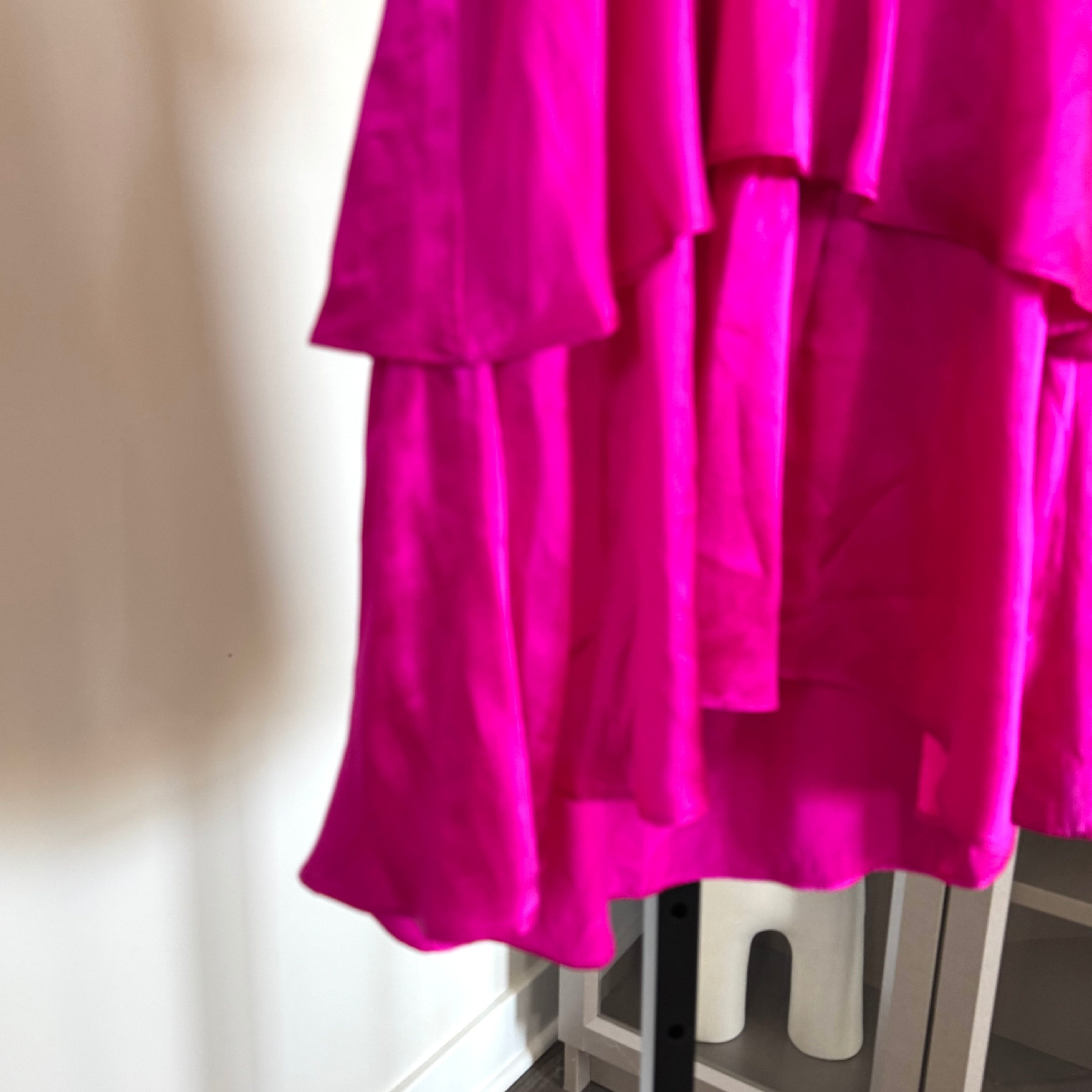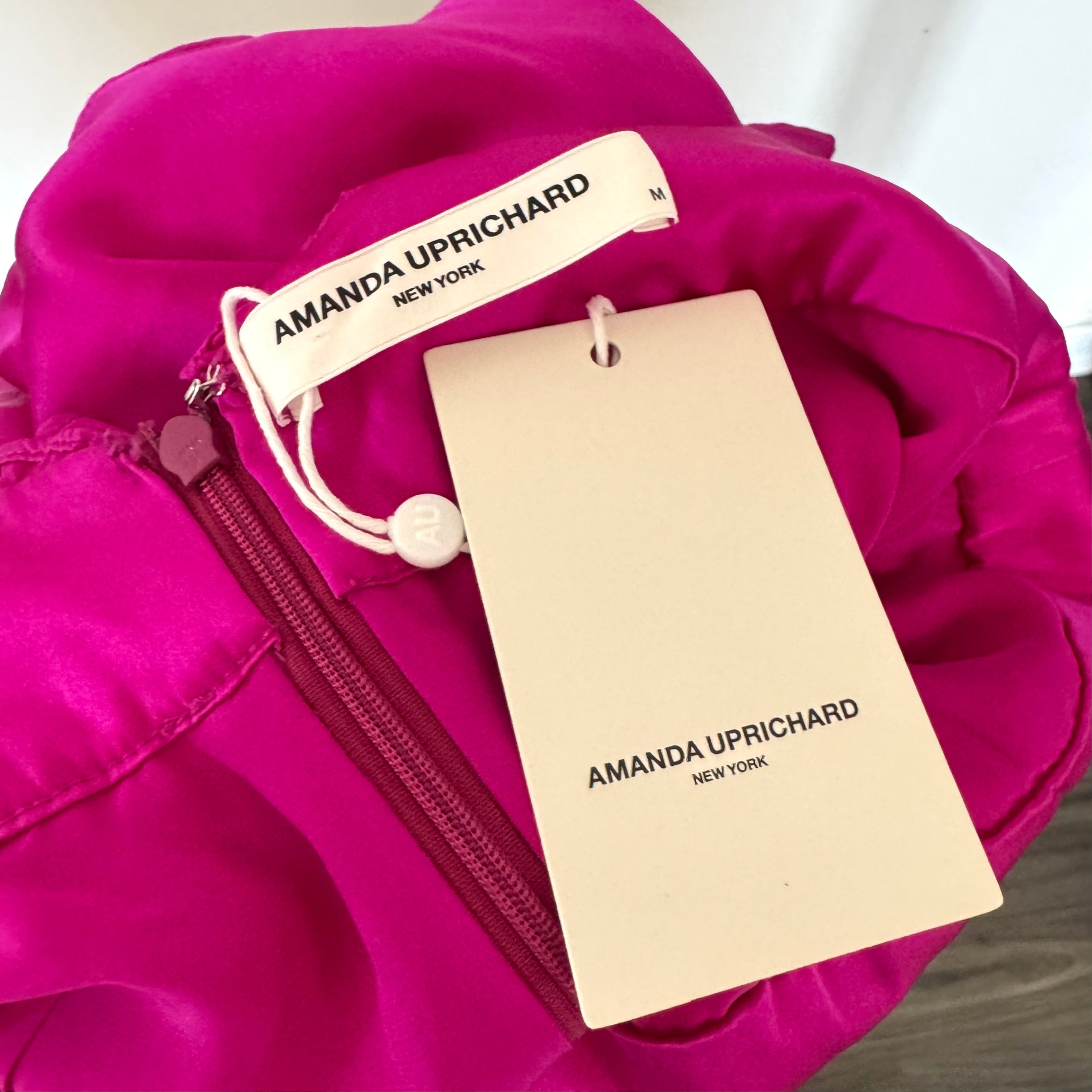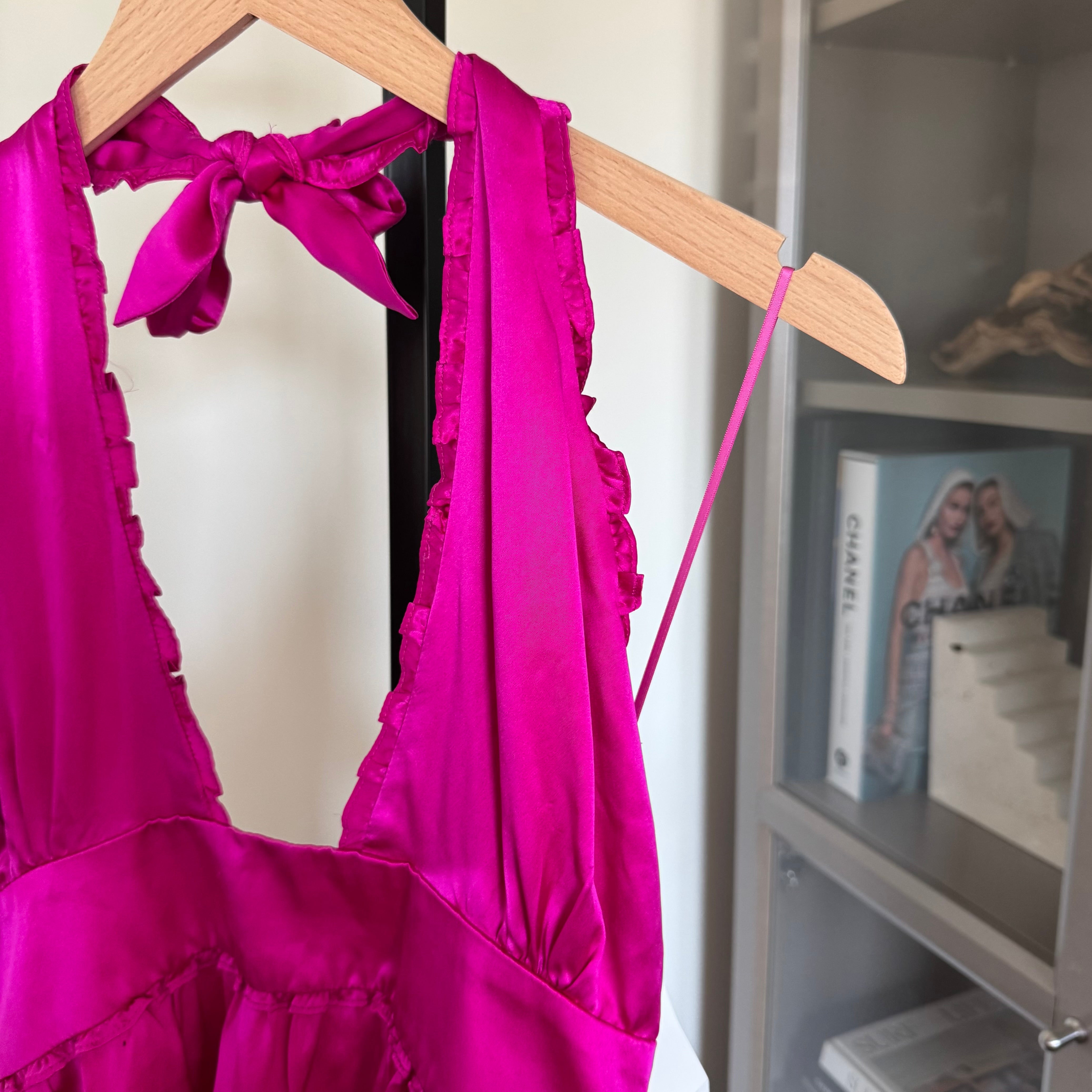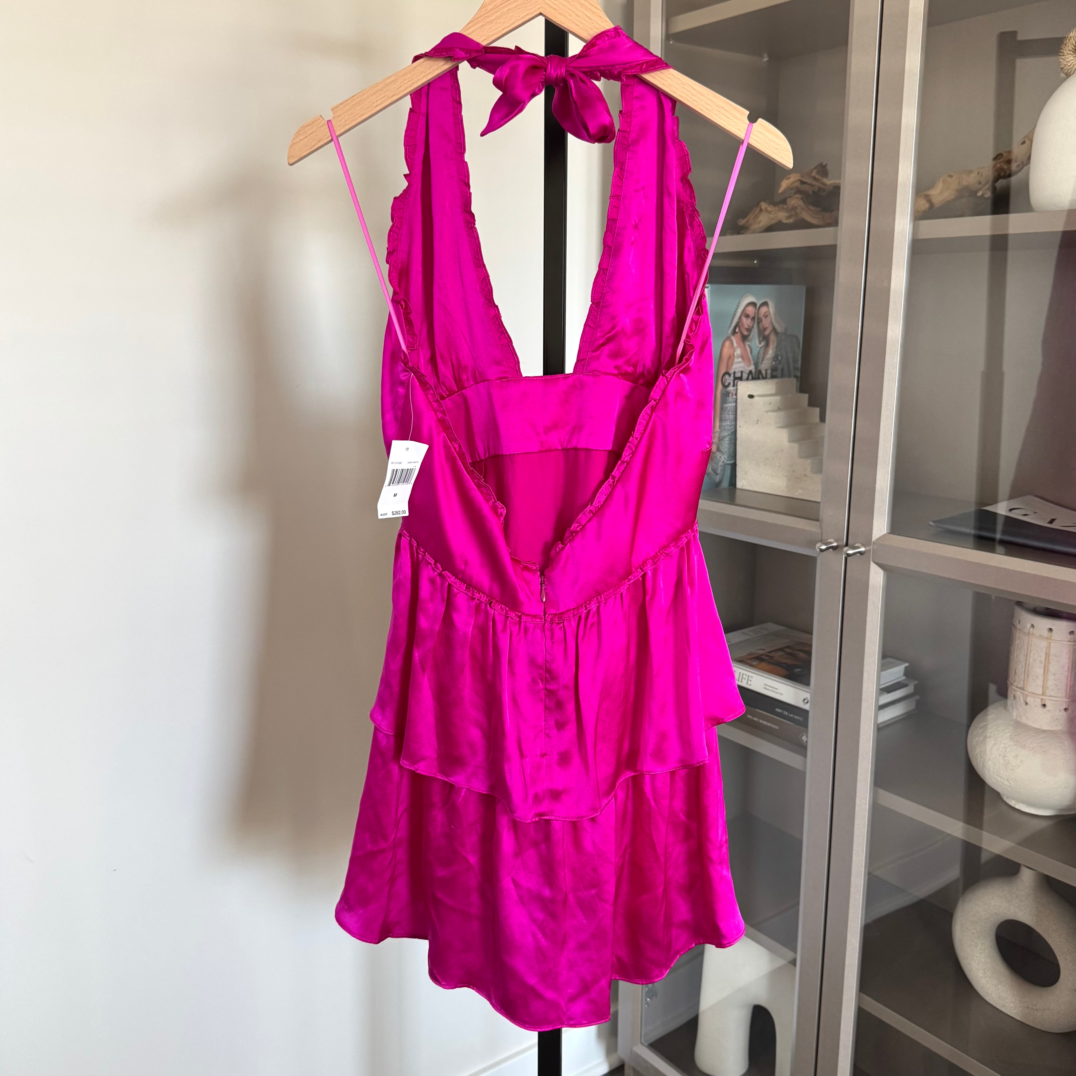 Amanda Uprichard Estella Dark Hot Pink Ruffle Trim Halter Mini Dress
