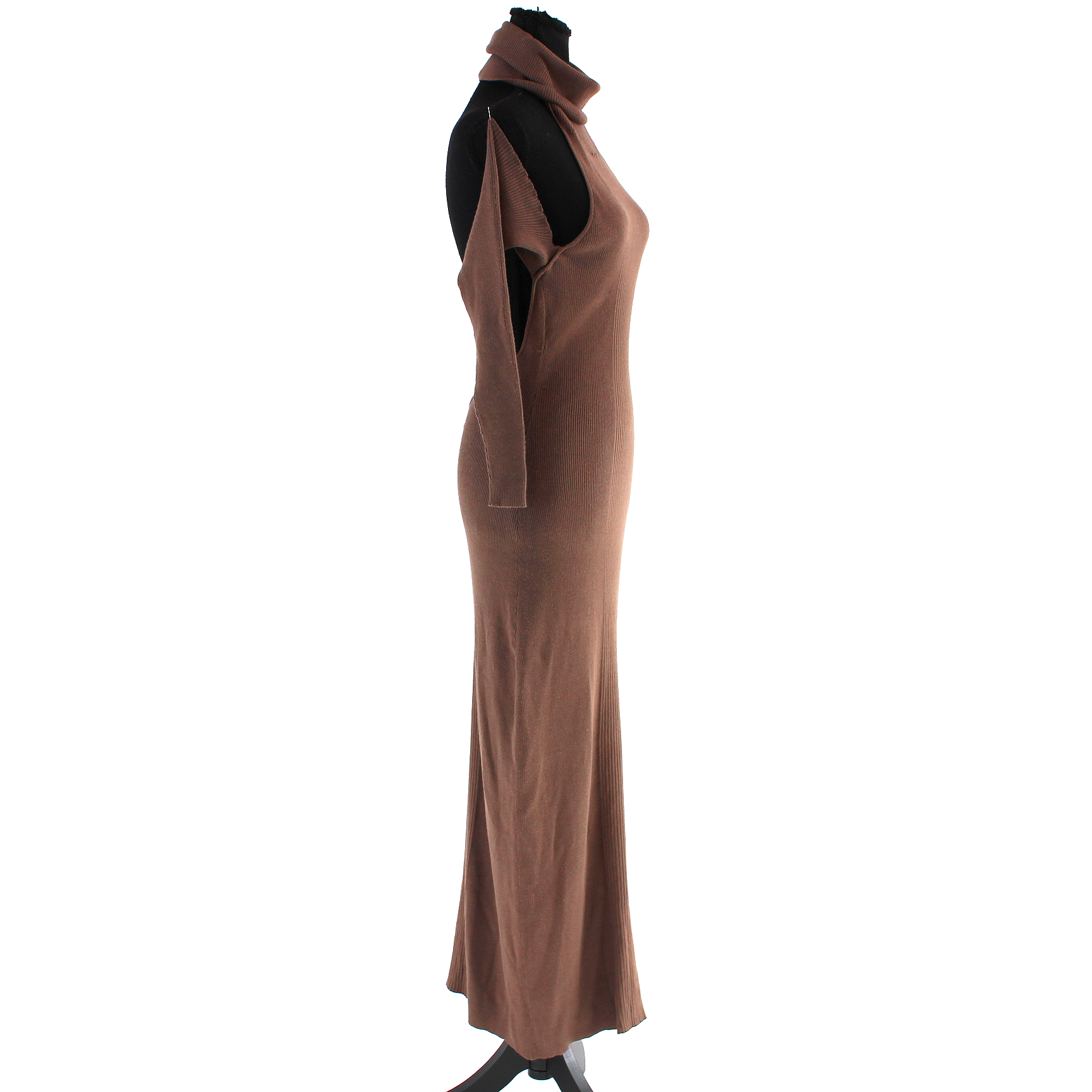 Aya Muse Topaz Cold Shoulder Open Back Brown Rib Knit Midi Dress