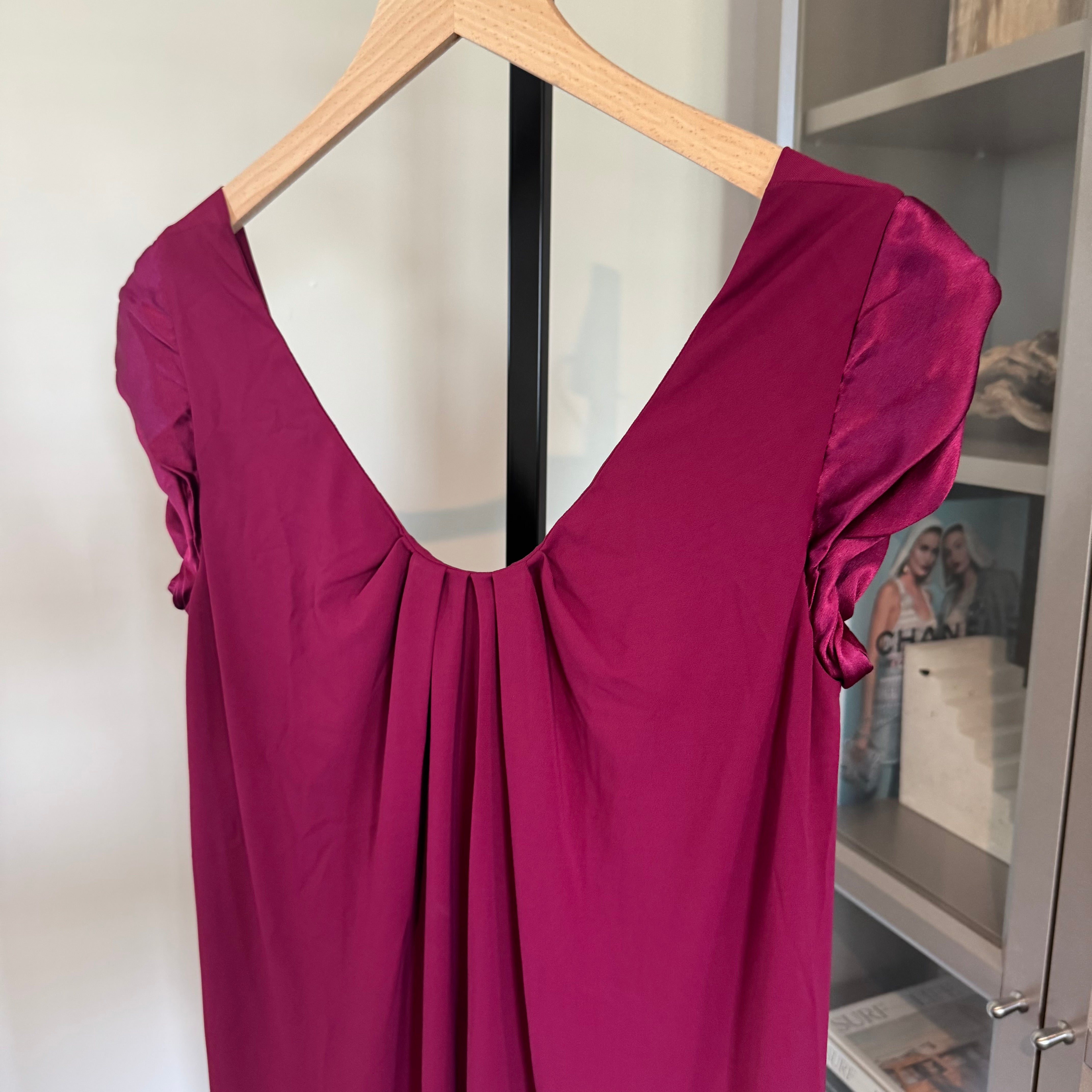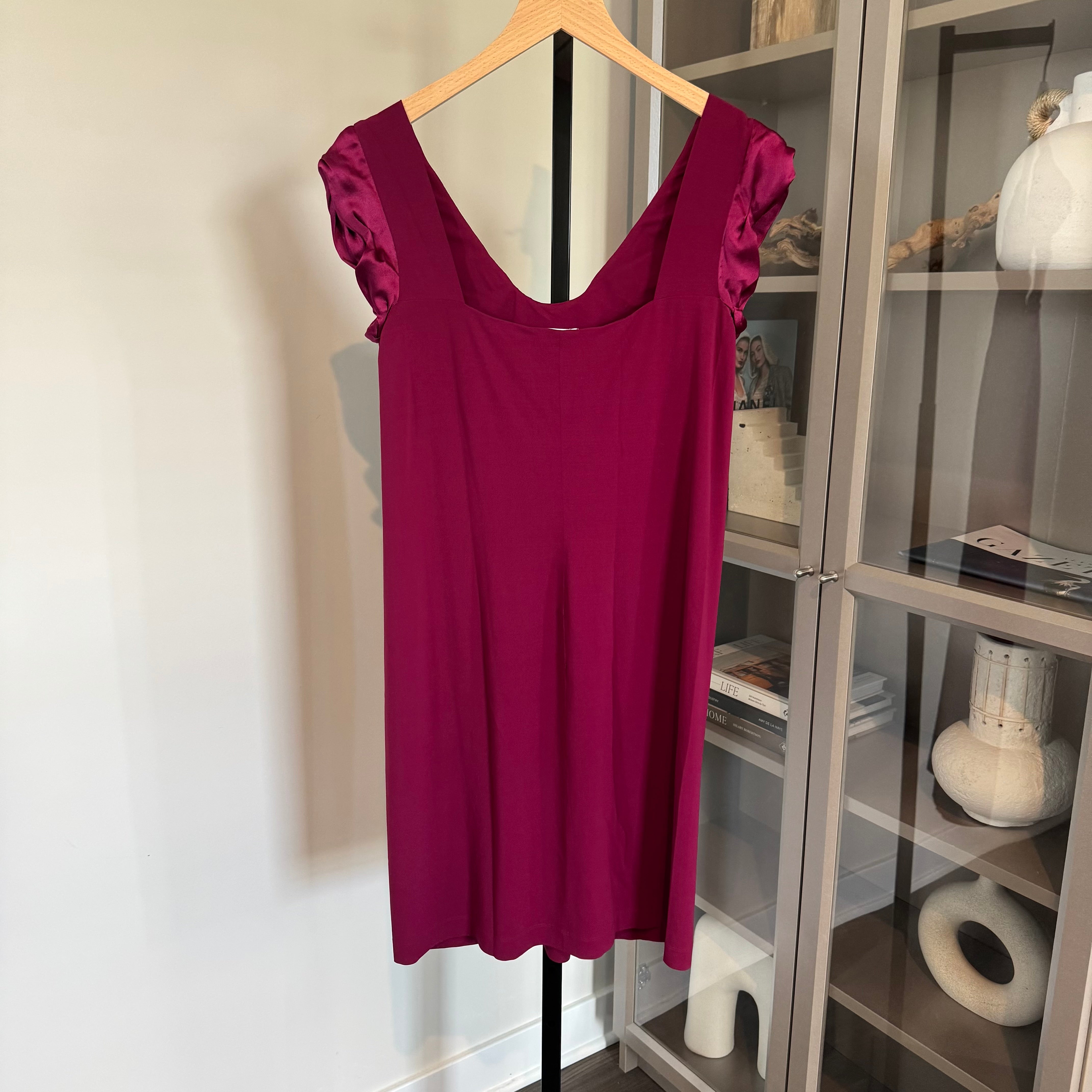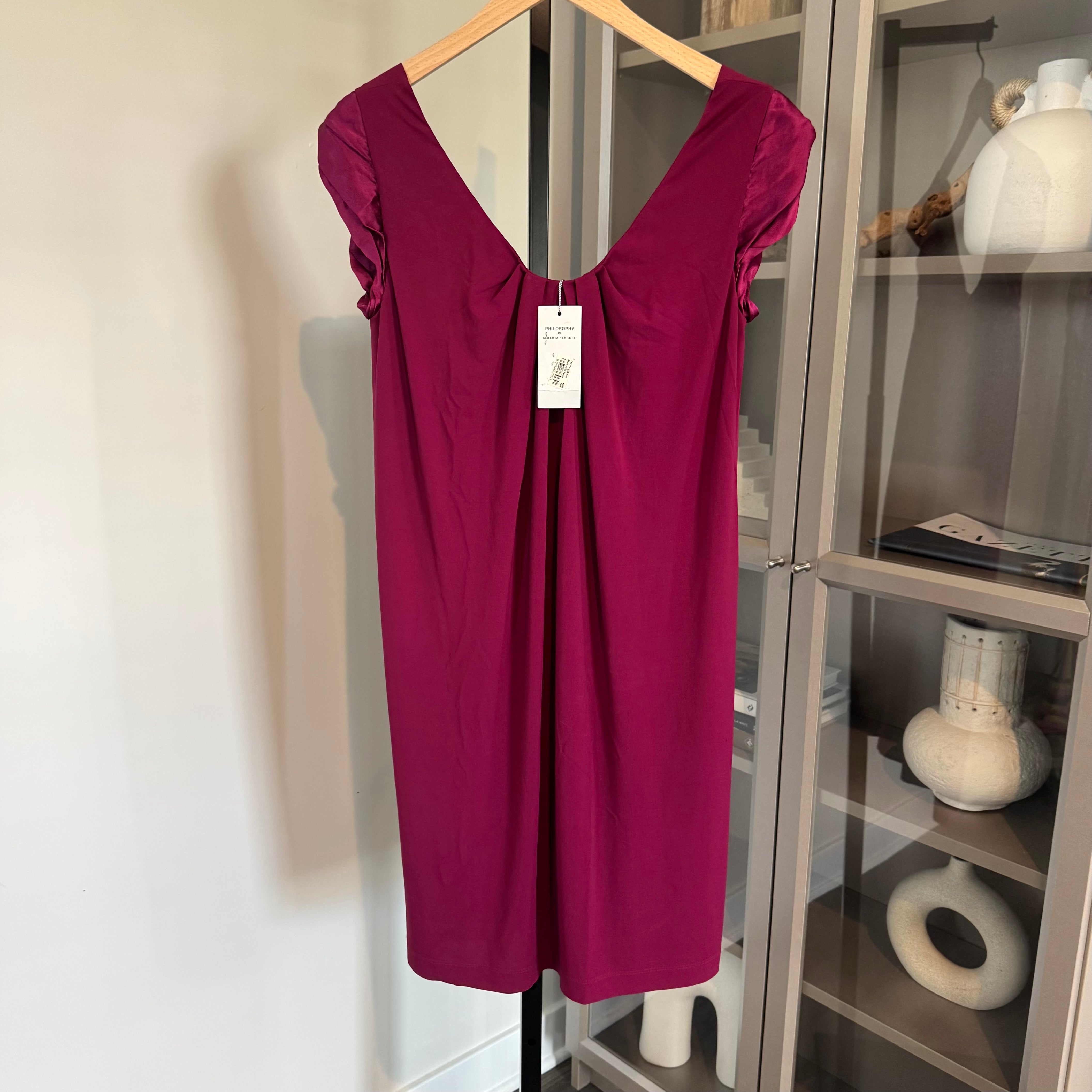 Philosophy Di Alberta Ferretti Satin Scoop Neckline Silk Cap Sleeve Burgundy Dress
