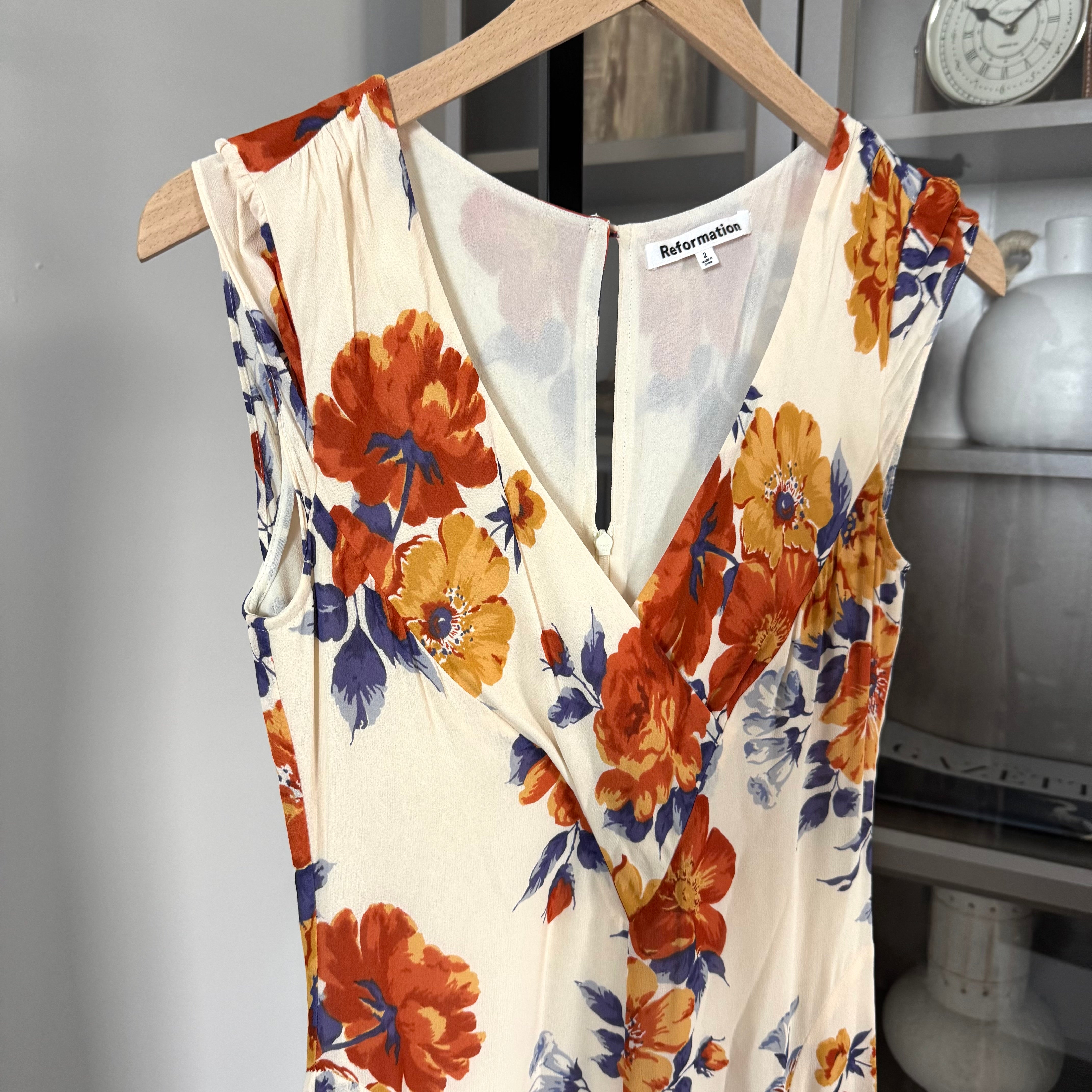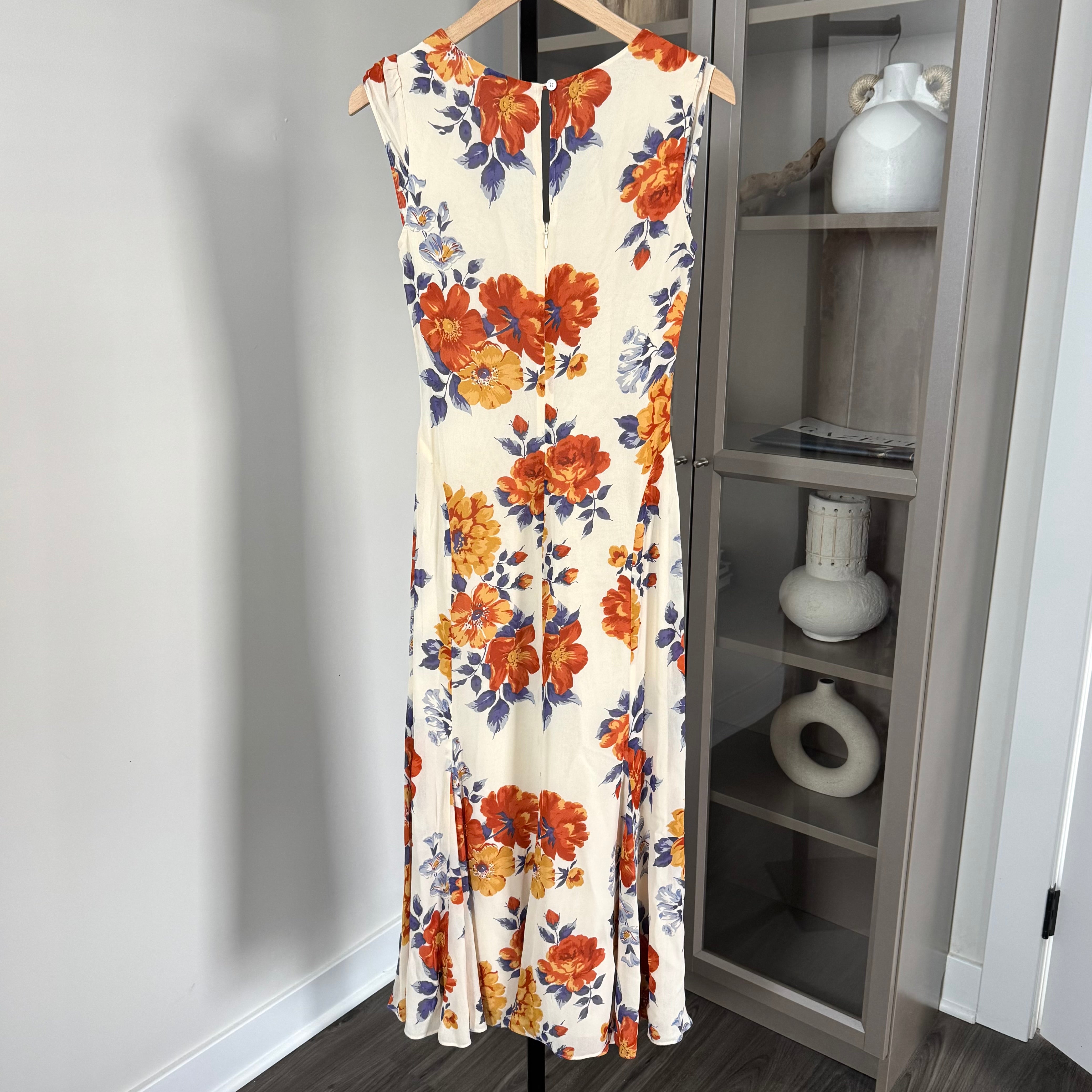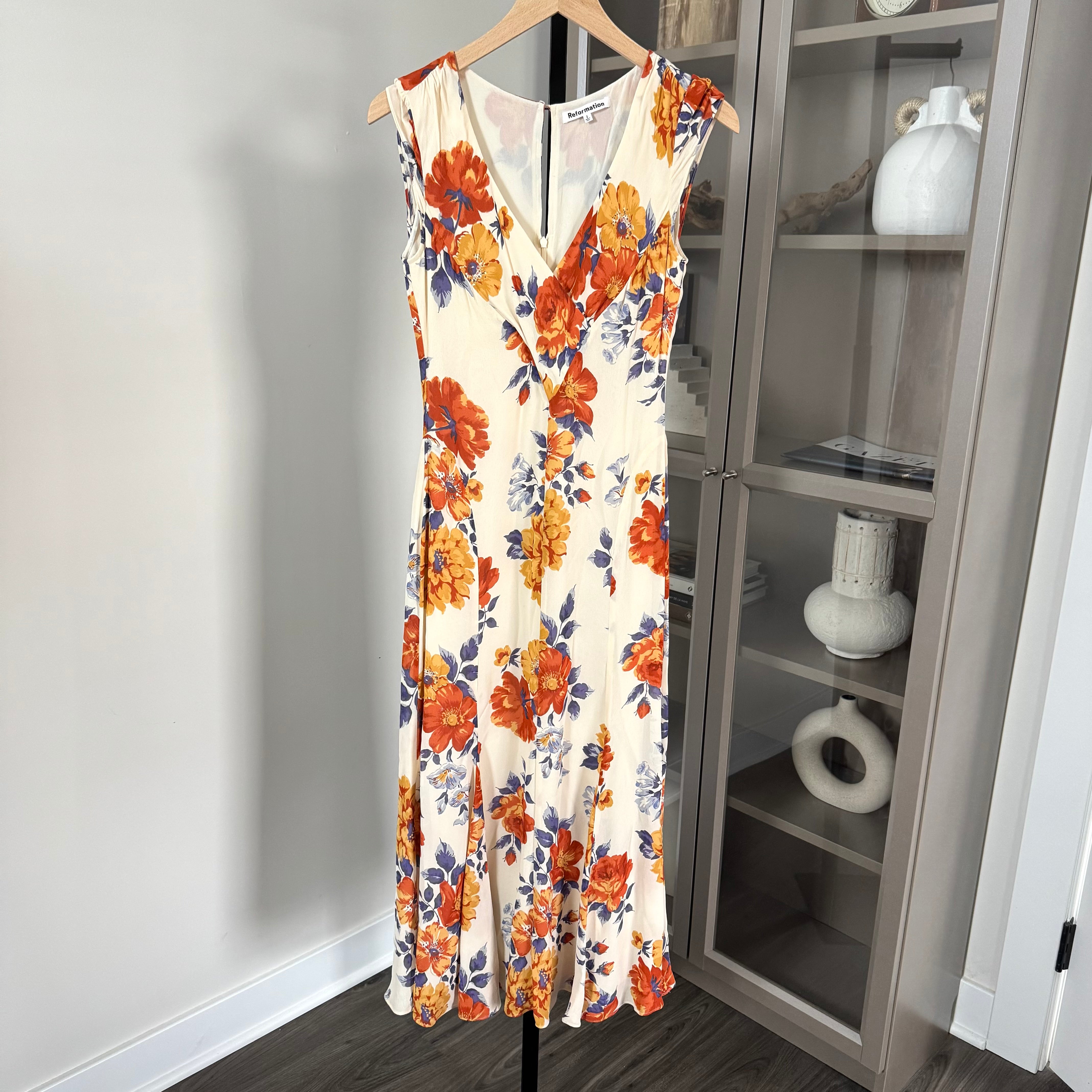 Reformation Baden V-Neck Cap Sleeve Hari Cream Floral Midi Dress