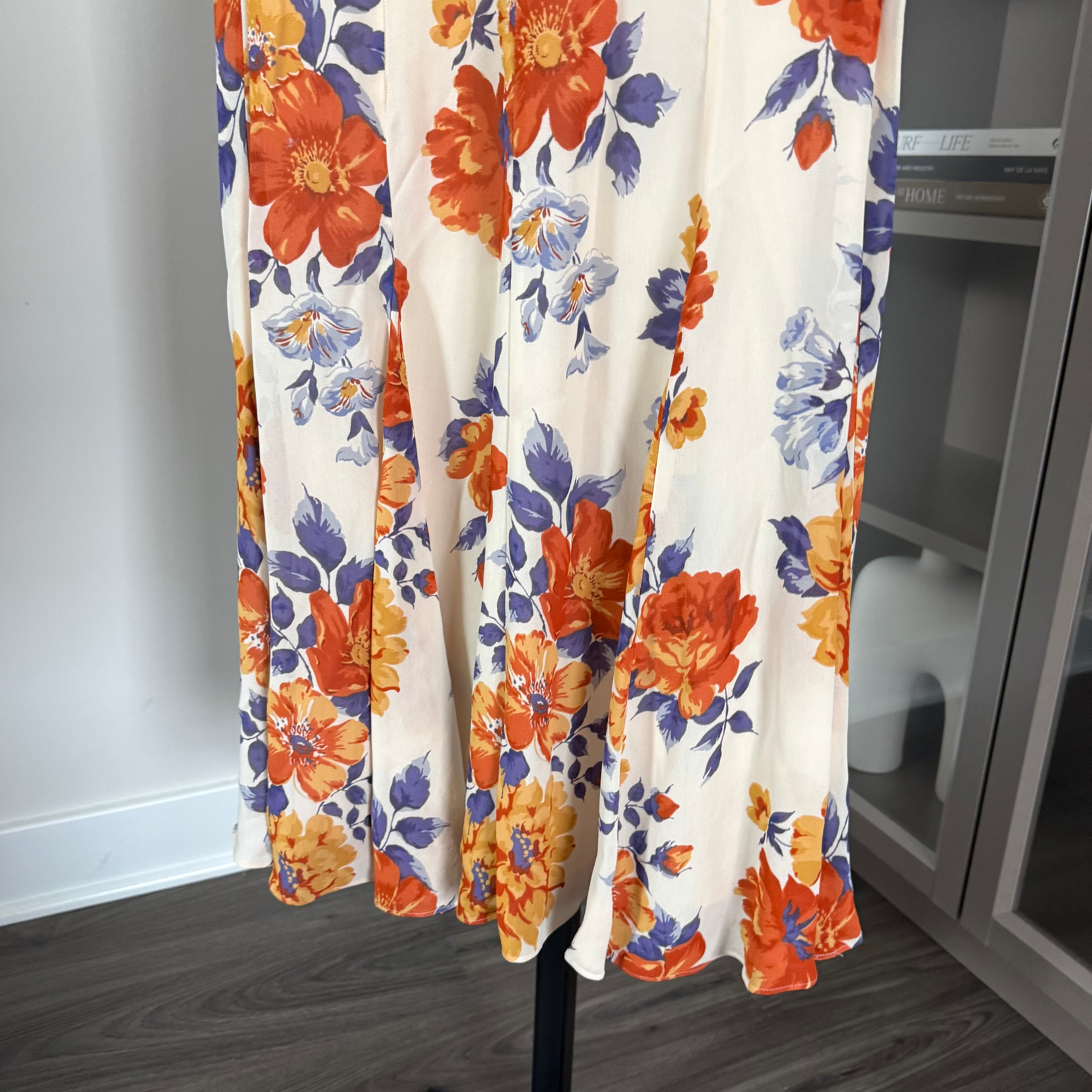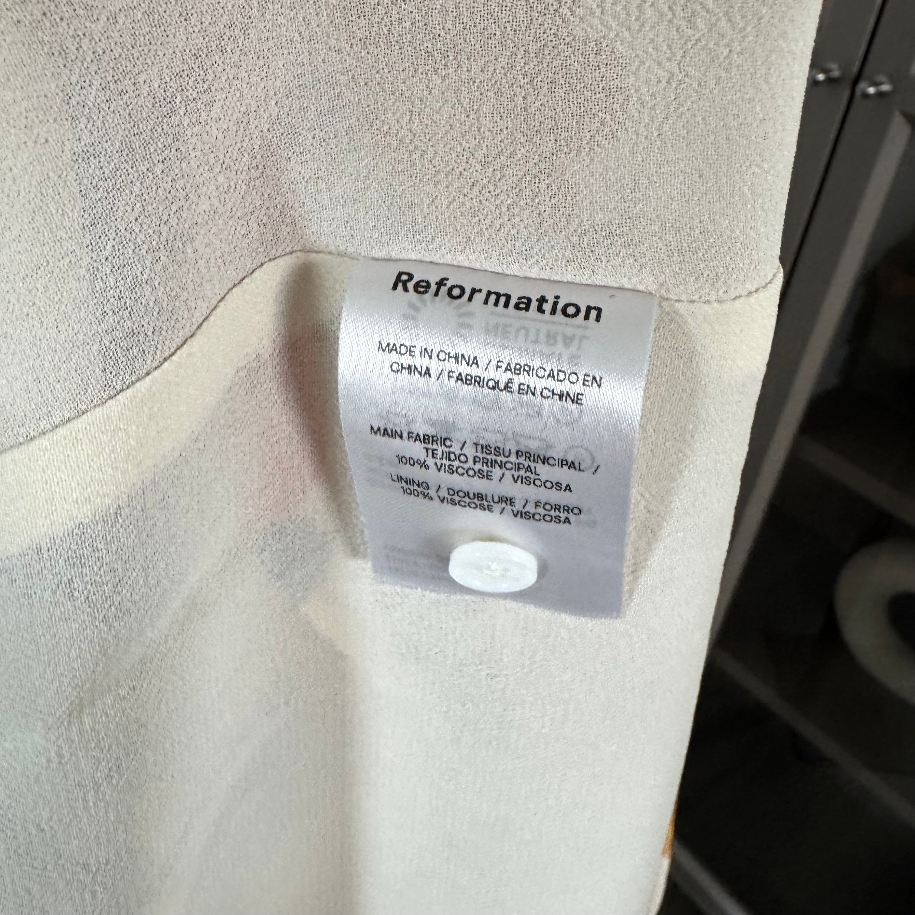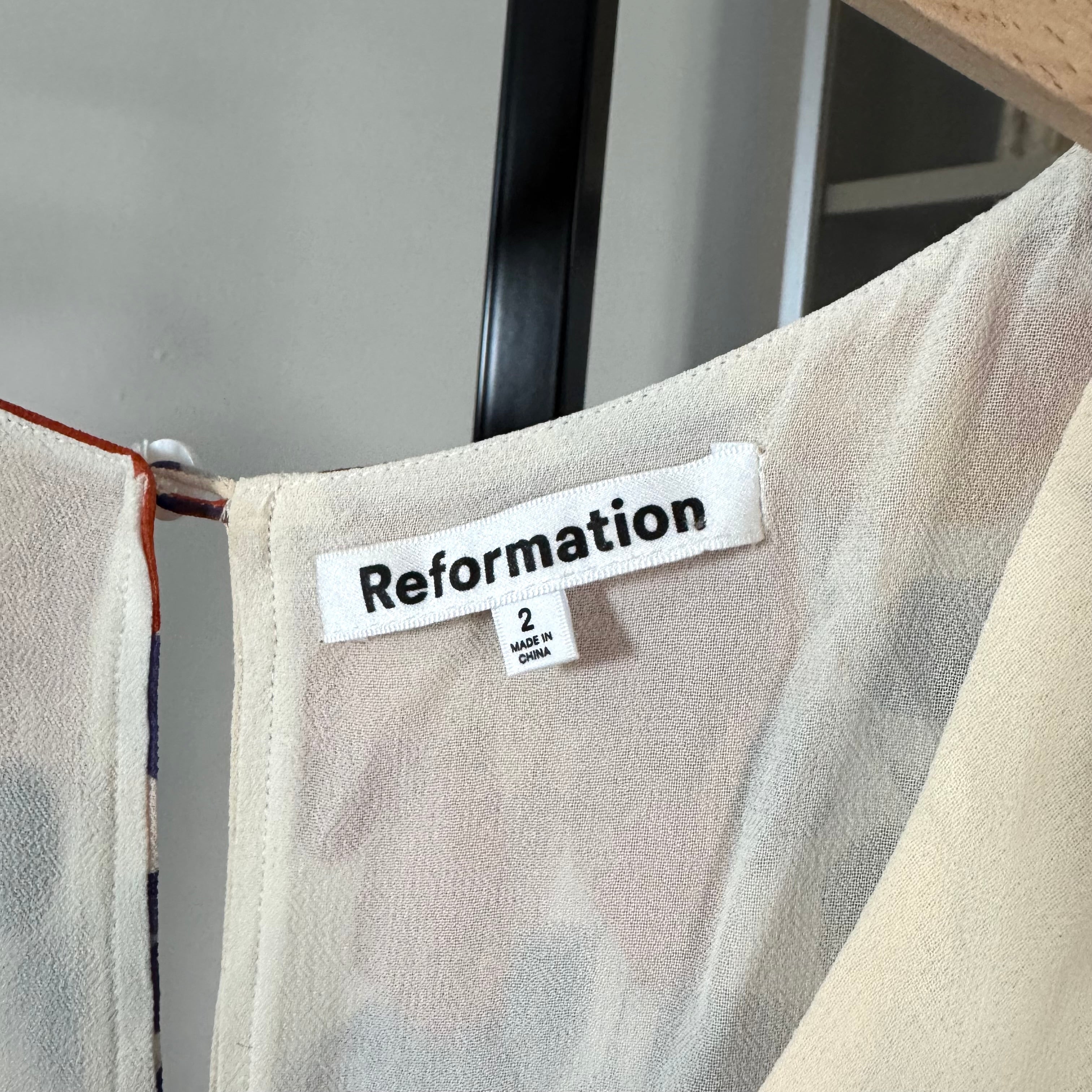 Reformation Baden V-Neck Cap Sleeve Hari Cream Floral Midi Dress