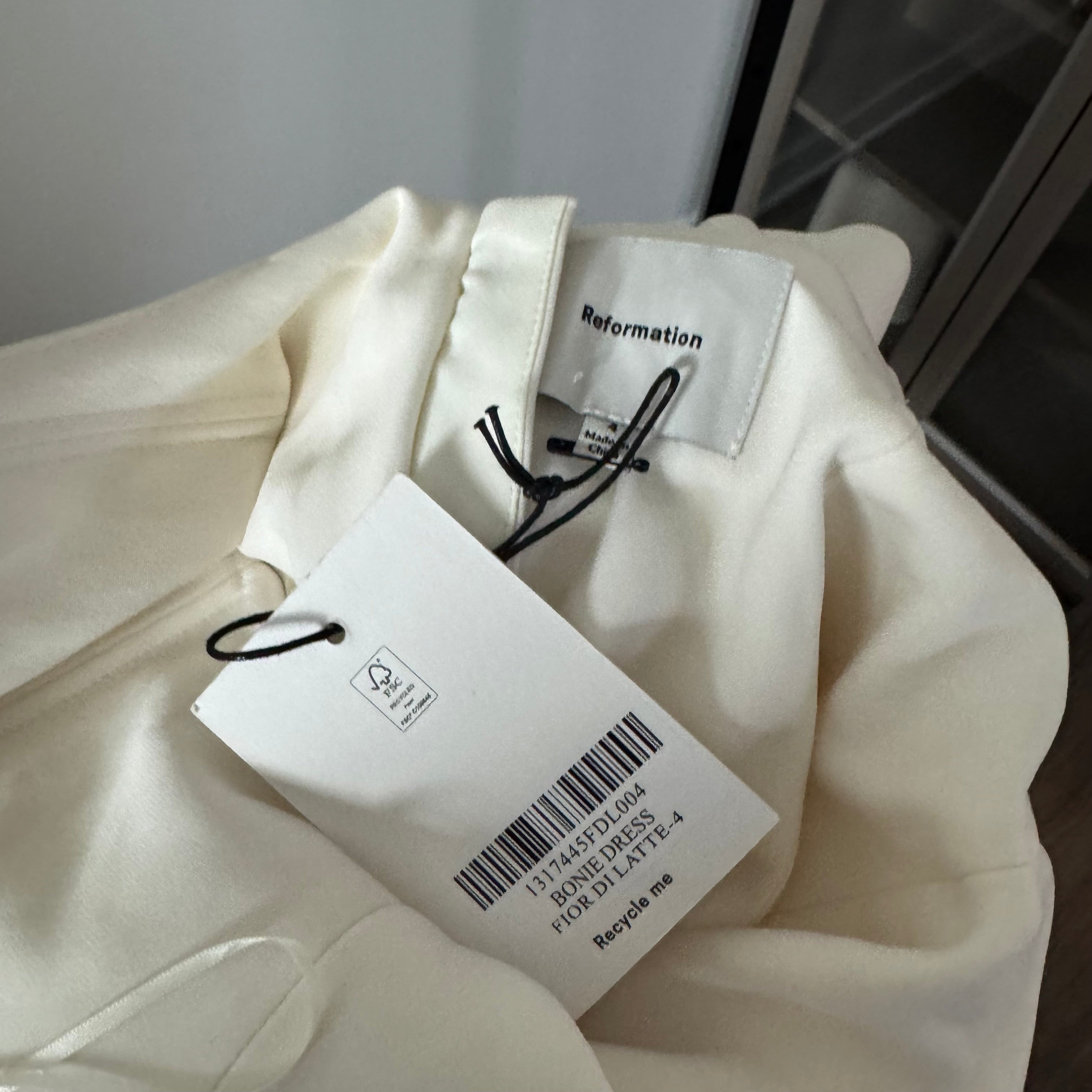 Reformation Bonie Crepe Fit And Flare Fior Di Latte Ivory Midi Dress