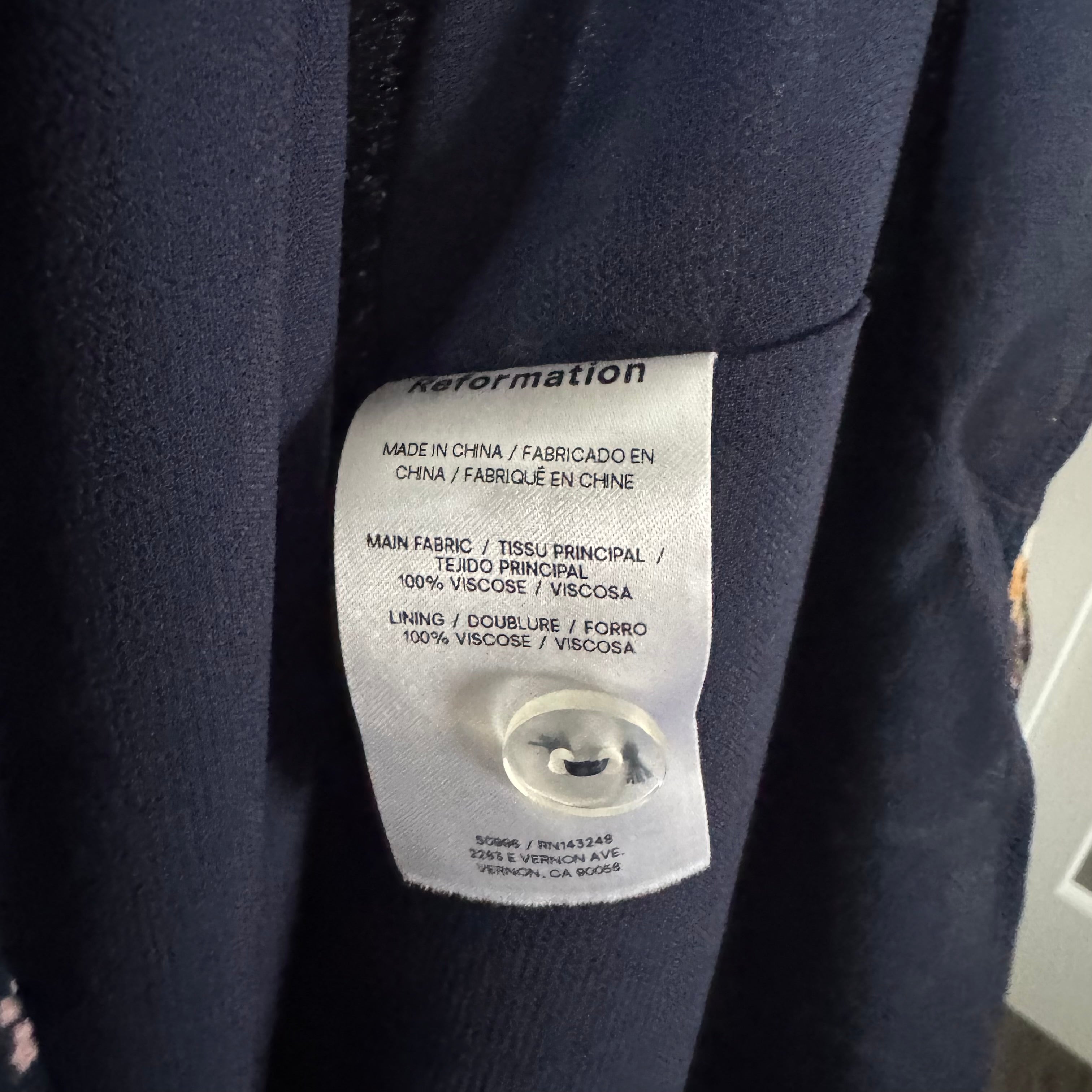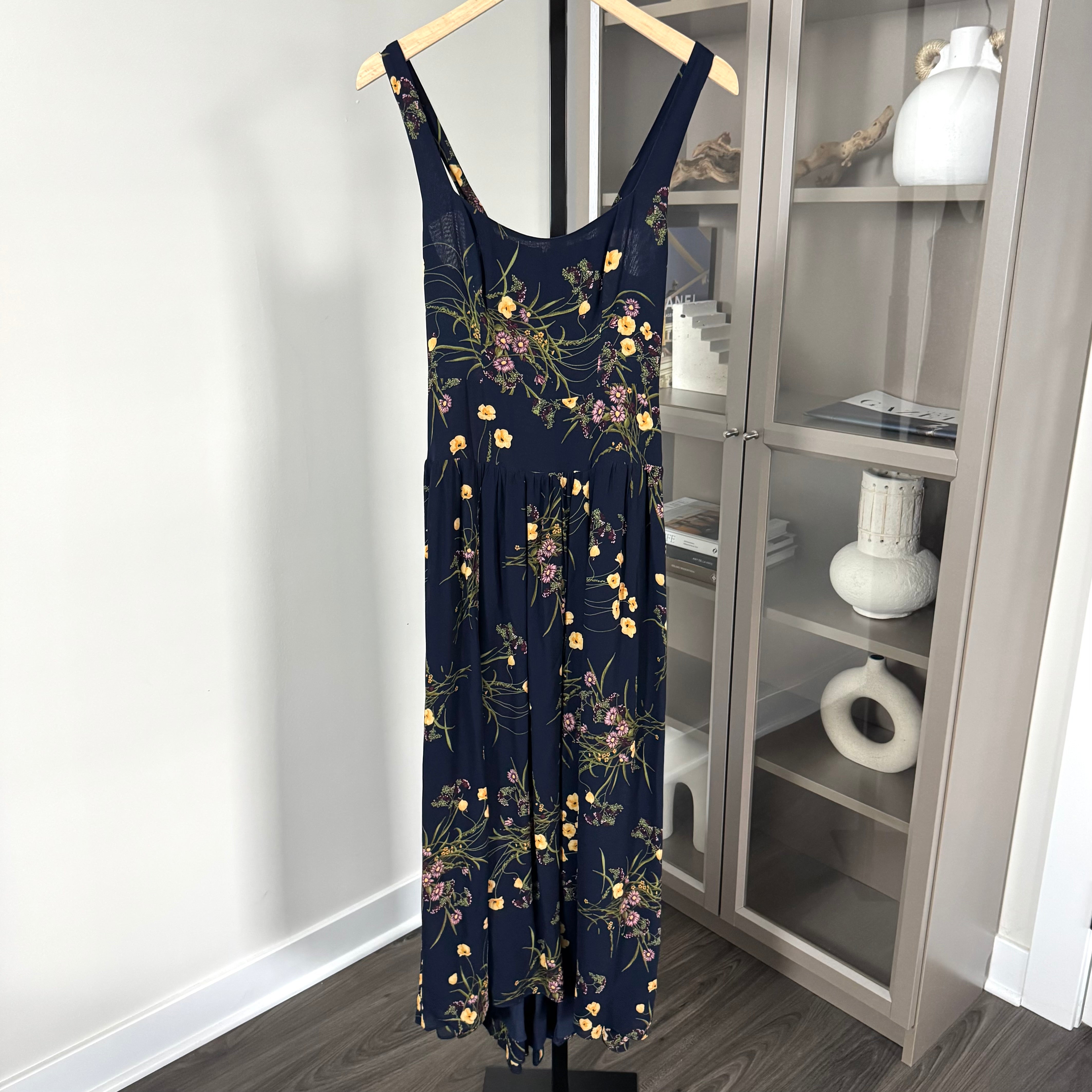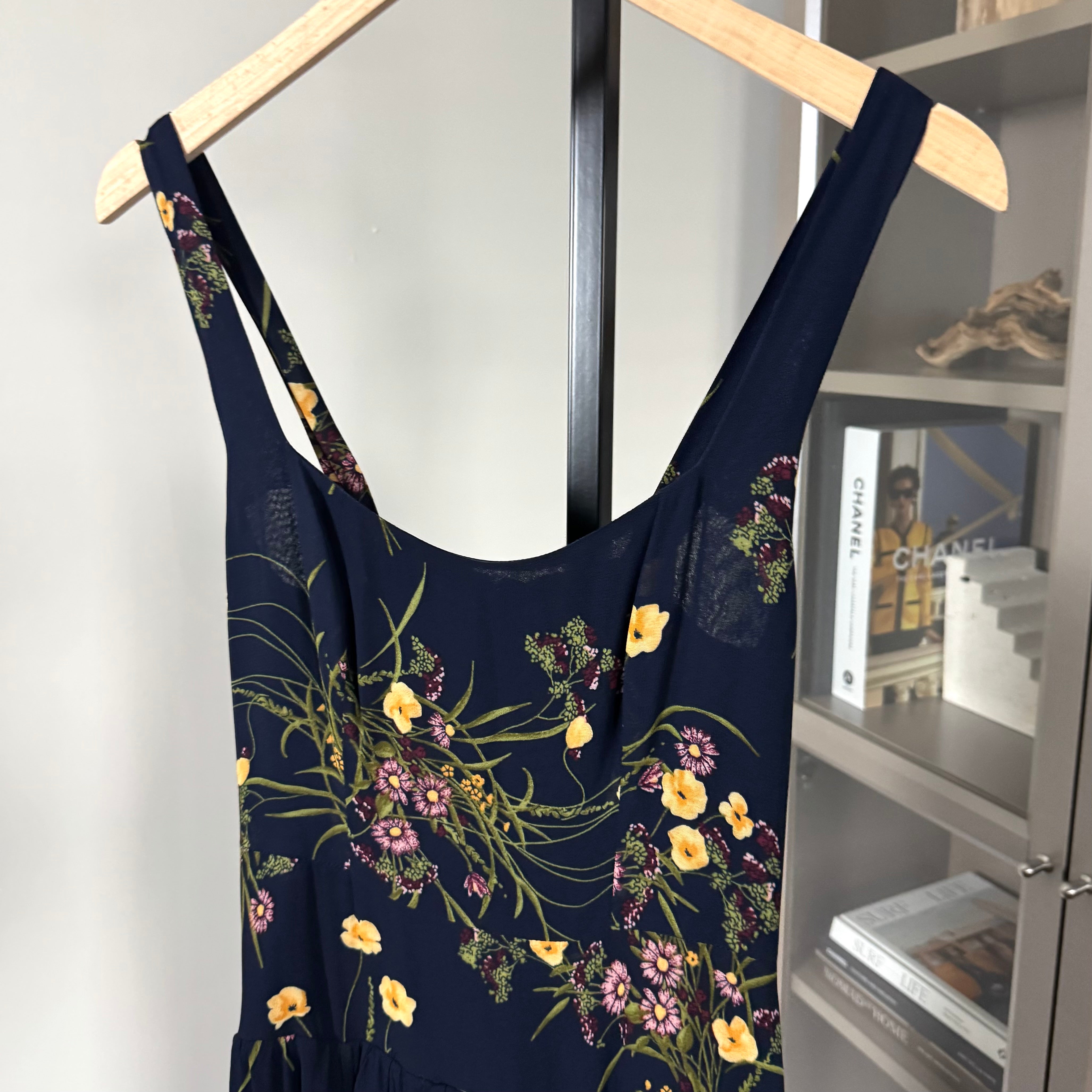 Reformation Kallie Navy Floral Fit & Flare High Low Hem Midi Dress