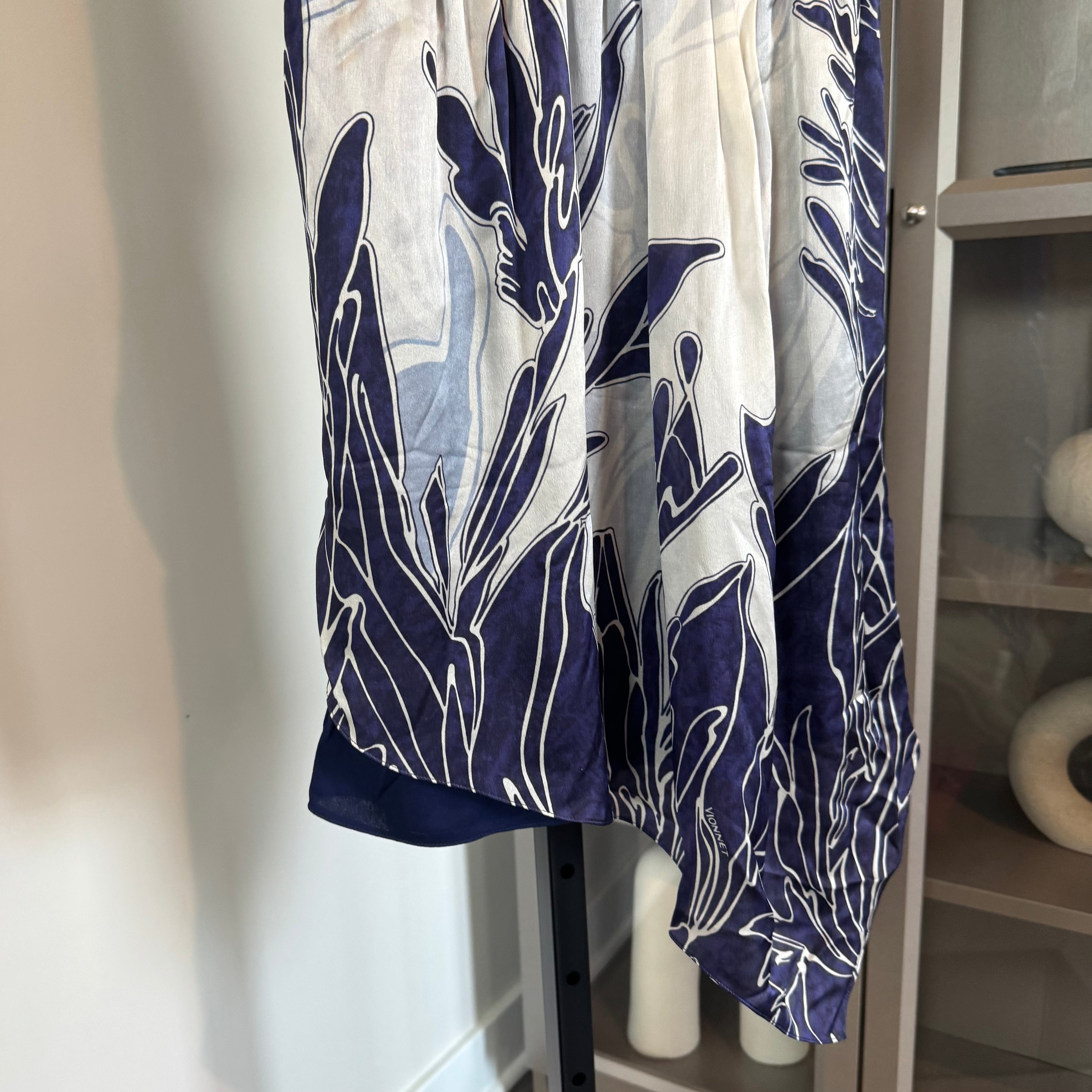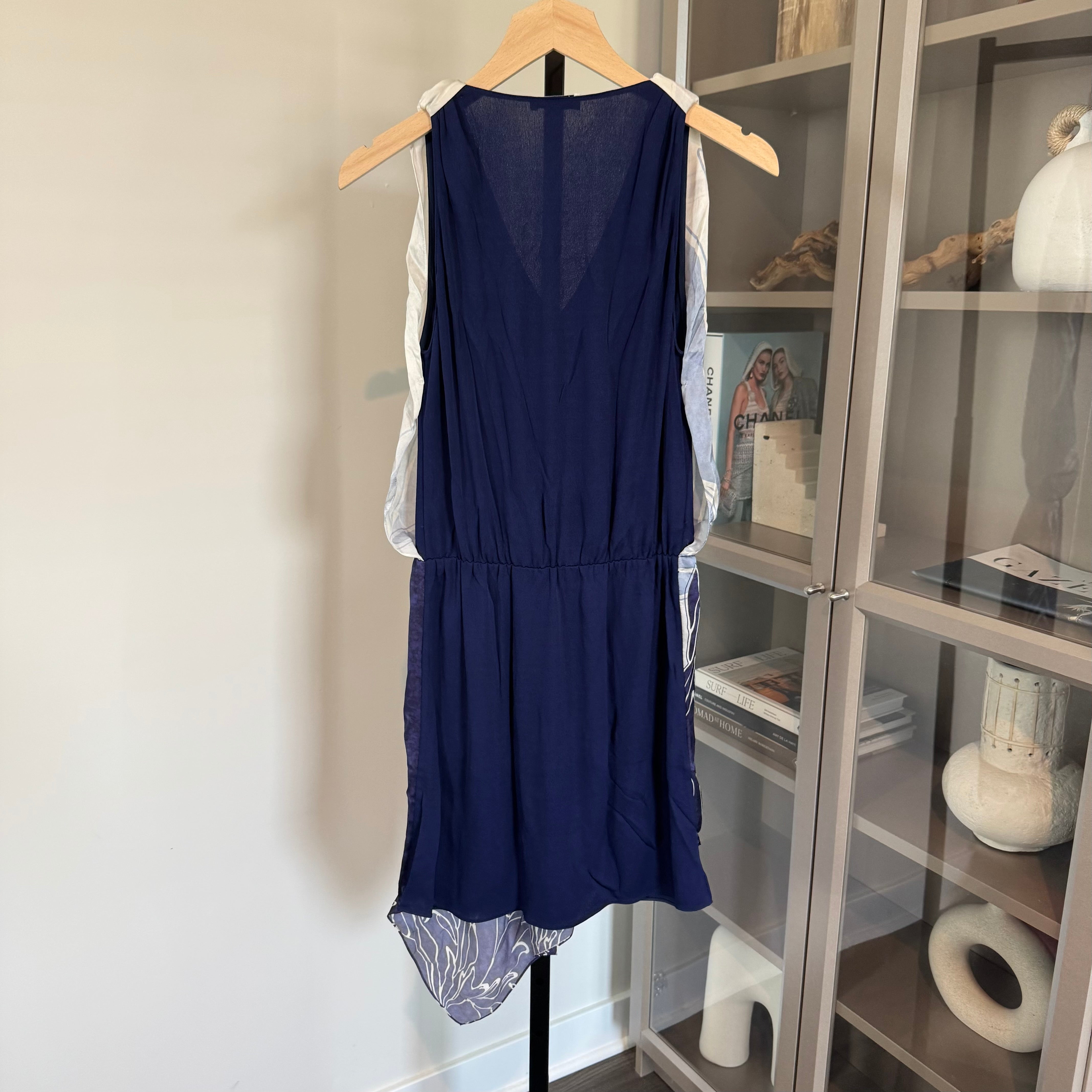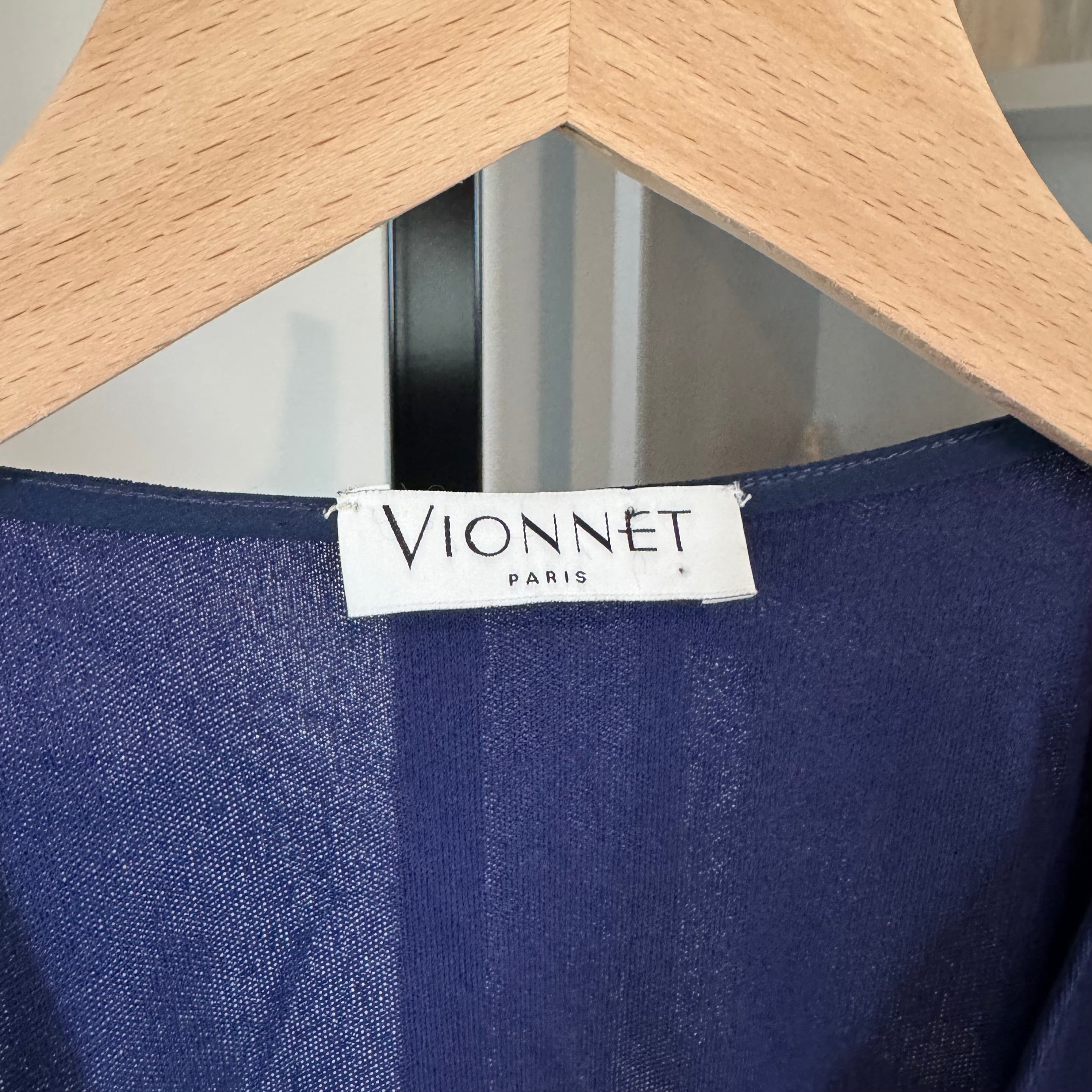 Vionnet Paris Navy V-Neckline Draping Silk Overlay Asymmetrical Dress