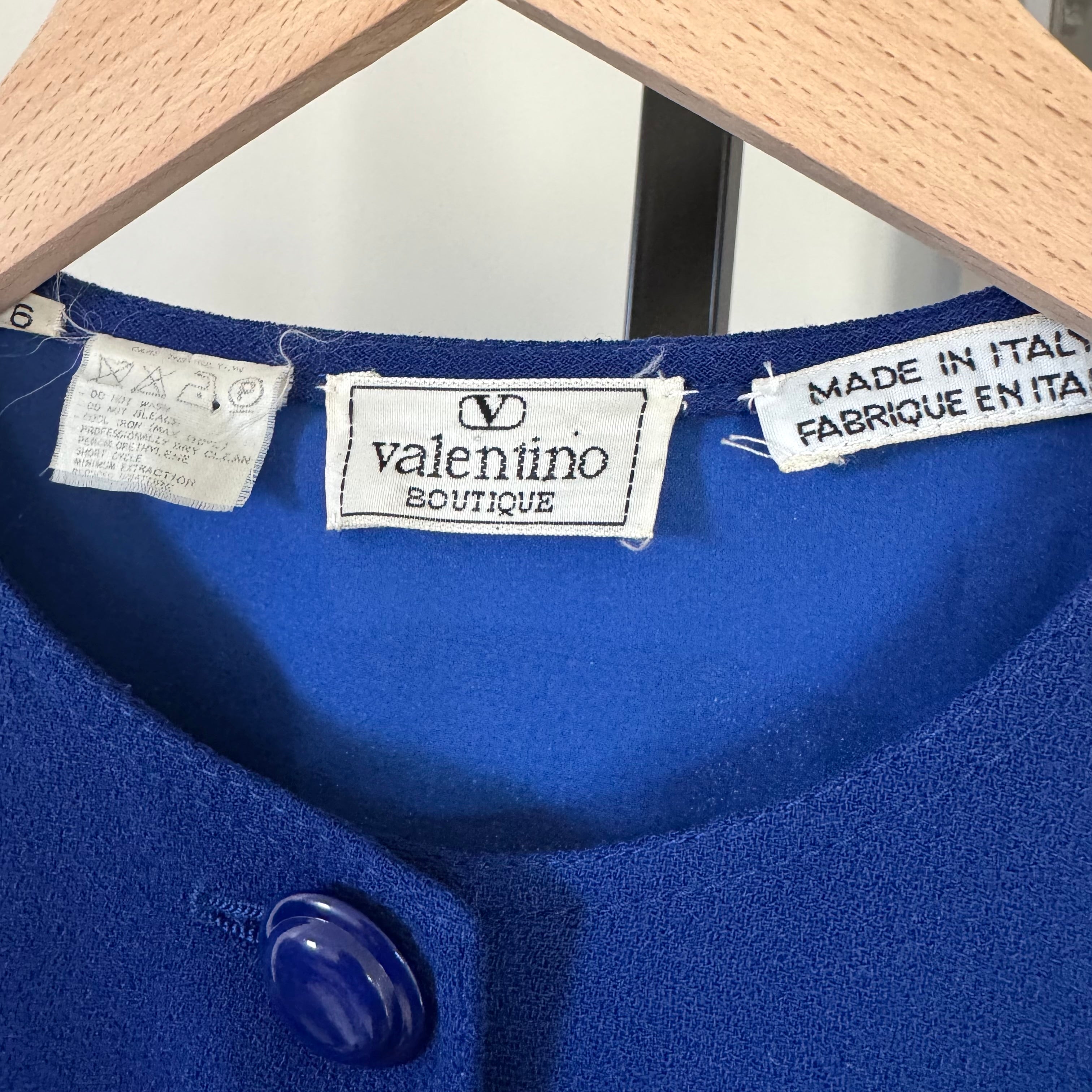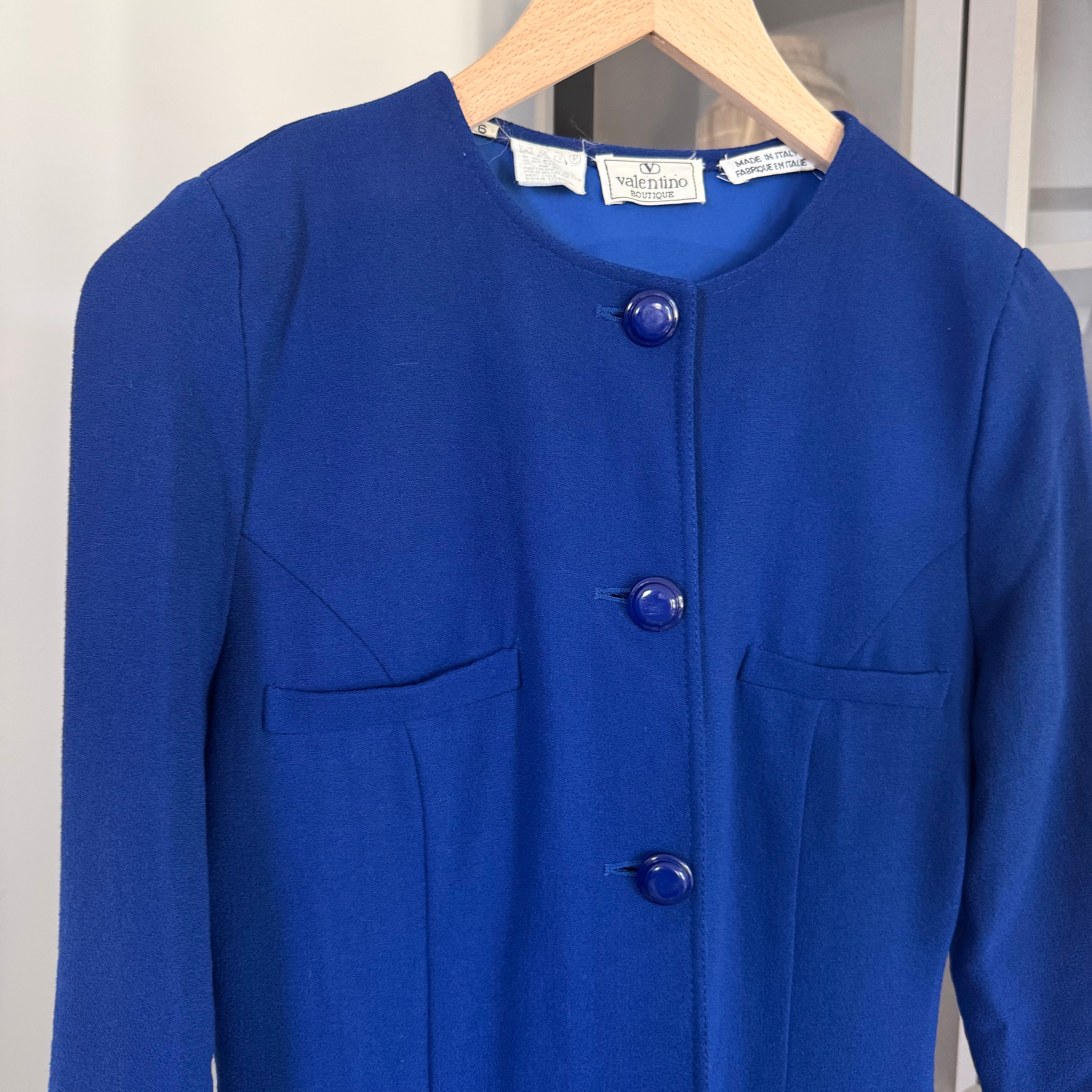 VTG Valentino Boutique Royal Blue Crepe Long Sleeve Midi Dress