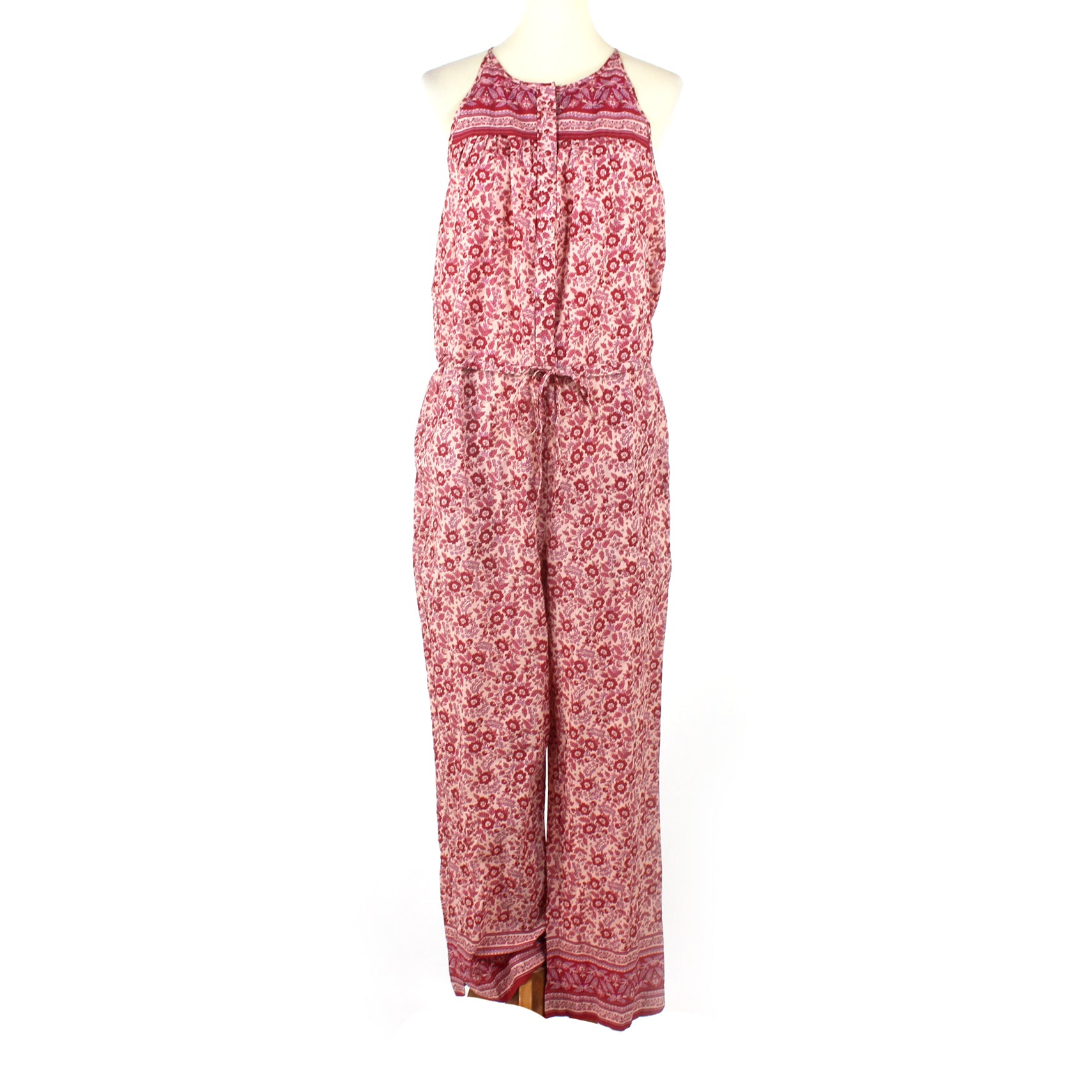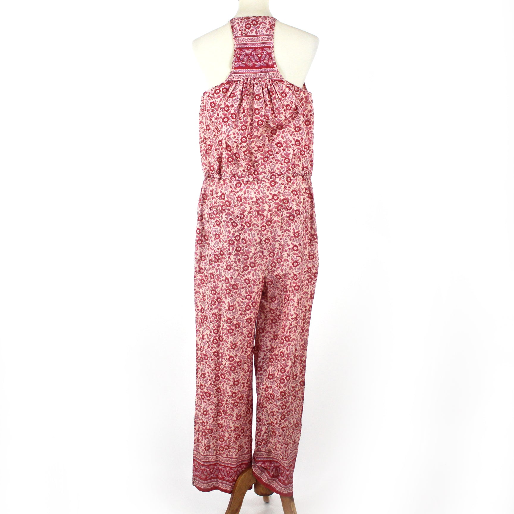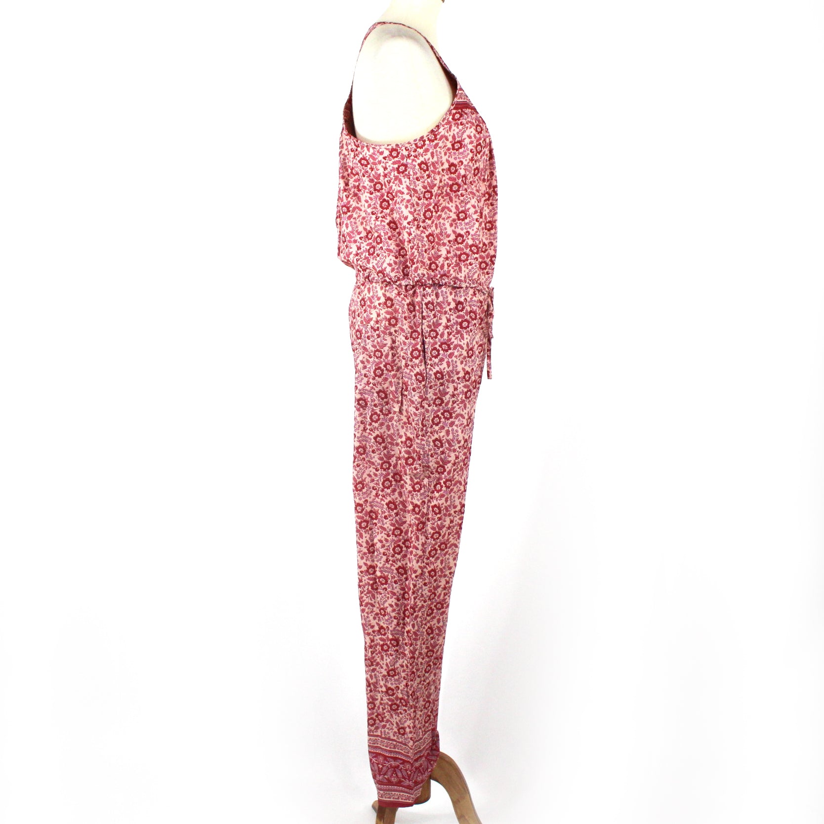 Faherty Adella Sun Up Block Pink Burgundy Floral Print Racerback Jumpsuit