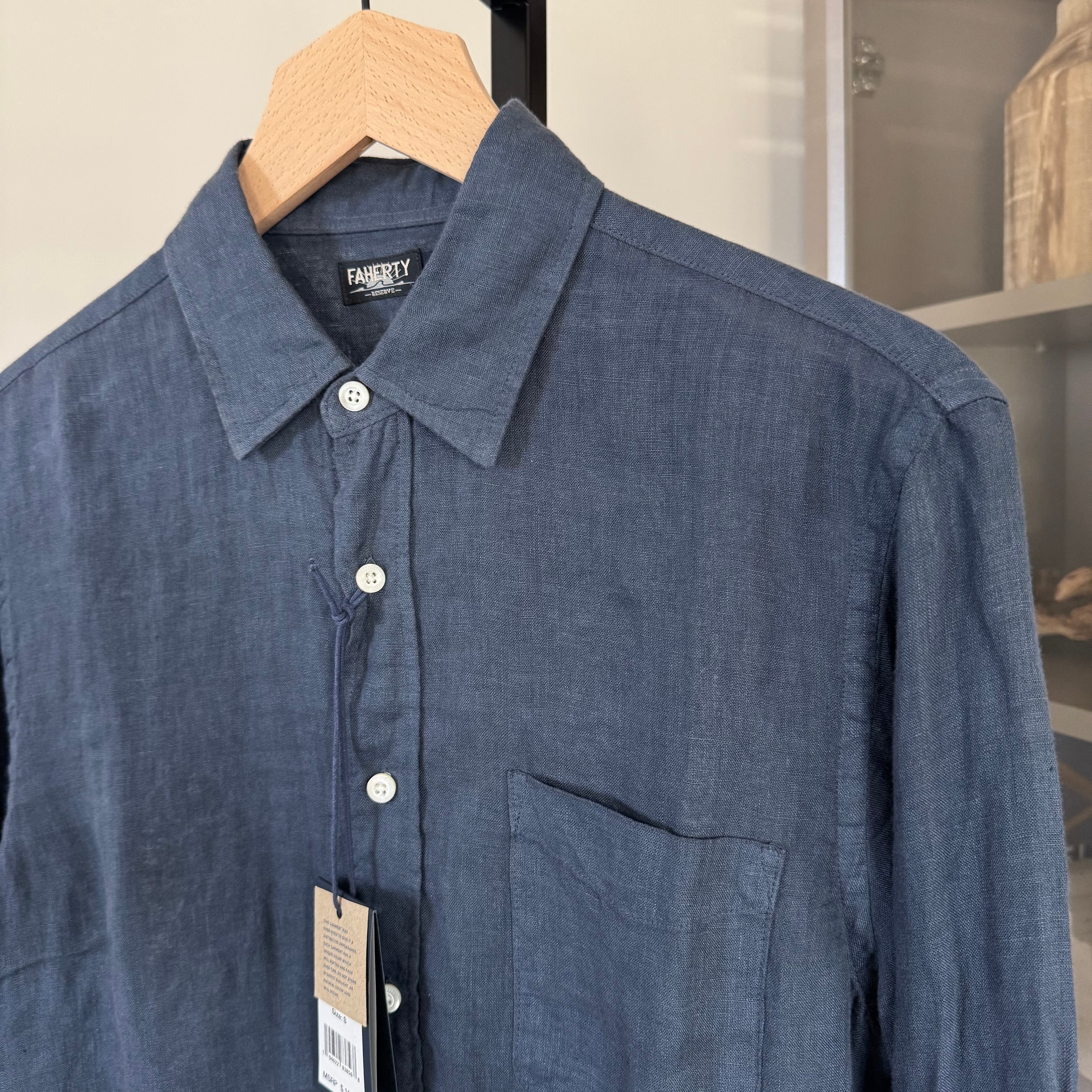 Faherty Linen Laguna Storm Navy Long Sleeve Shirt