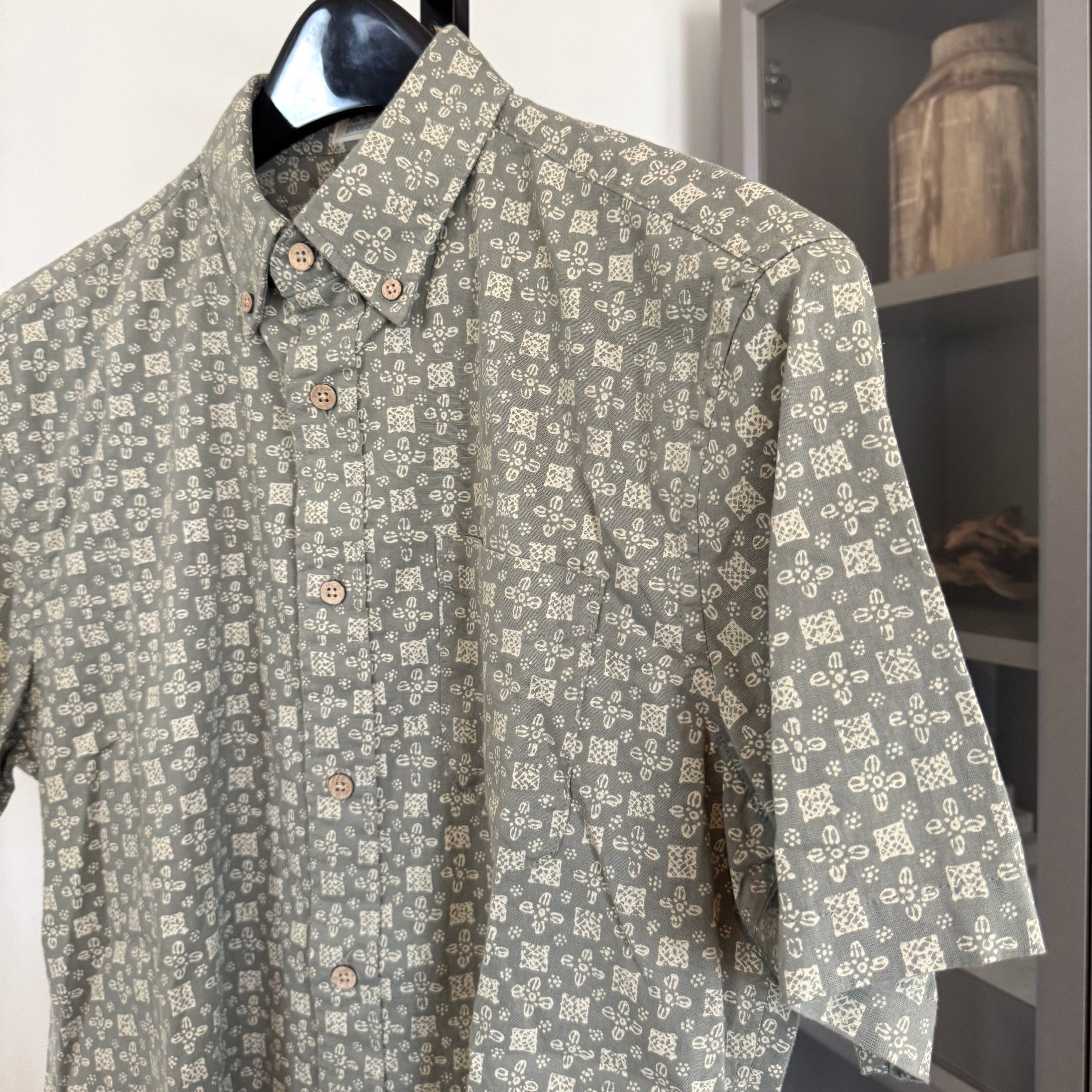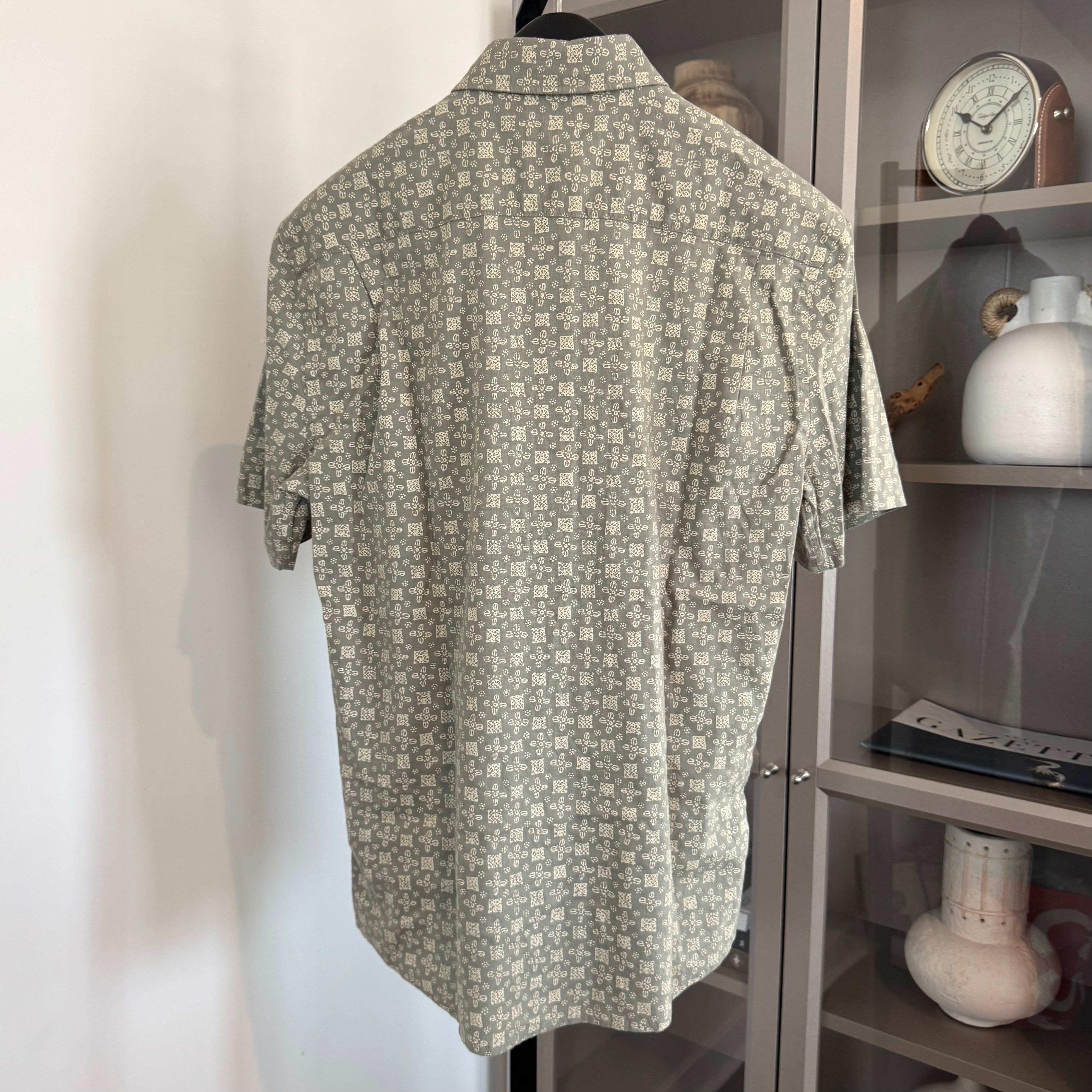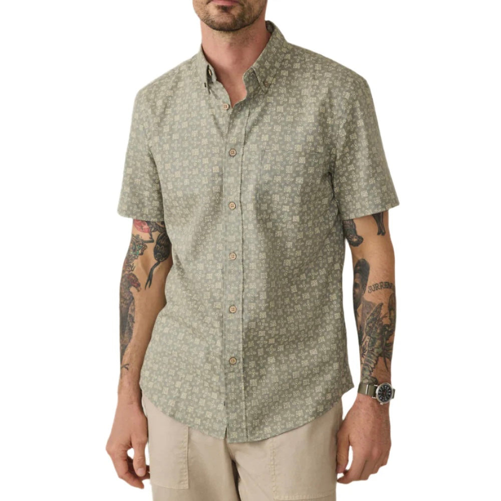 Faherty Short Sleeve The Breeze Gem Sundried Sage Emblem Pattern Shirt