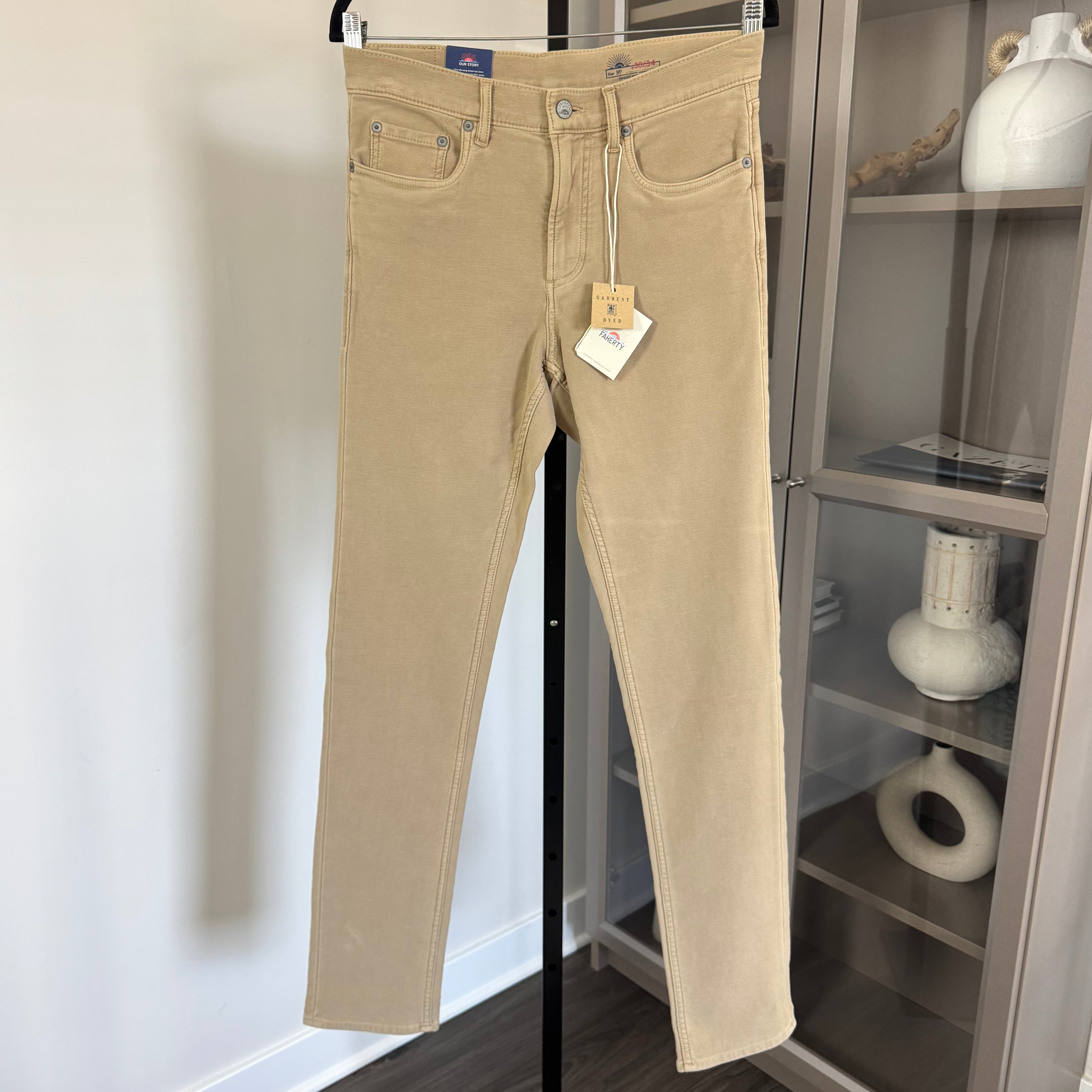 Faherty Stretch Terry Khaki Tan Rugged Mid Rise Slim Fit Pants