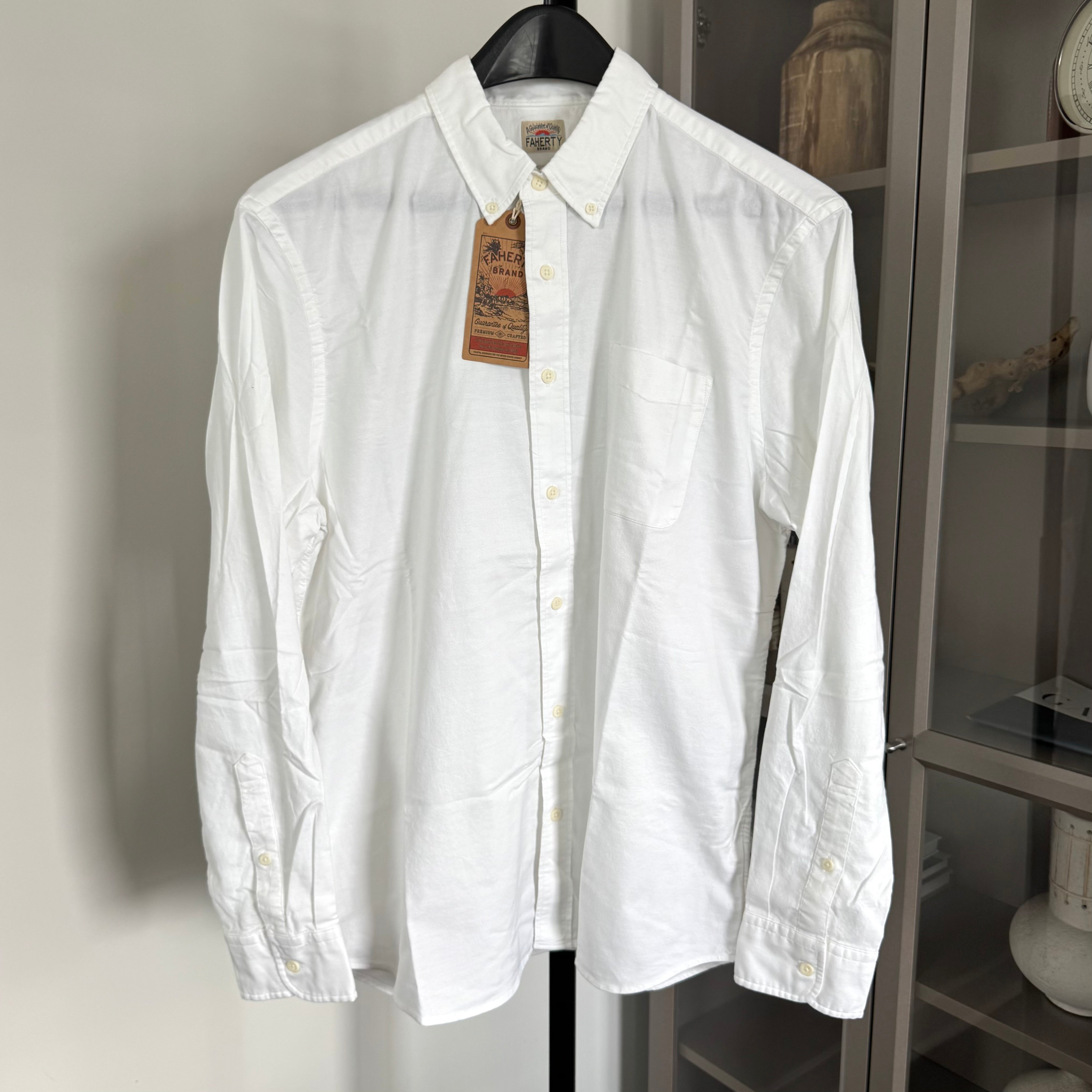 Faherty Supima Pure White Long Sleeve Button Down Shirt