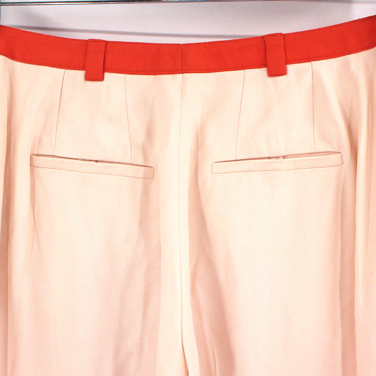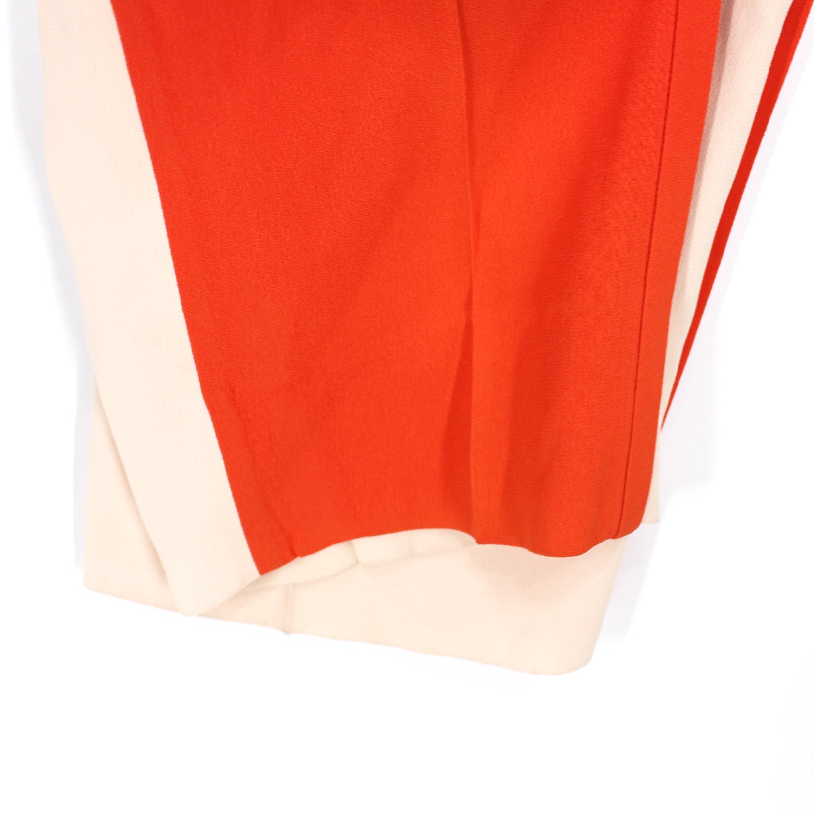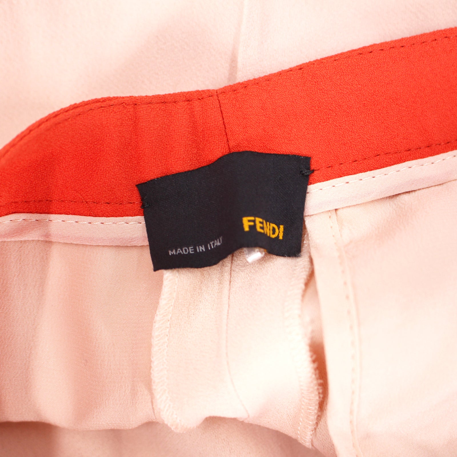 Fendi Tangerine Cream Color Block Mid Rise Straight Leg Crepe Trouser Pants