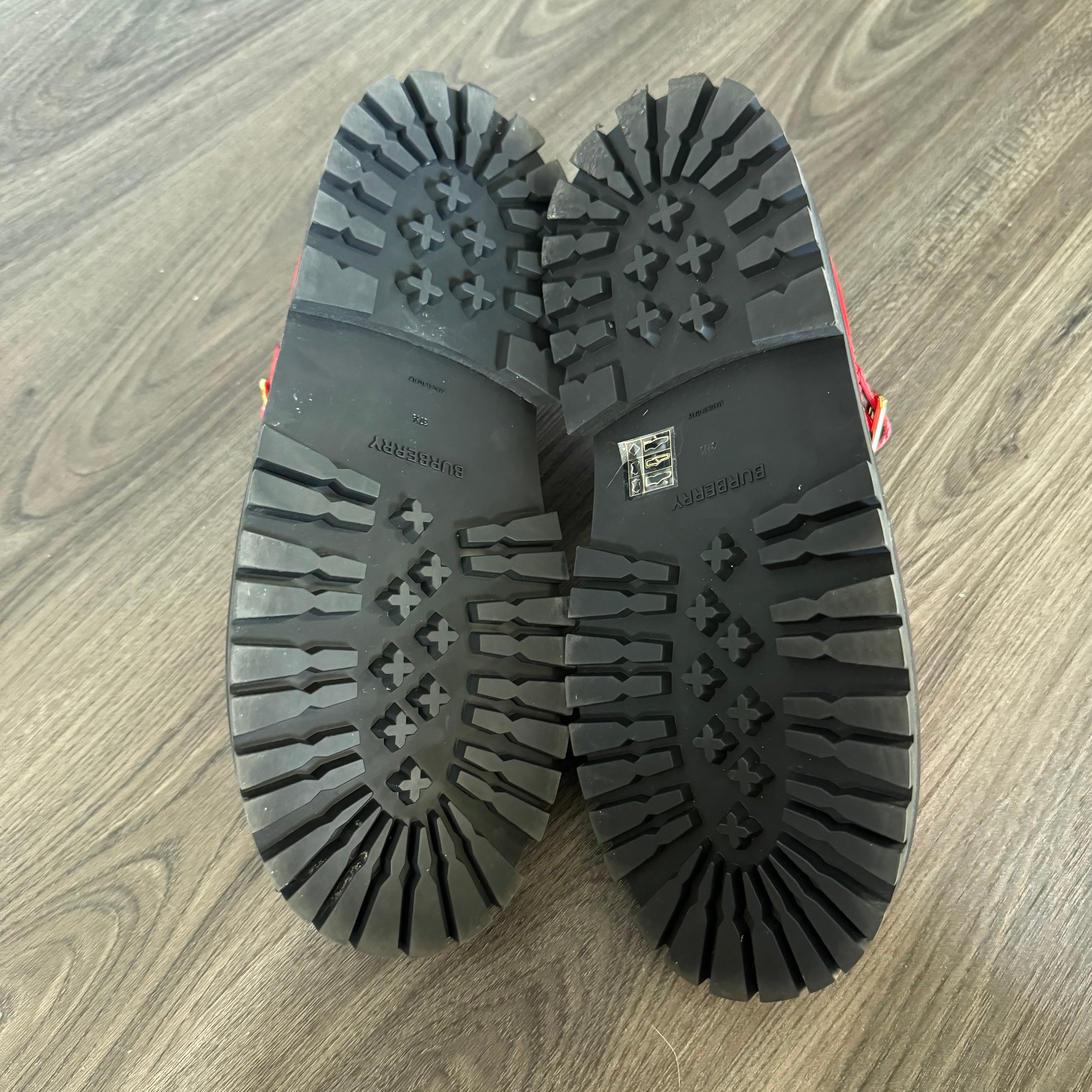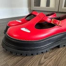 Burberry Aldwych Red Smooth Leather T-Bar Black Chunky Platform Flats