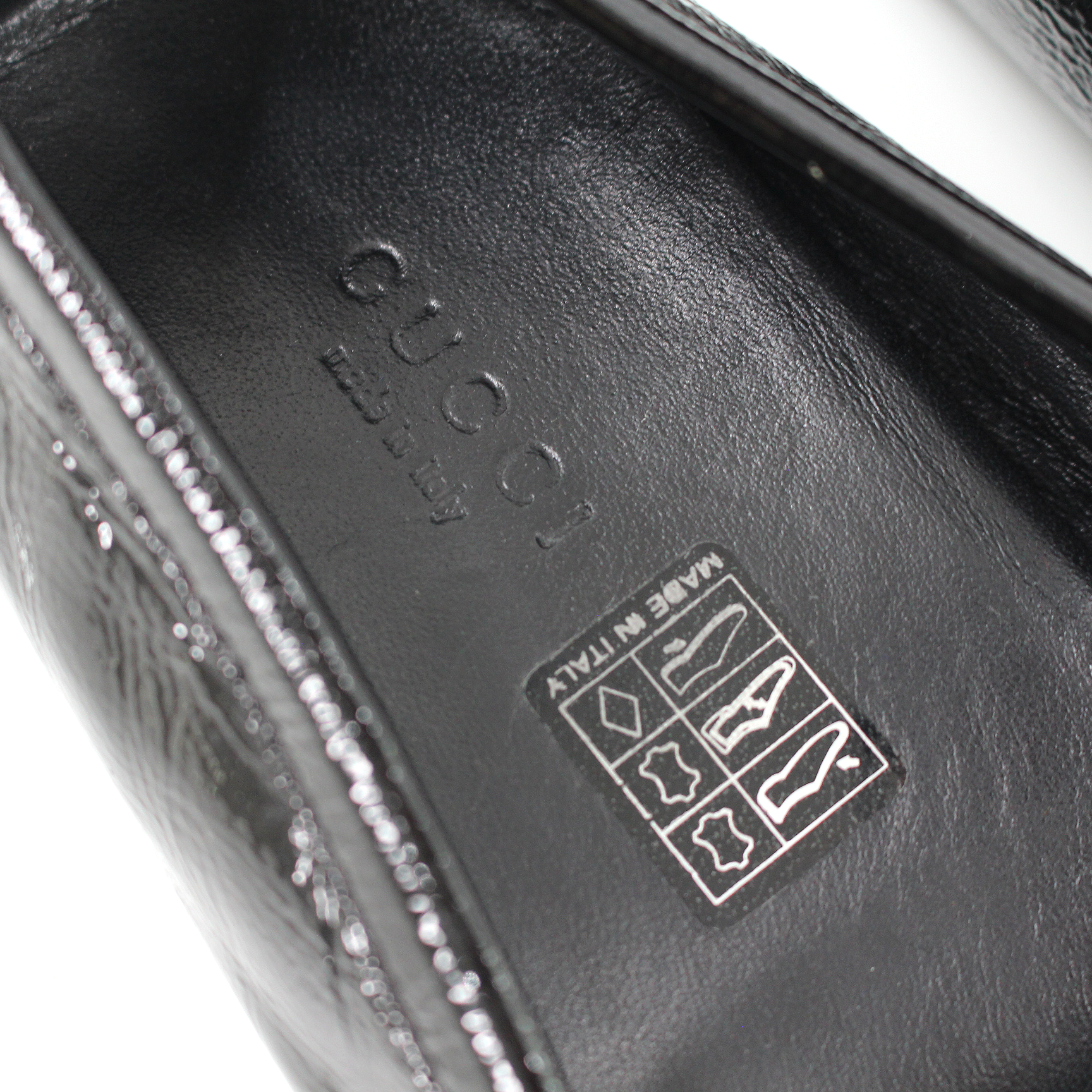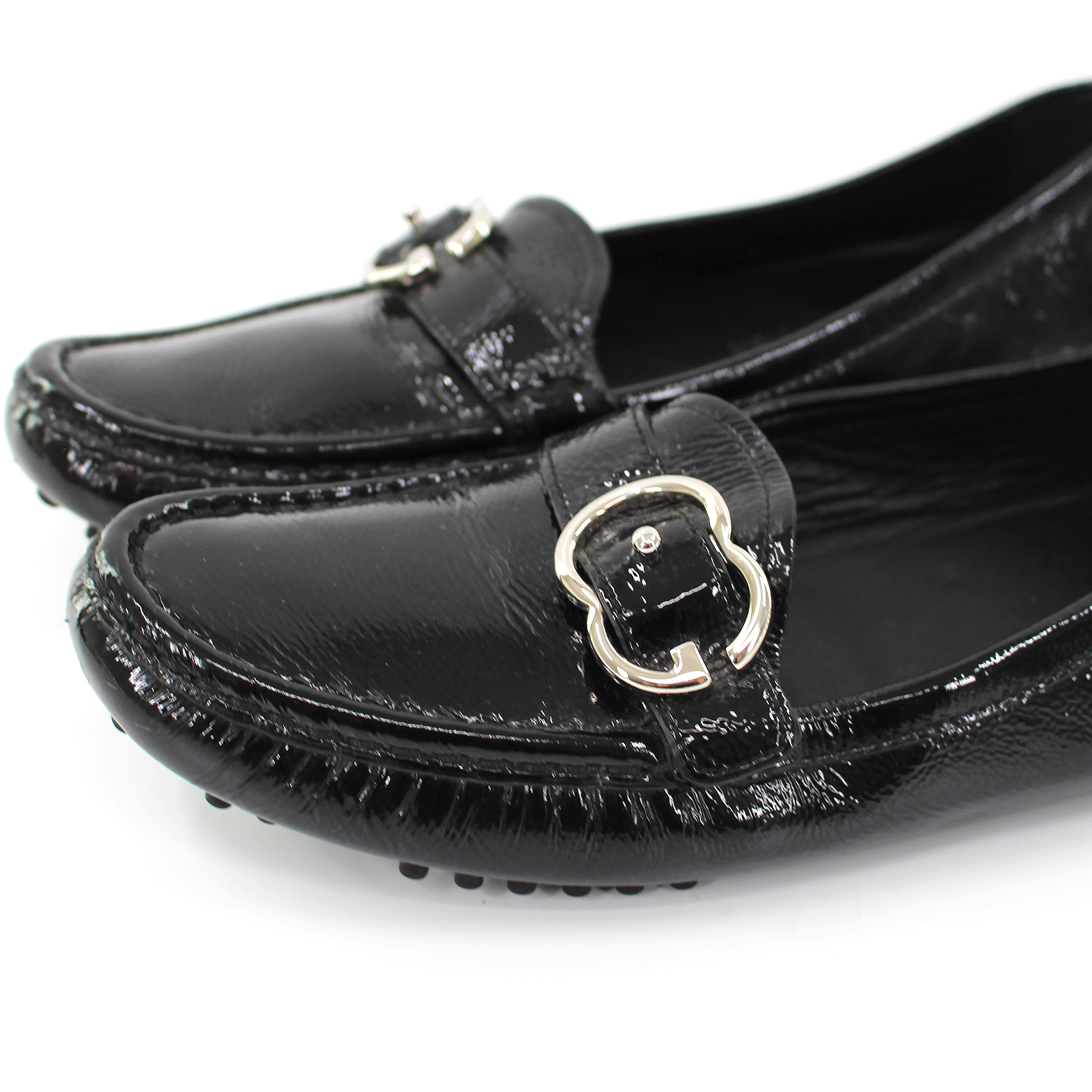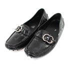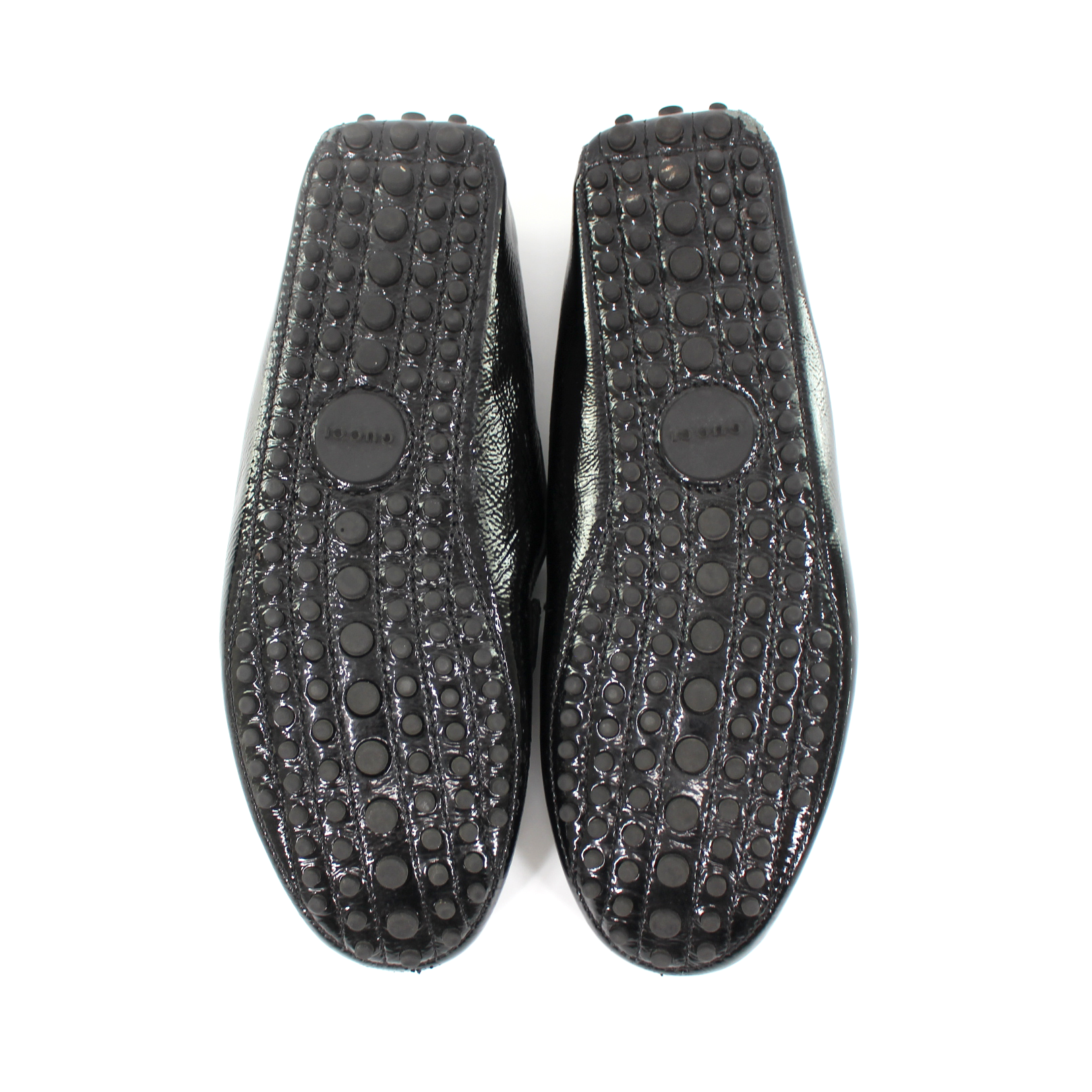 Gucci Black Patent Leather Interlocking Silver Tone GG Driving Moccasin Loafer