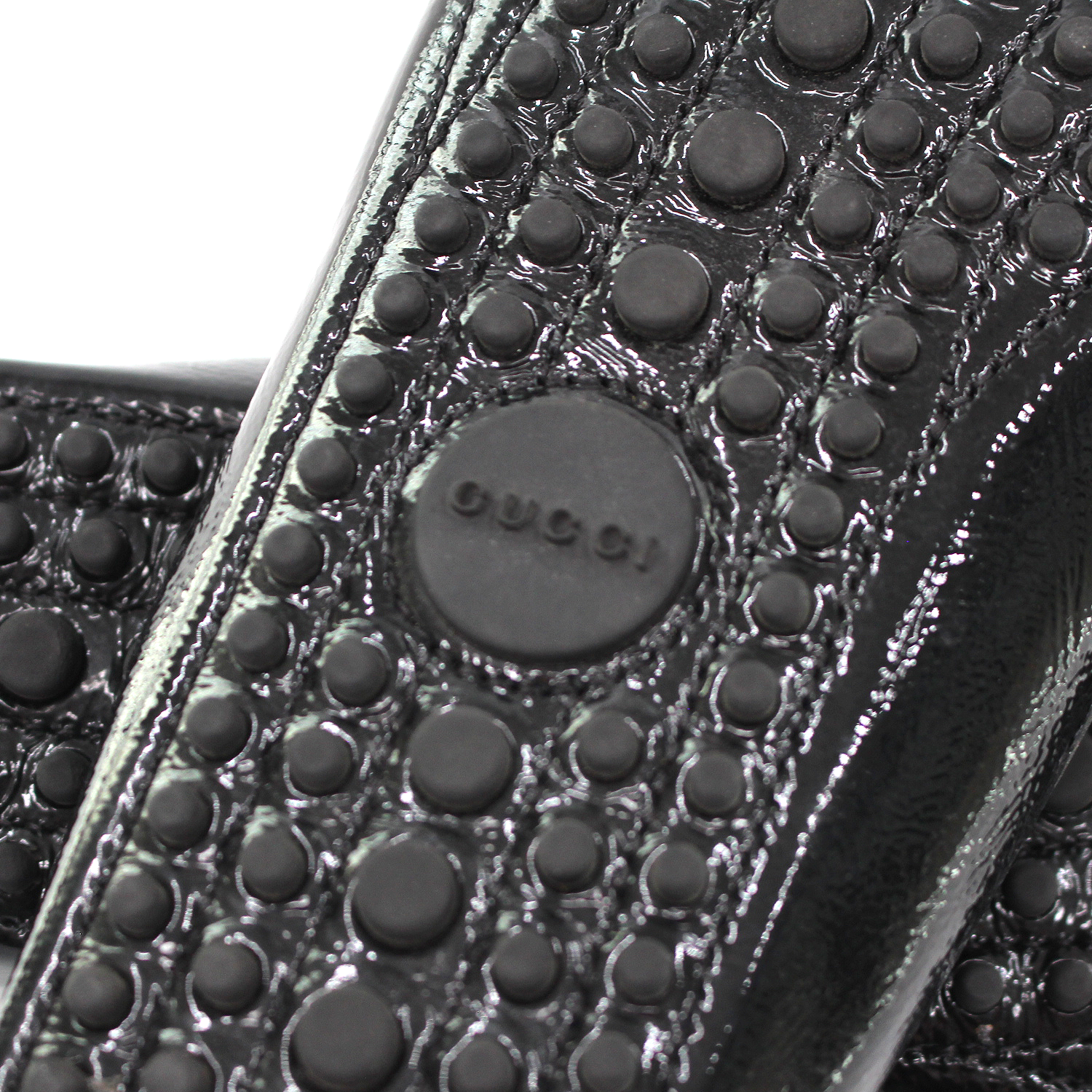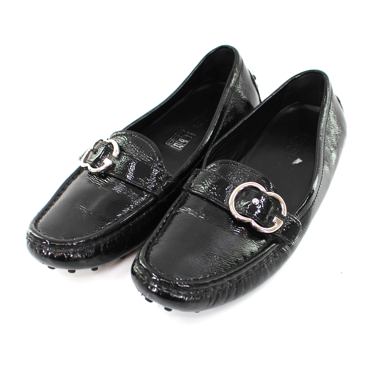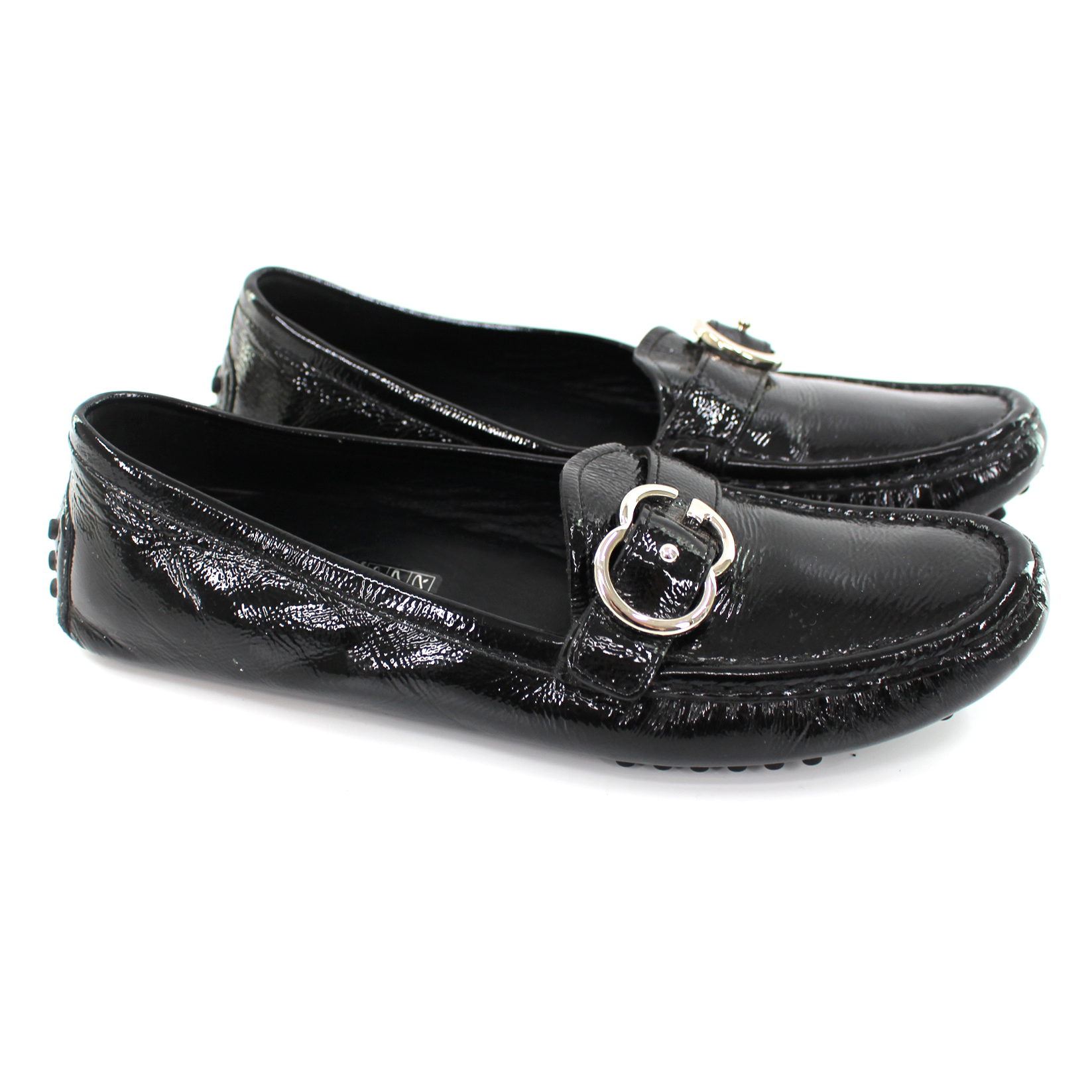 Gucci Black Patent Leather Interlocking Silver Tone GG Driving Moccasin Loafer