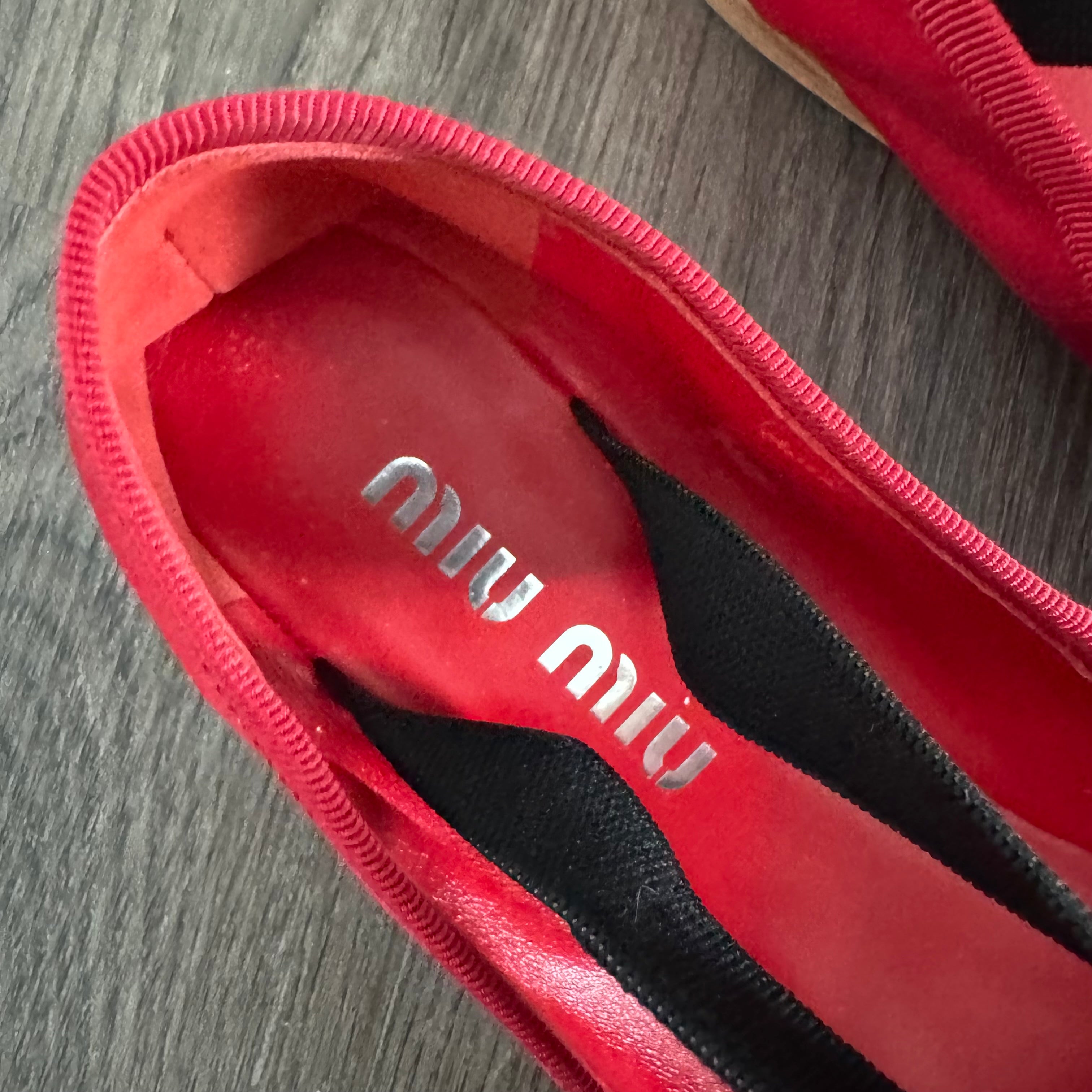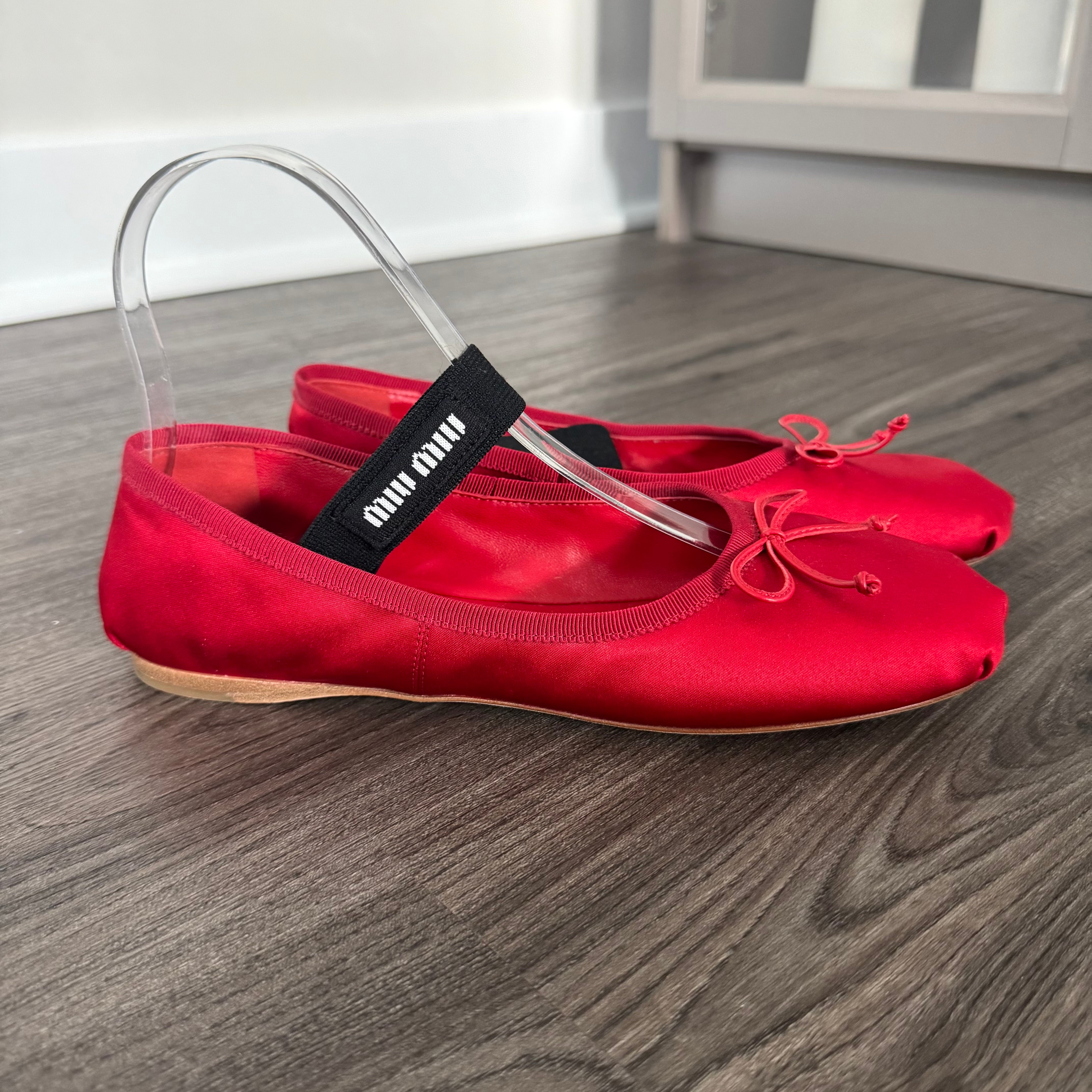 Miu Miu Red Satin Dainty Leather Bow Ballet Flats