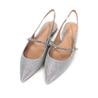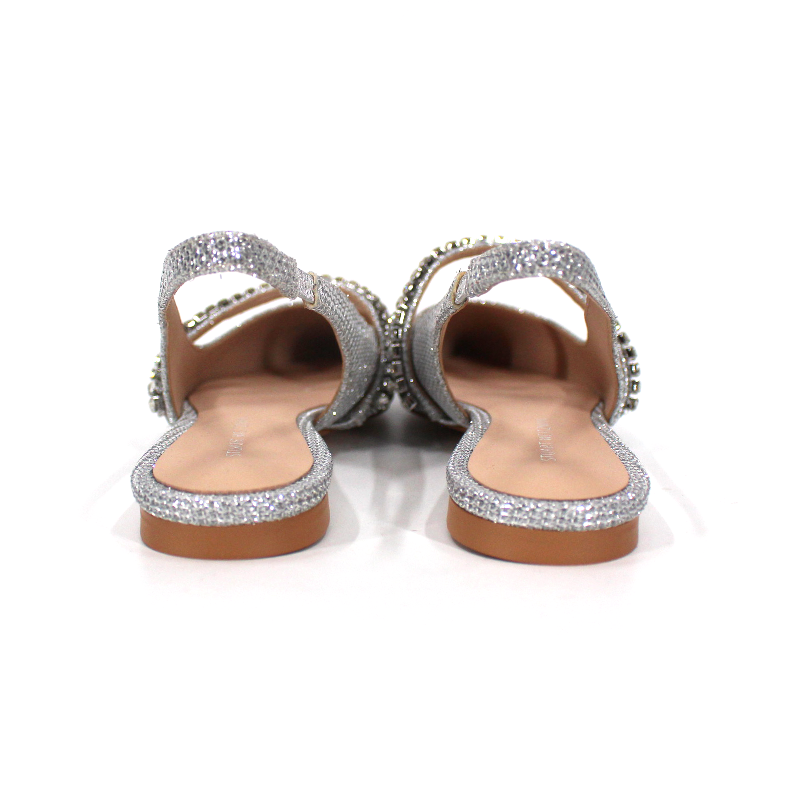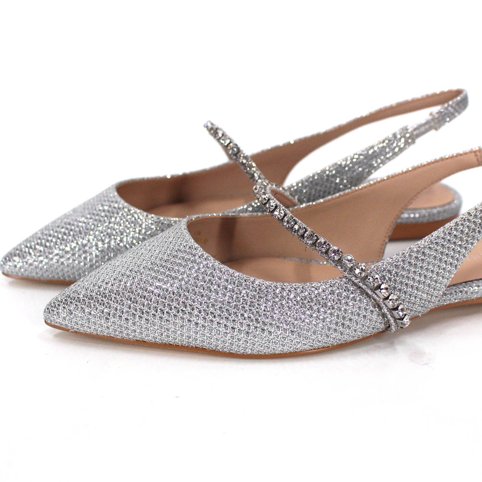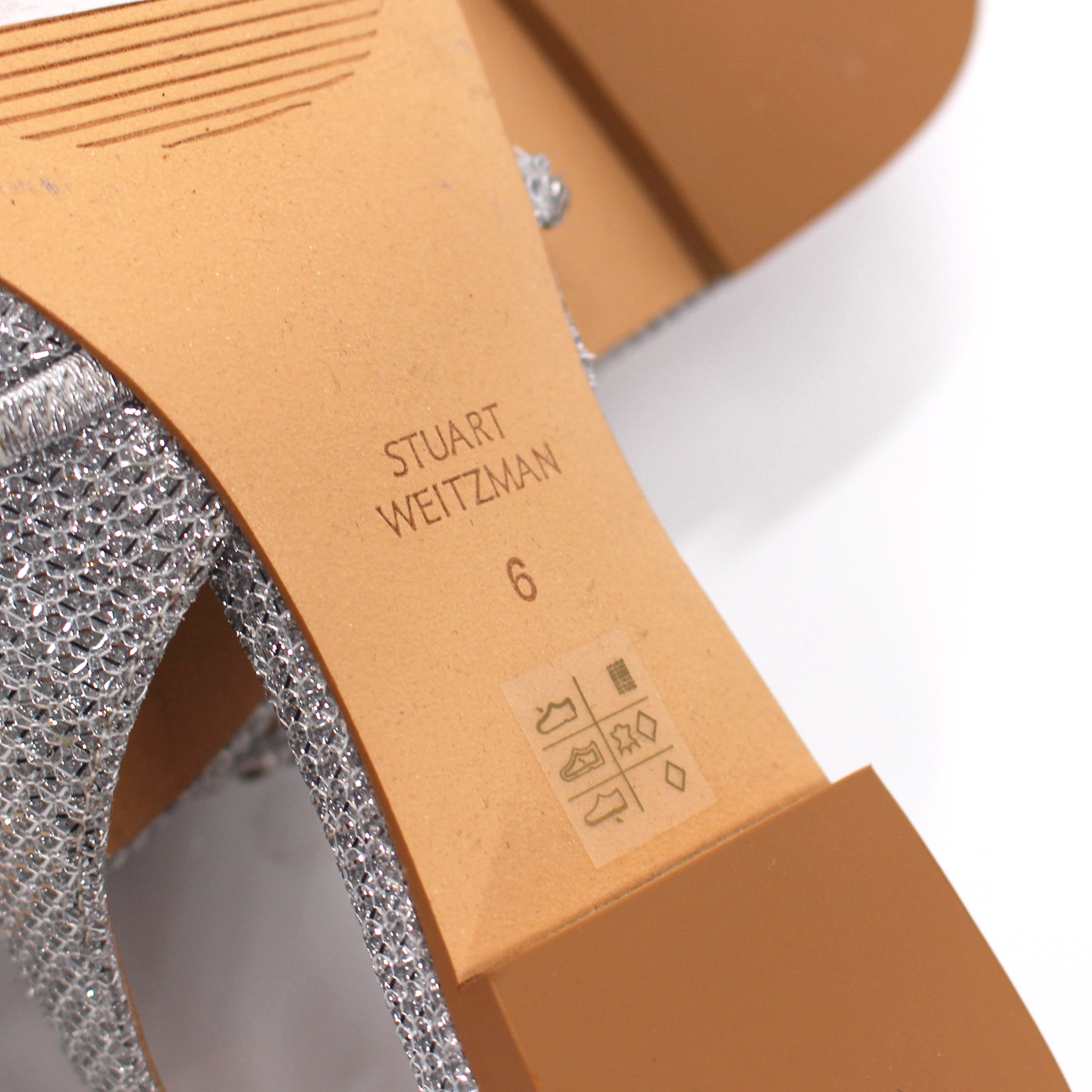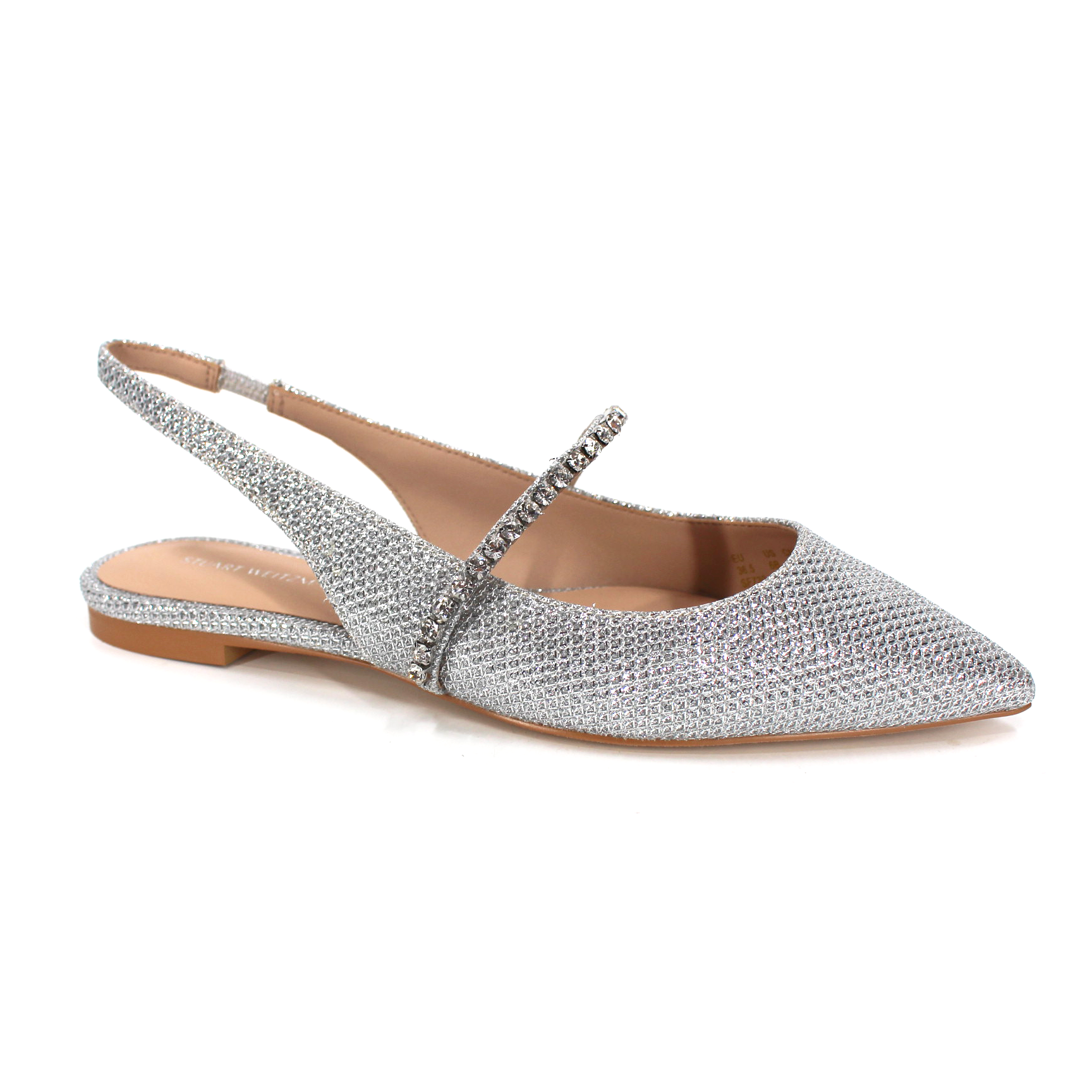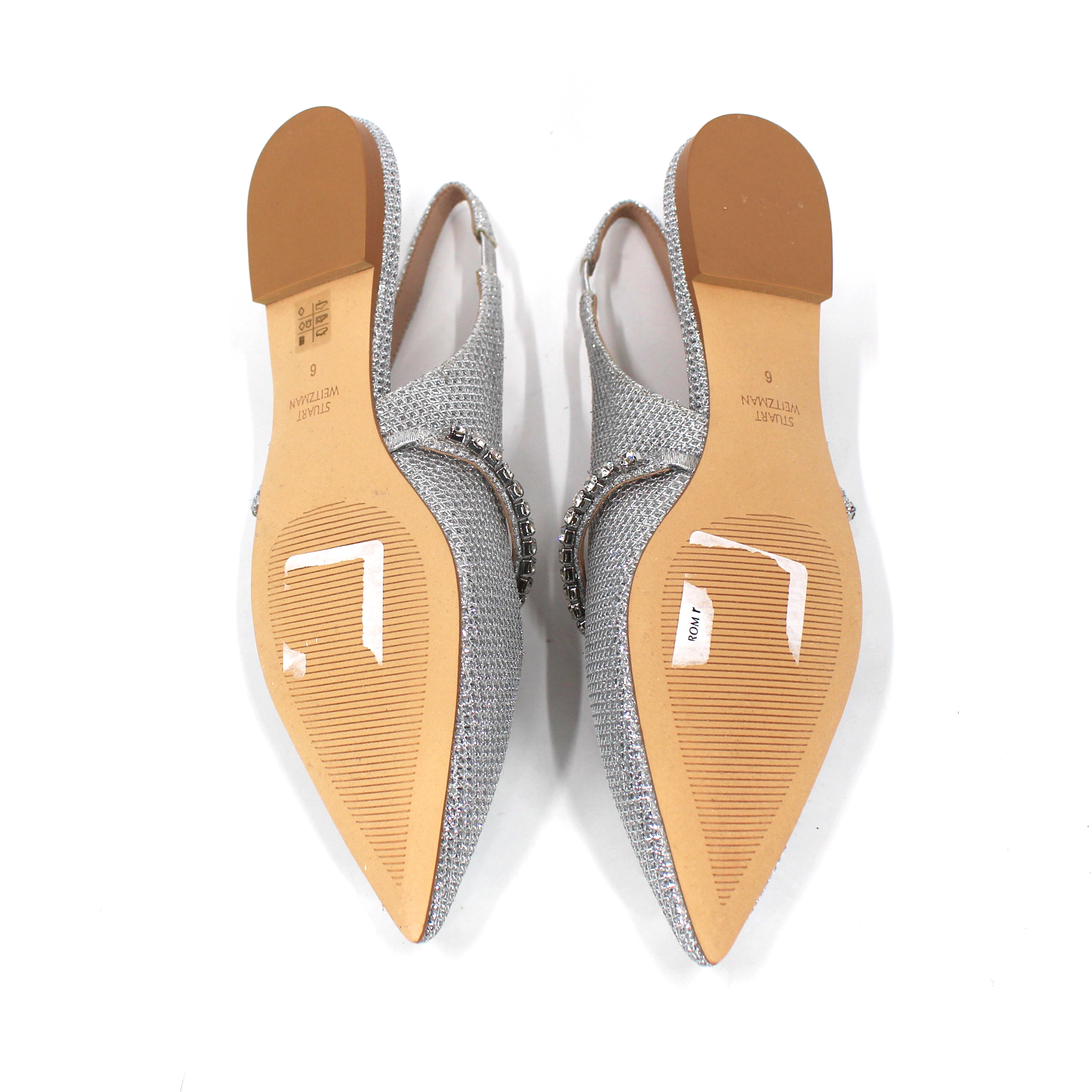 Stuart Weitzman Crystalline Mesh Leather Silver Slingback Pointed Flats