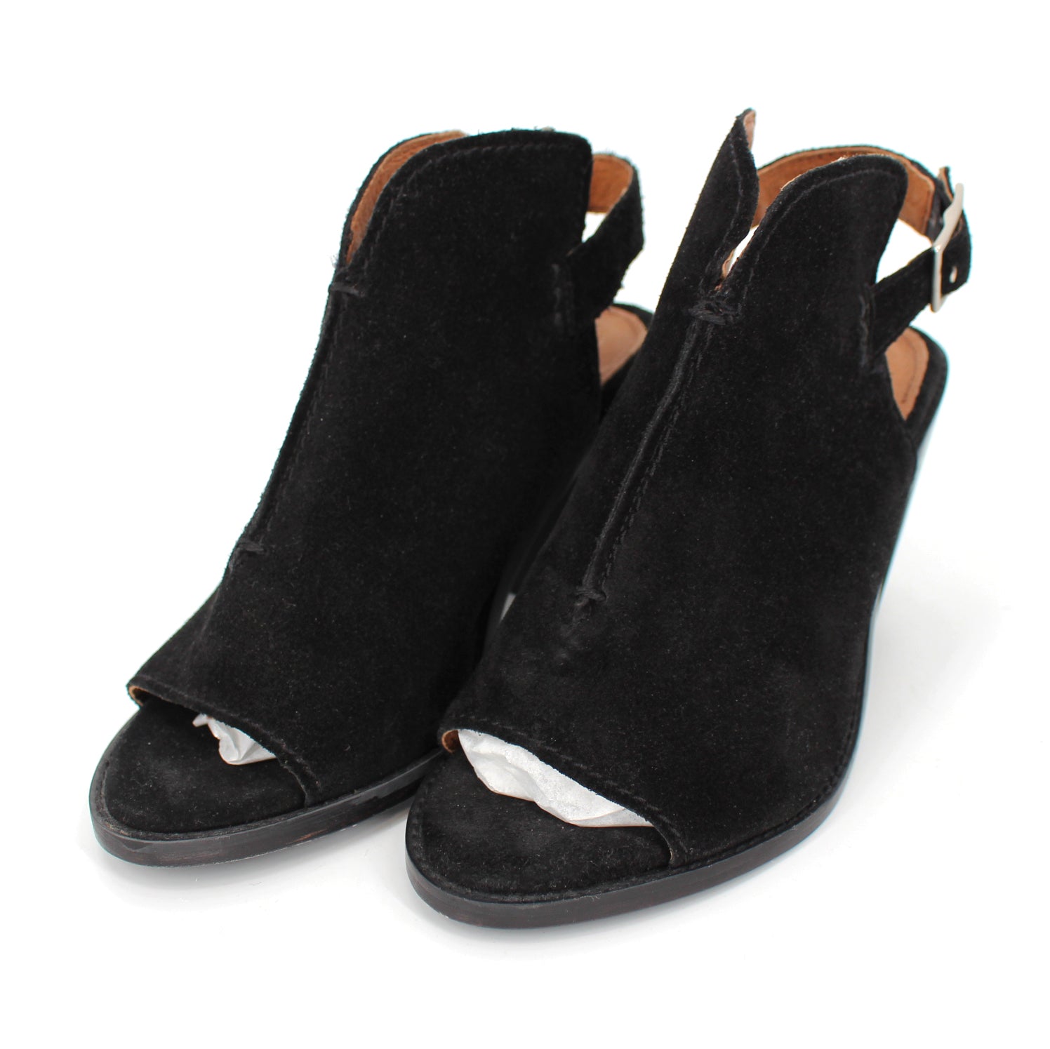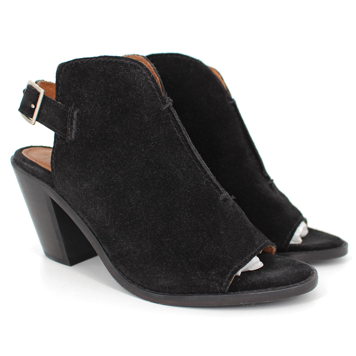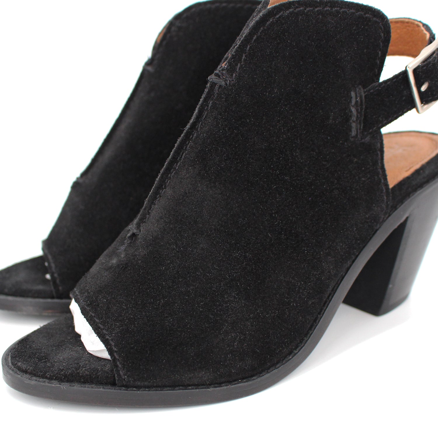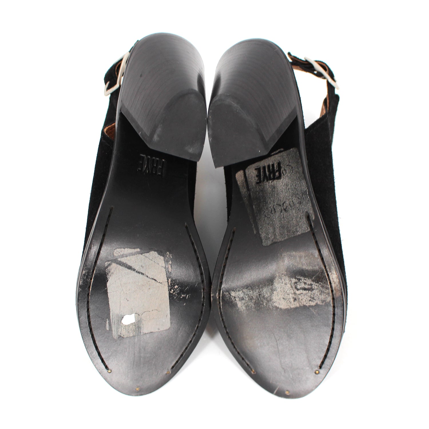 Frye Black Suede Courtney Slingback Block Heel.