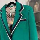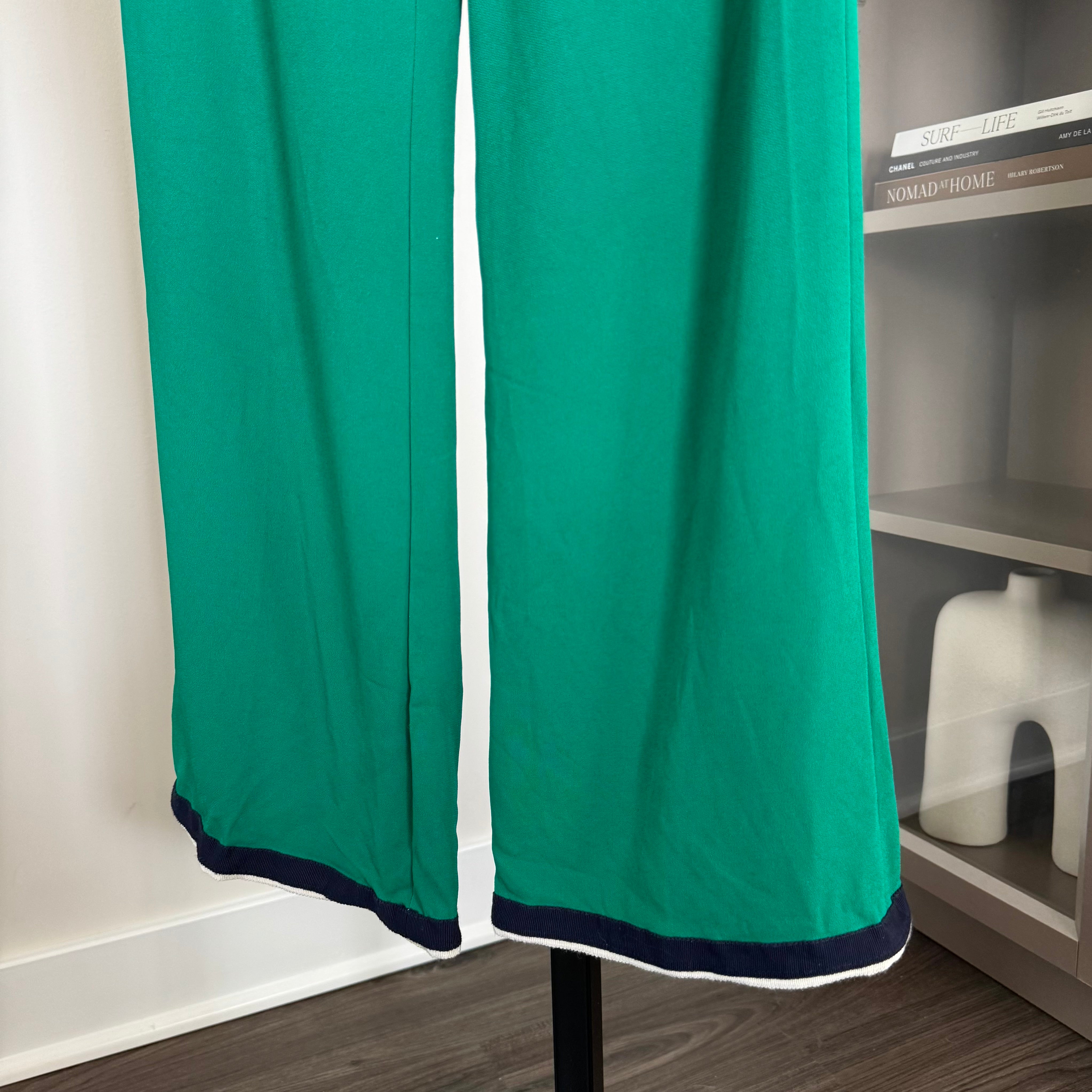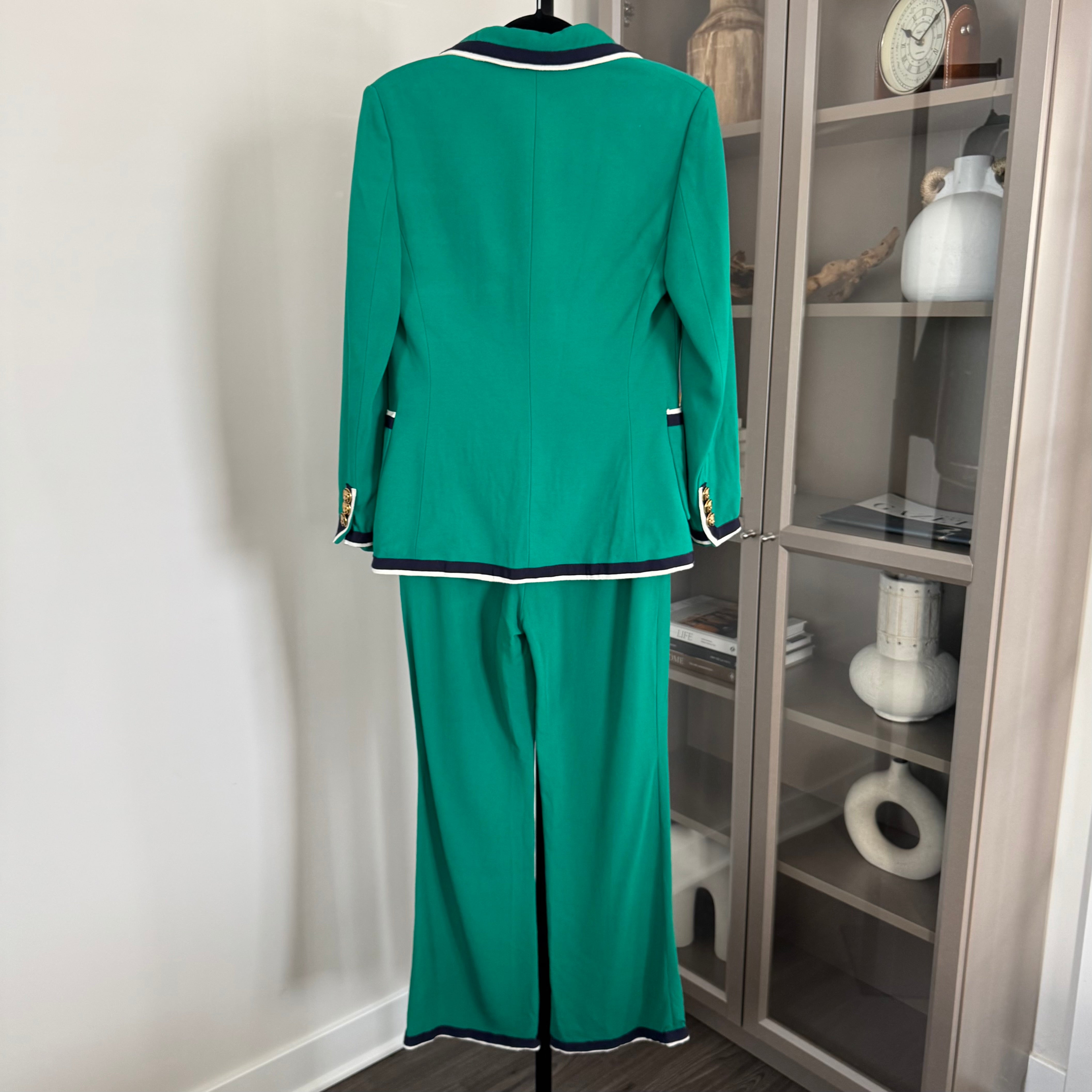 Gucci Green Cady Navy Trim Viscose Pant Suit Set