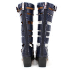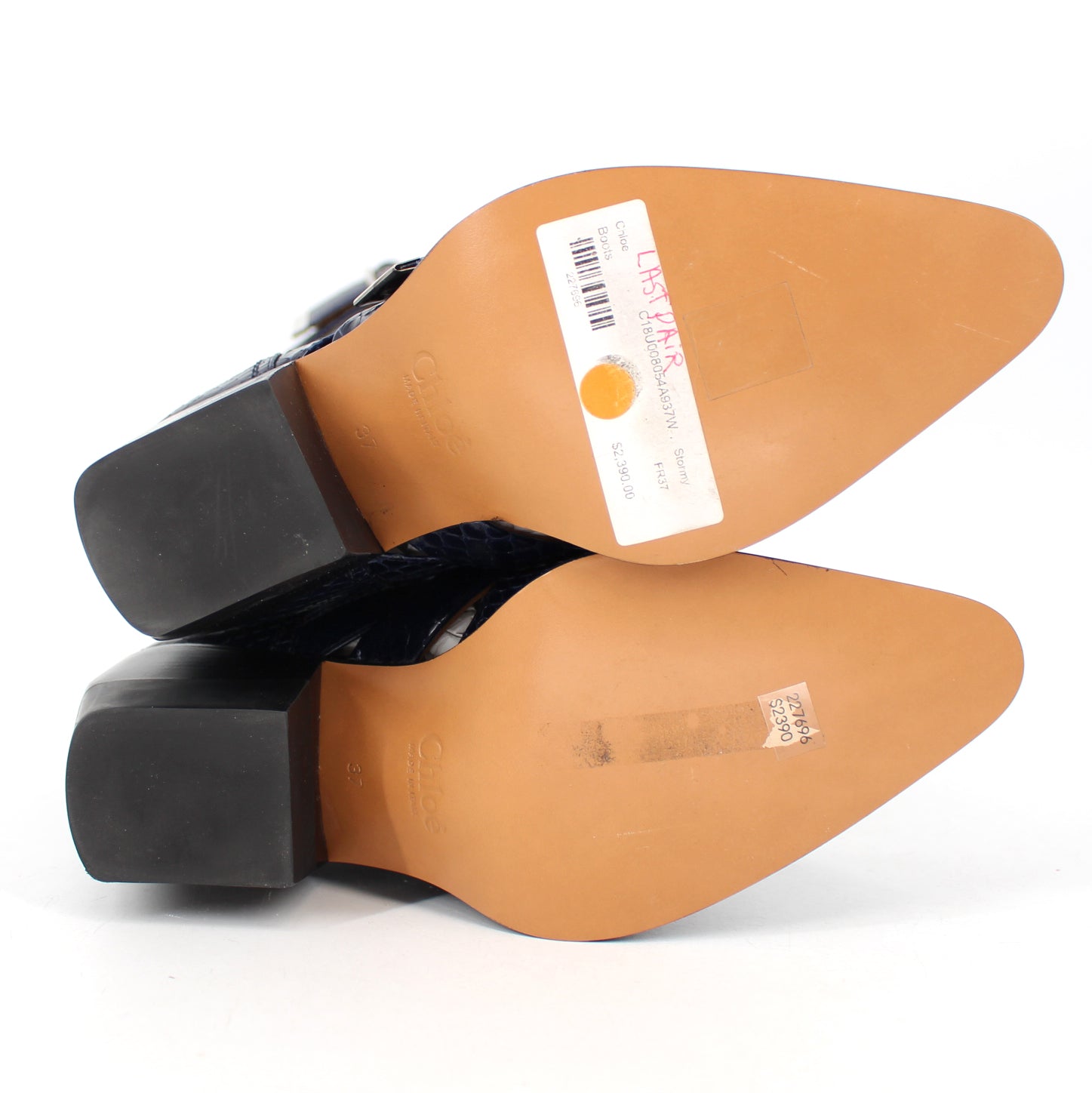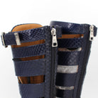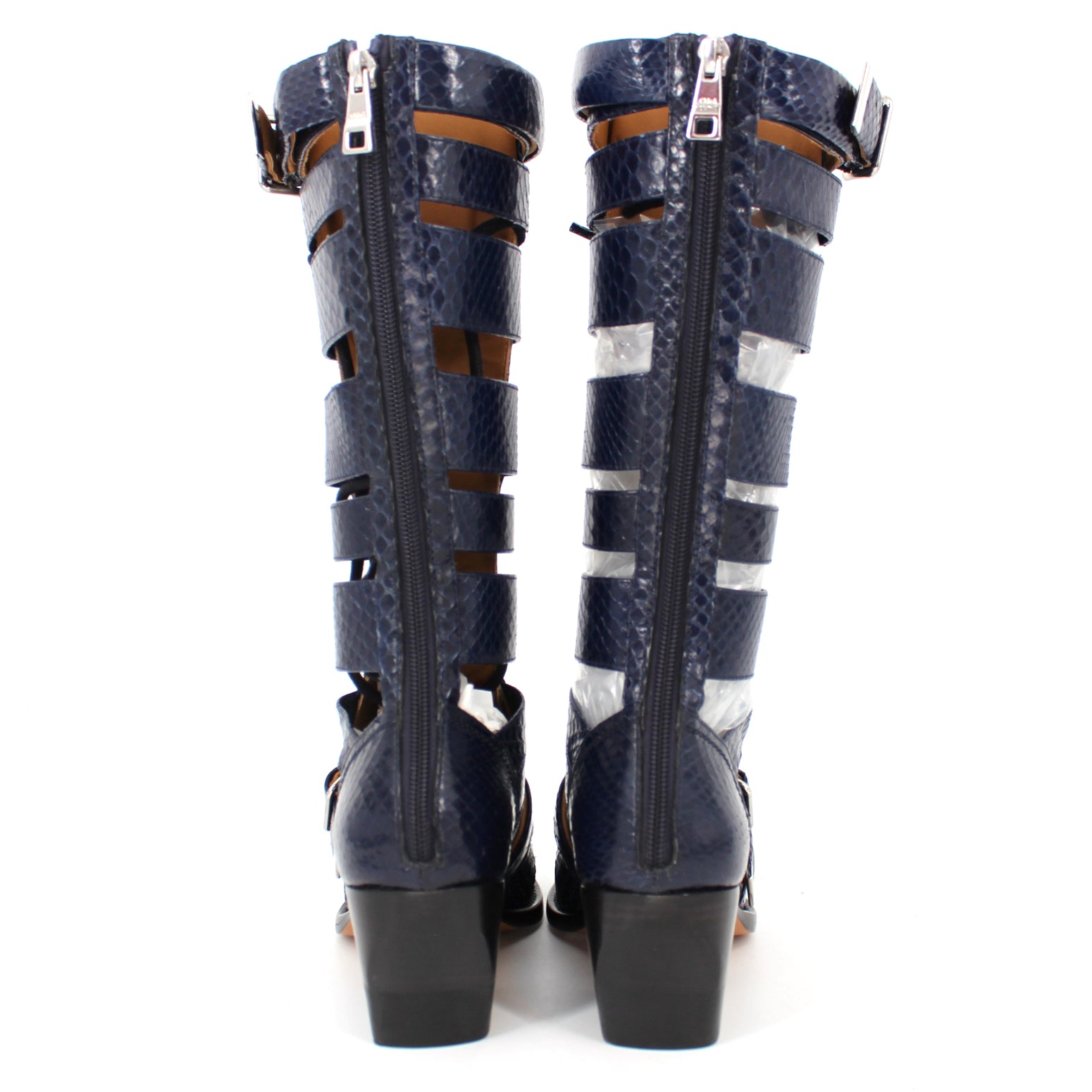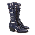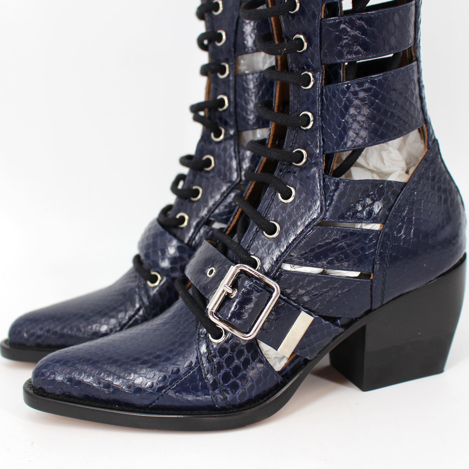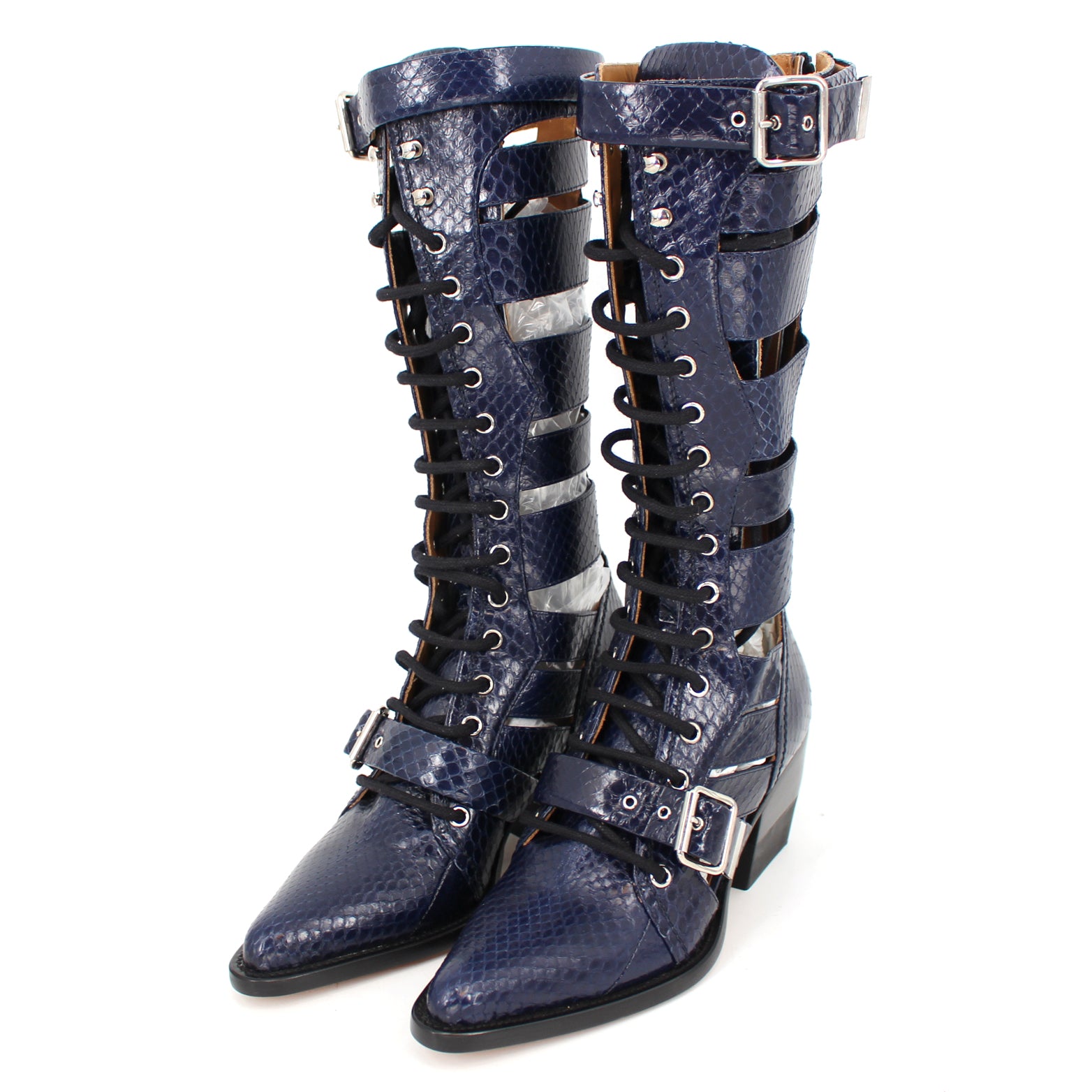 Chloé Riley Knee High Navy Blue Snakeskin Leather Lace-Up Bootie Boots.