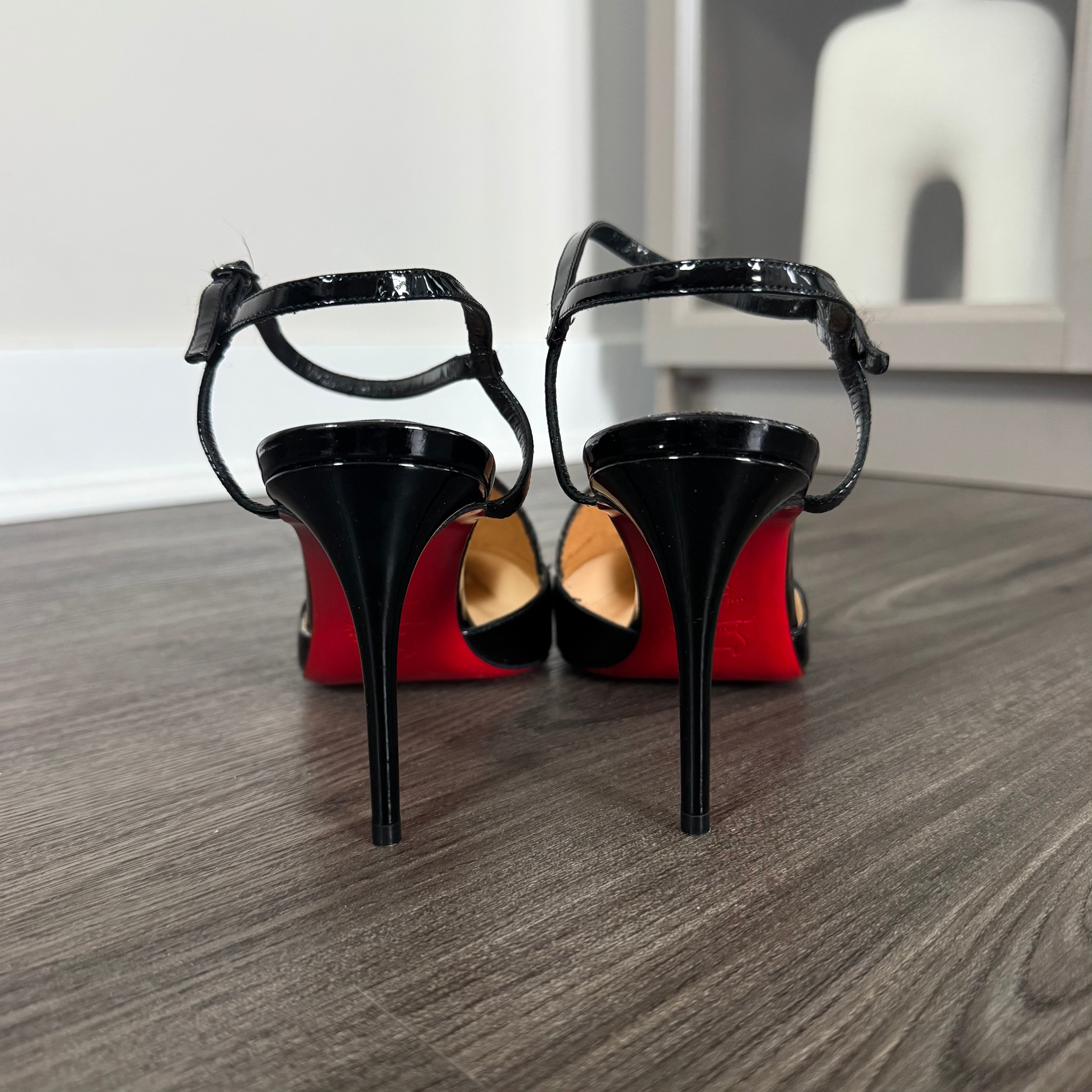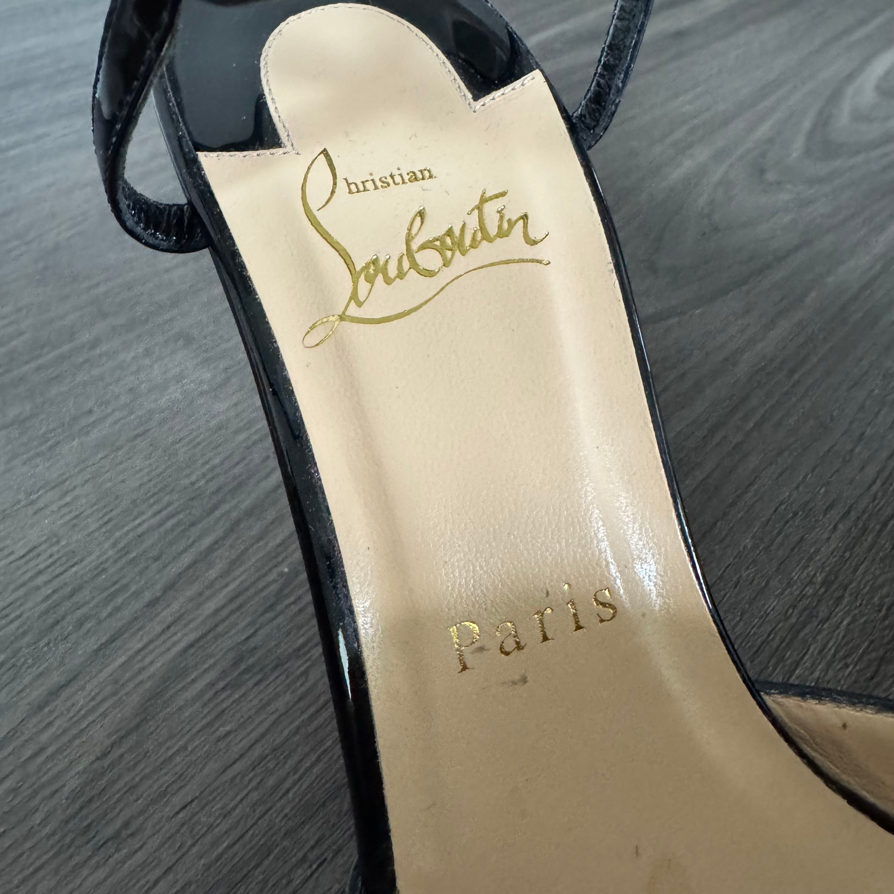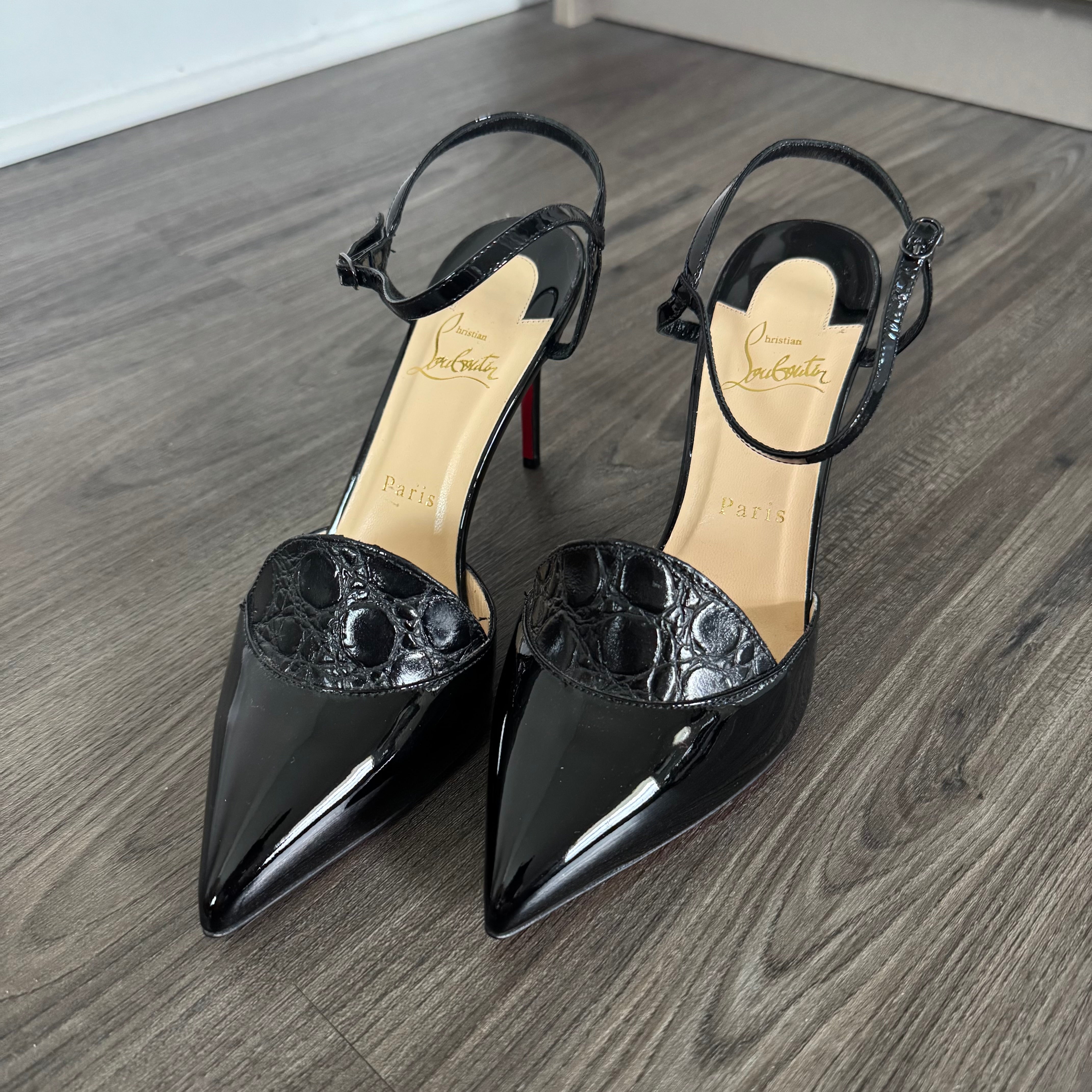 Christian Louboutin Rivierina 85 Black Patent Leather Croc Embossed Trim Heels