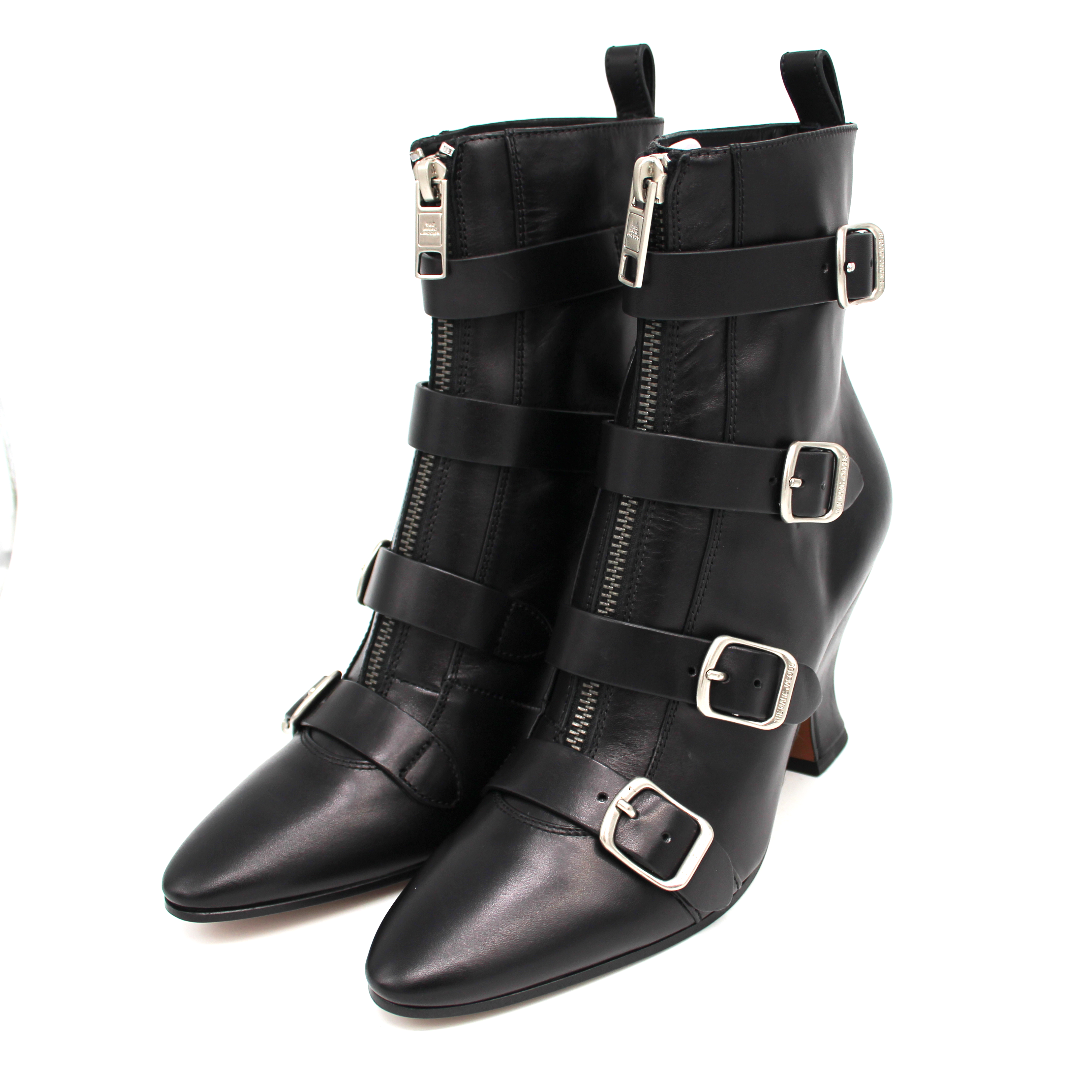 Mark Jacobs St Marks Black Leather Zip Up Buckle Heeled Ankle Bootie.