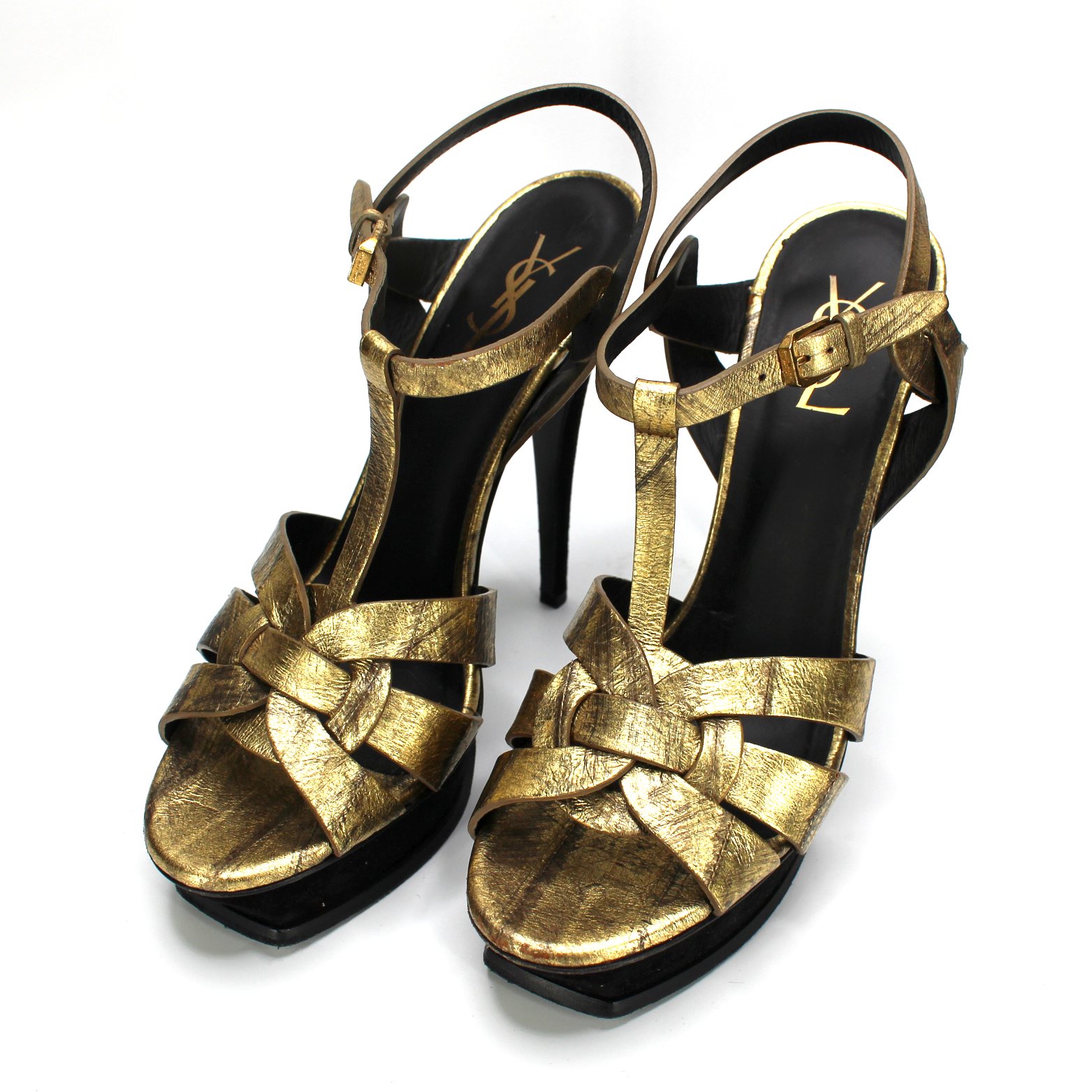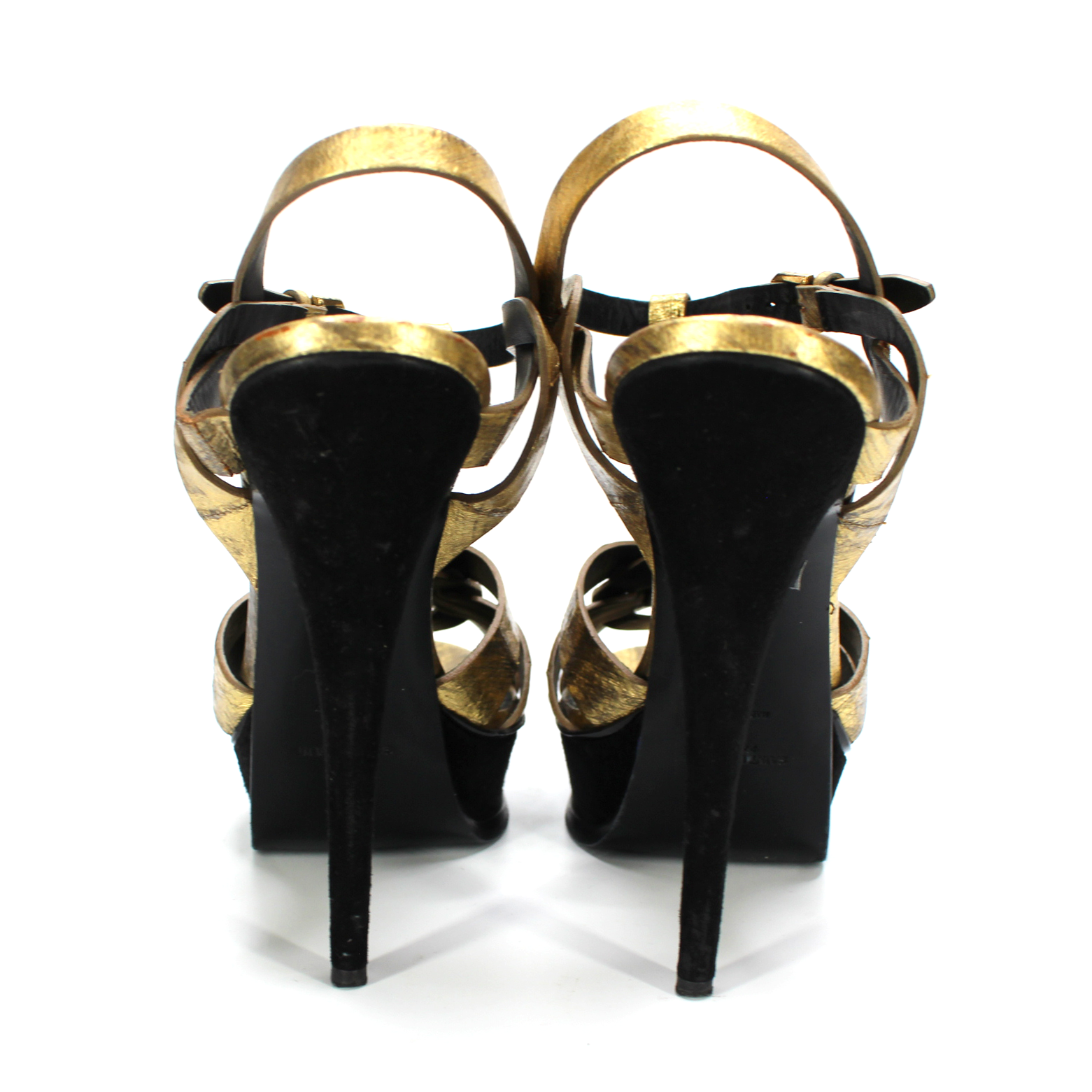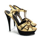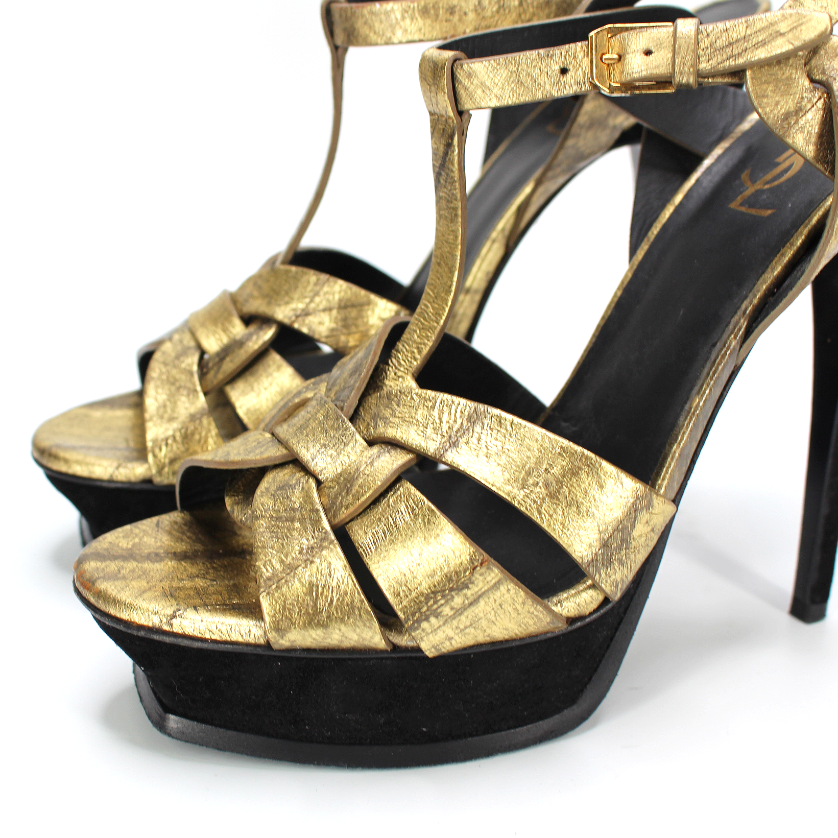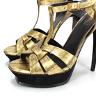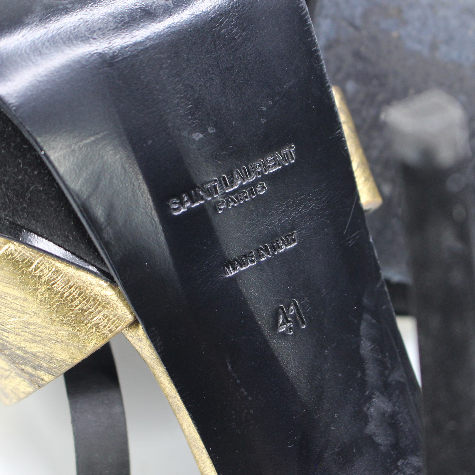 YSL Saint Laurent Tribute Metallic Leather Suede Heel Platform Sandal
