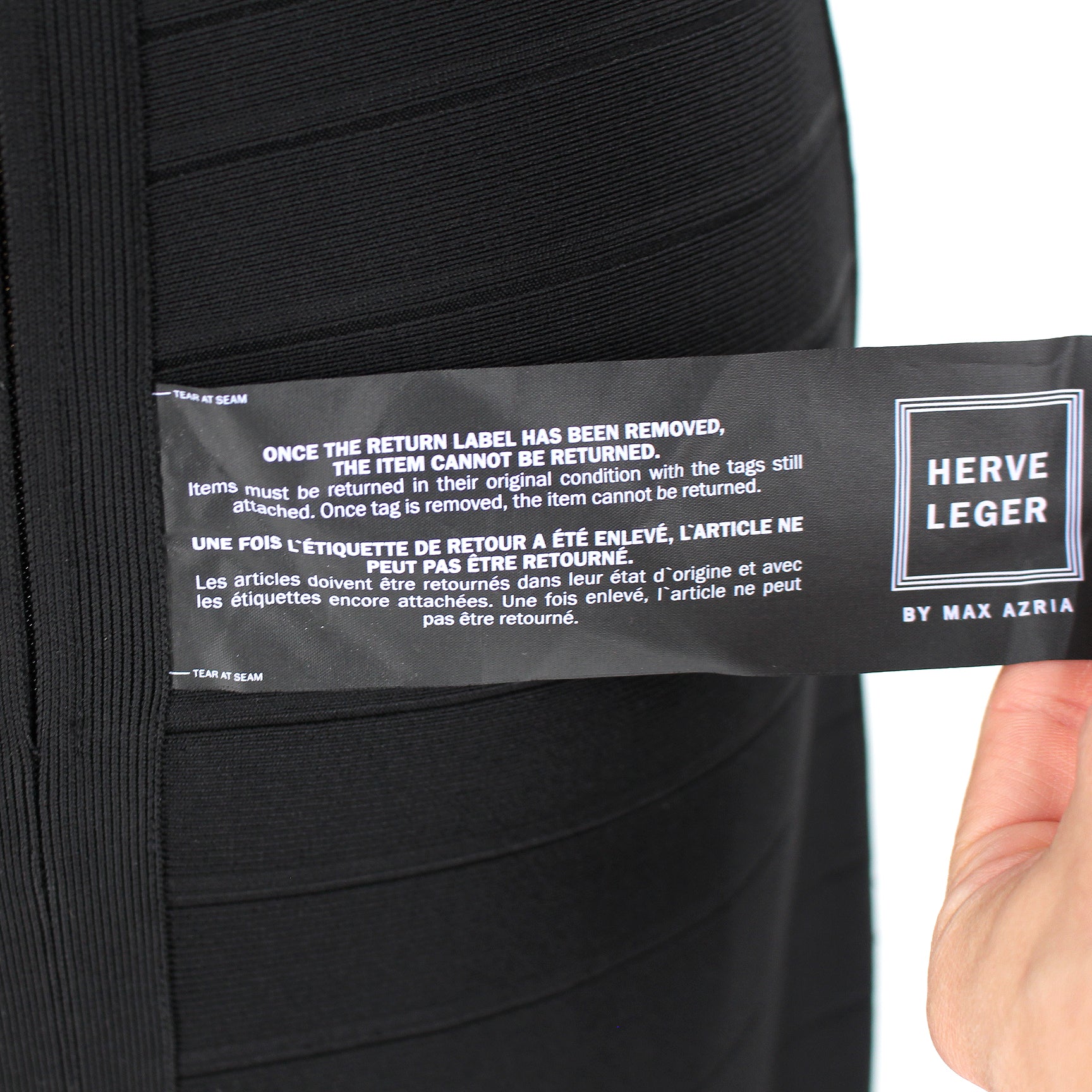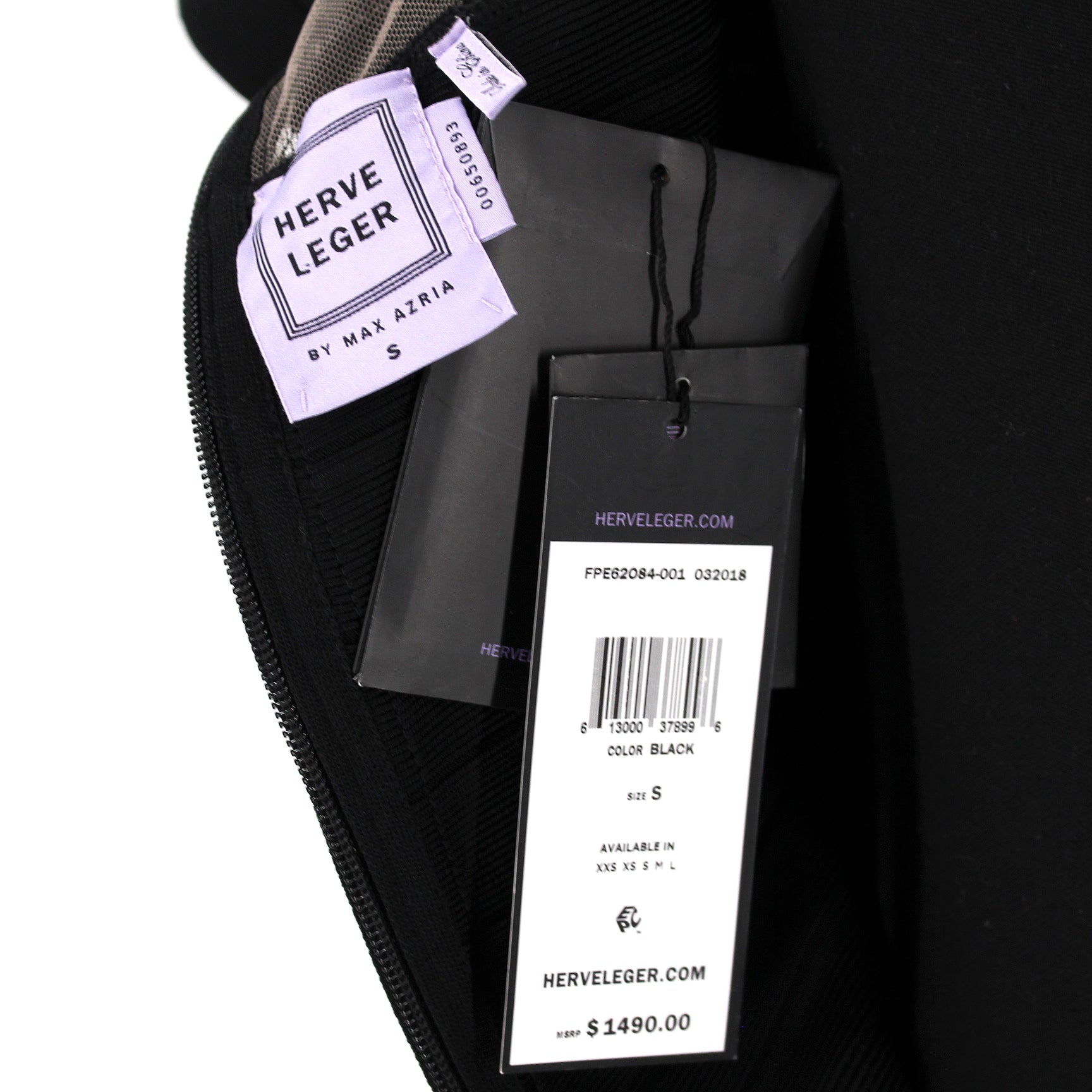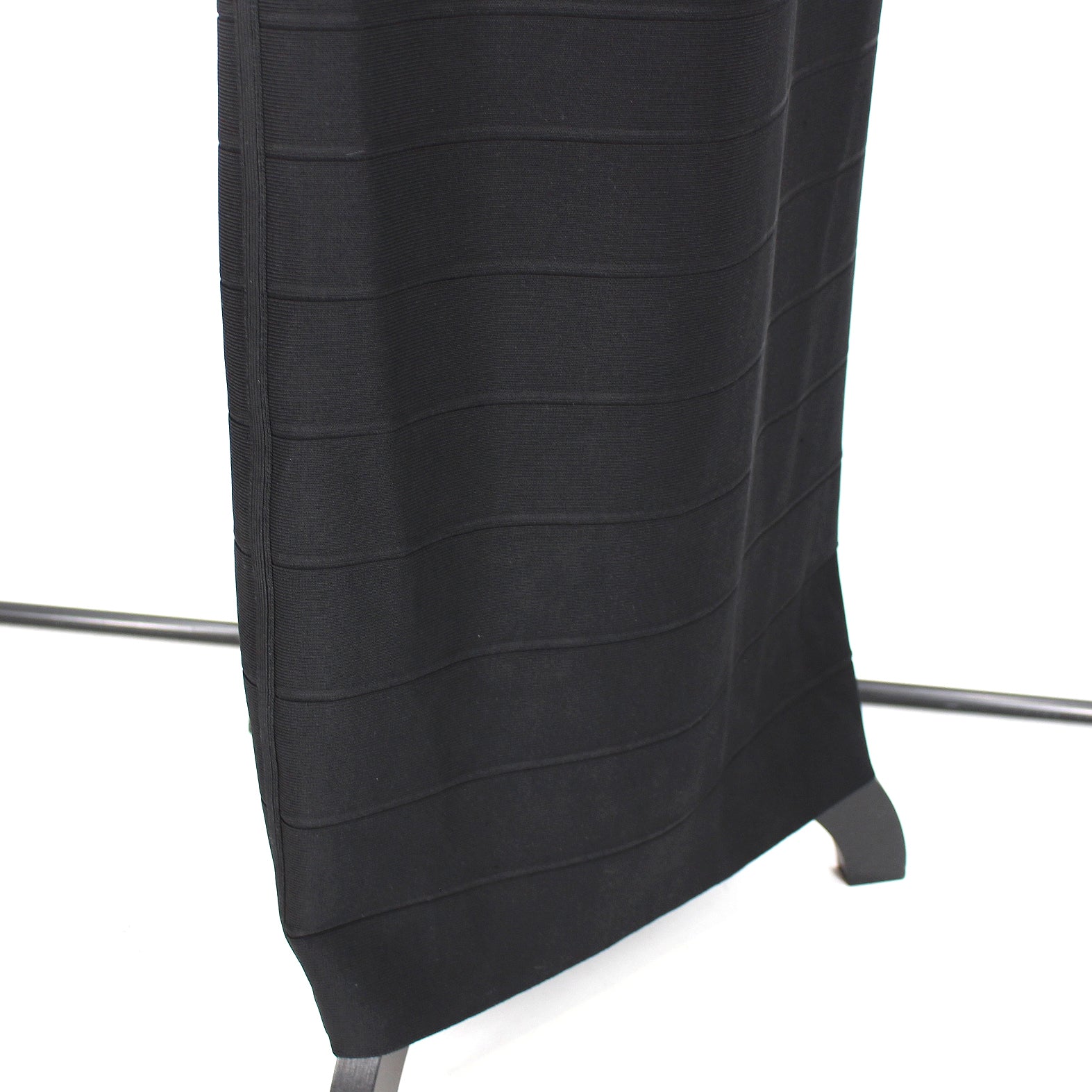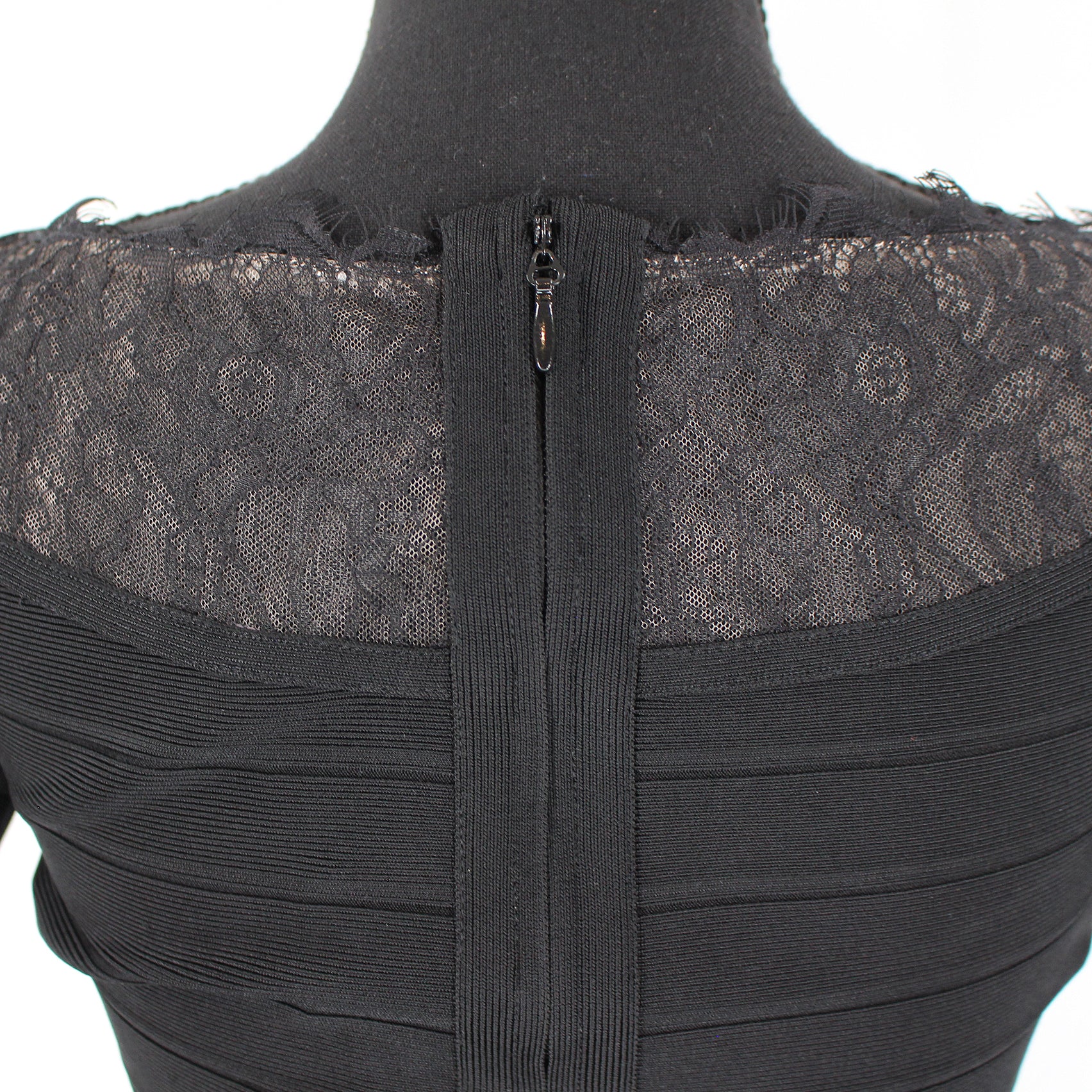 Herve Leger Black Lace Trim Short Sleeve Boatneck Bodycon Evening Gown.