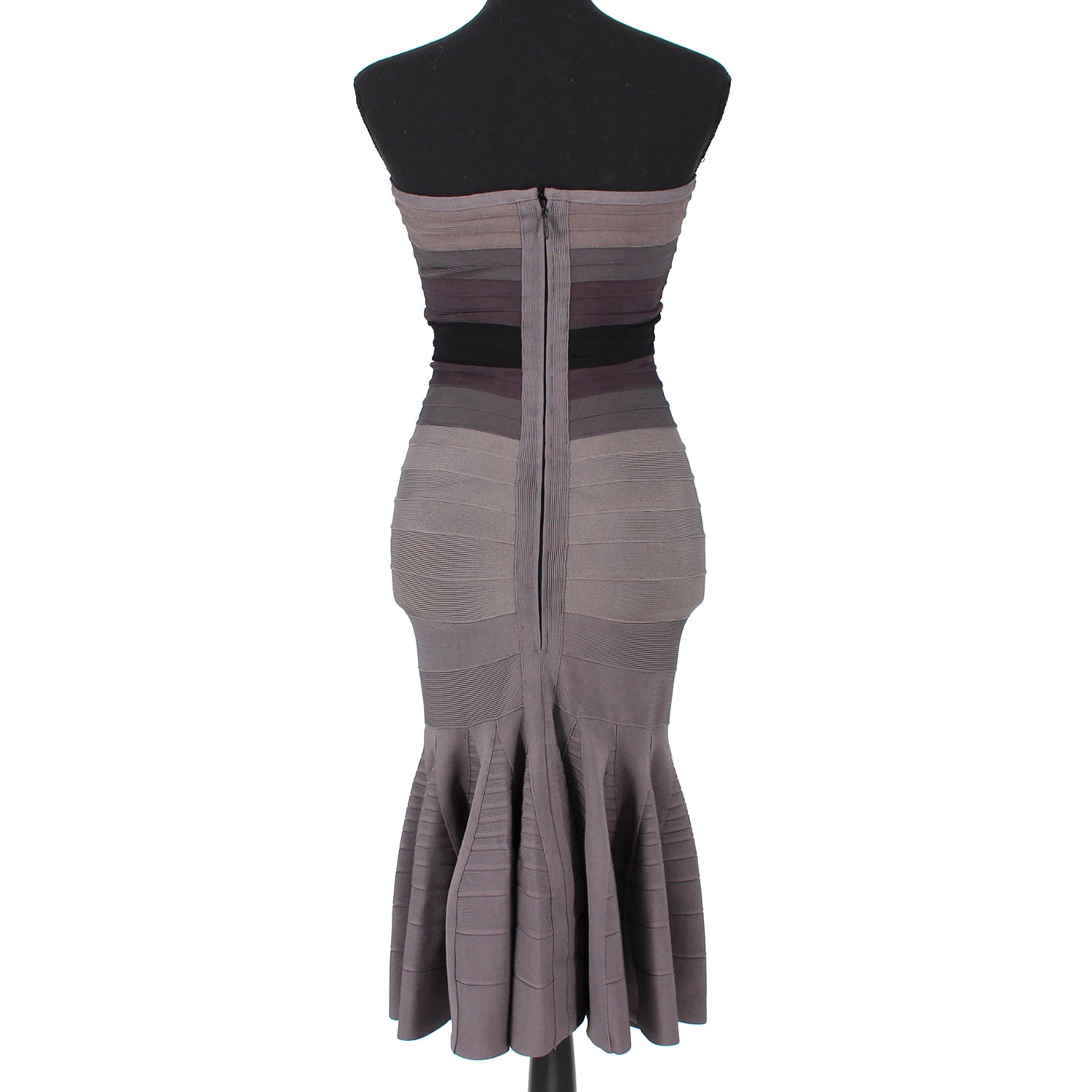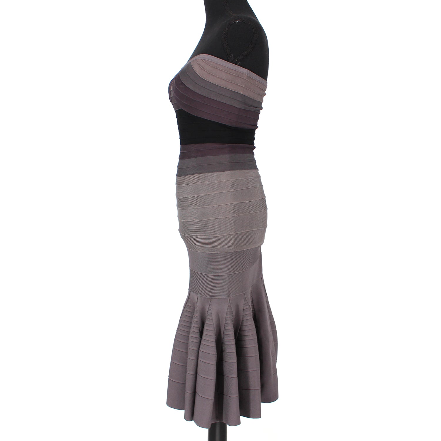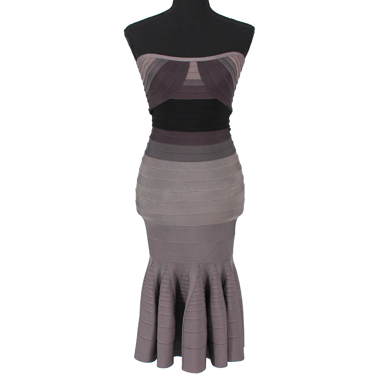Herve Leger Ombré Grey Bandage Strapless Fishtail Dress.