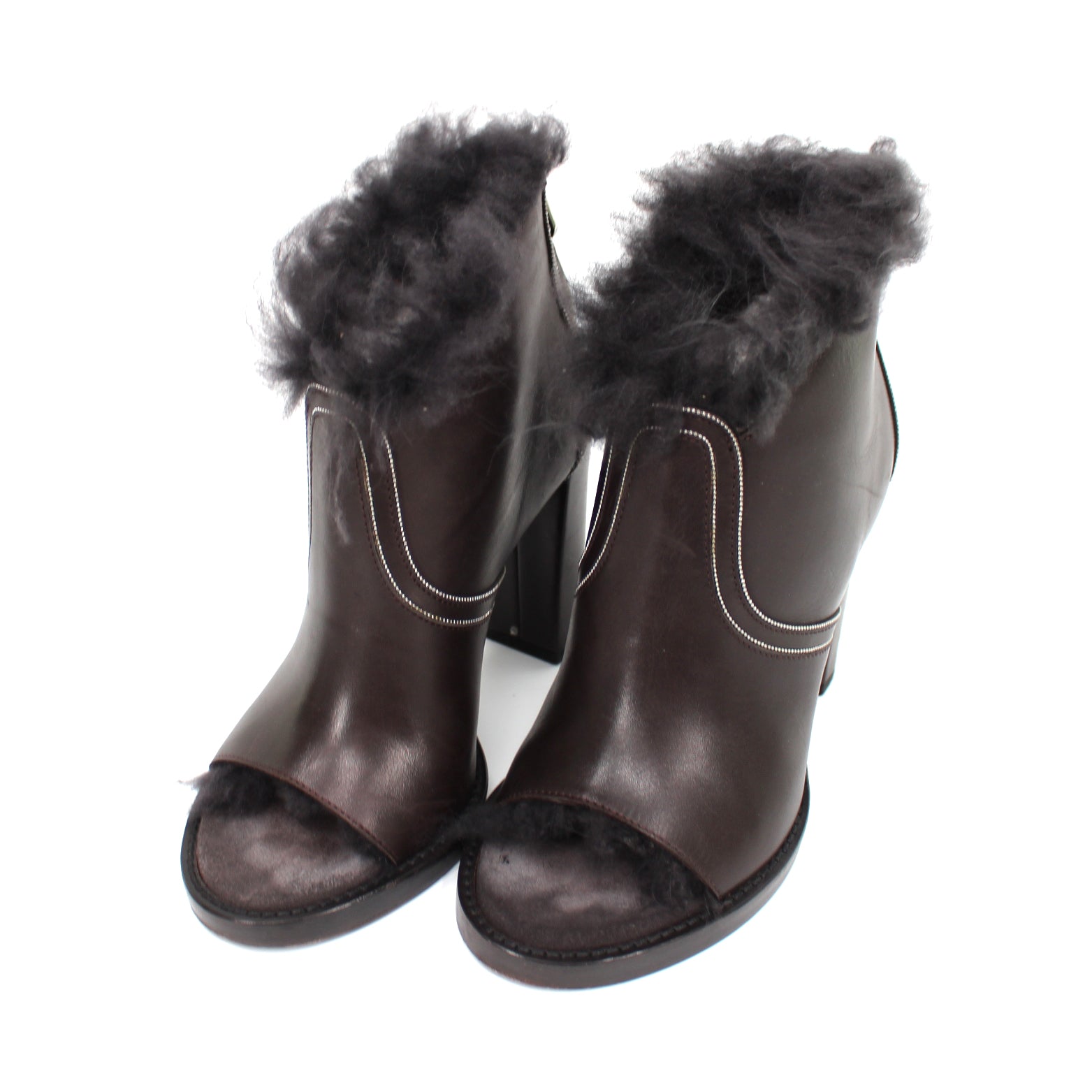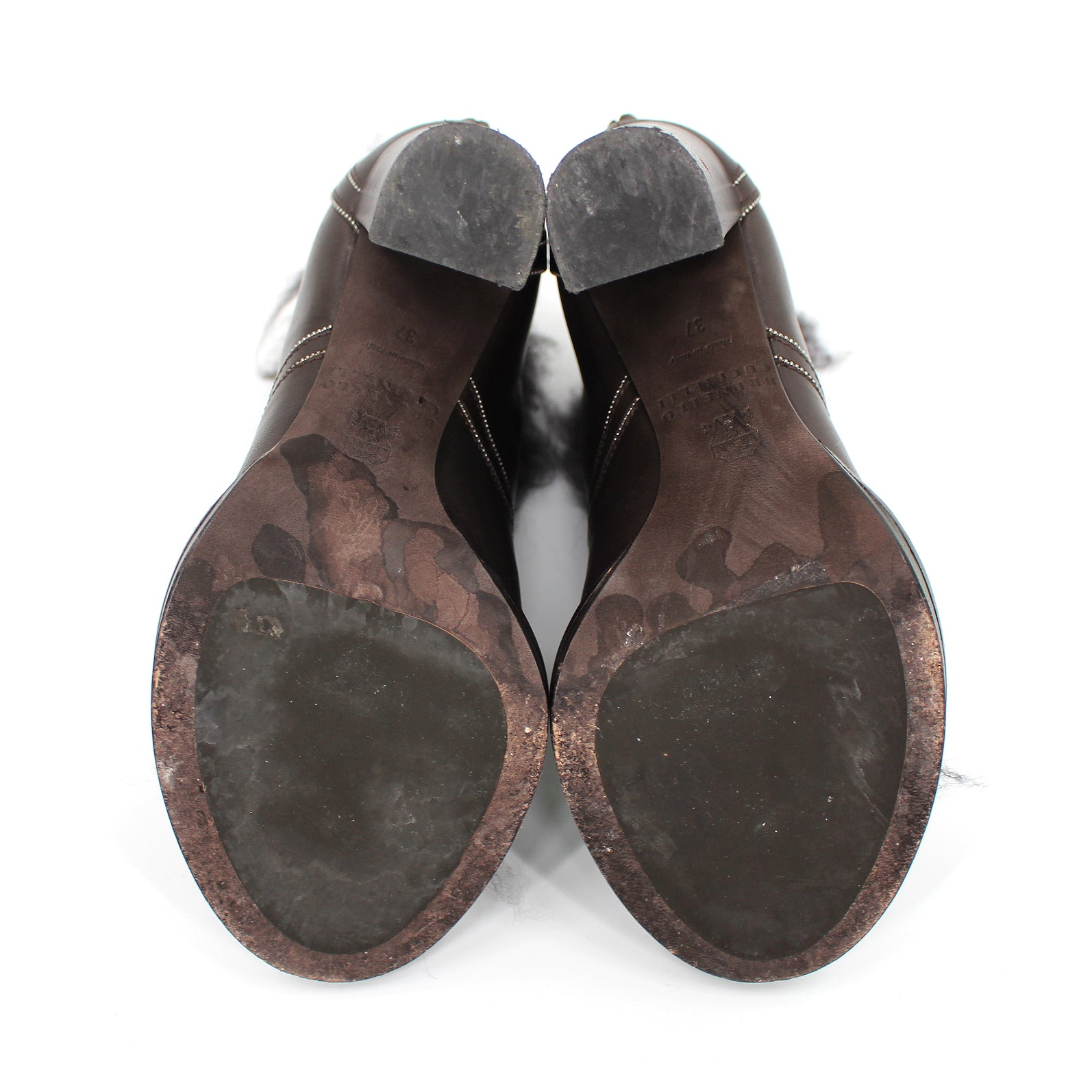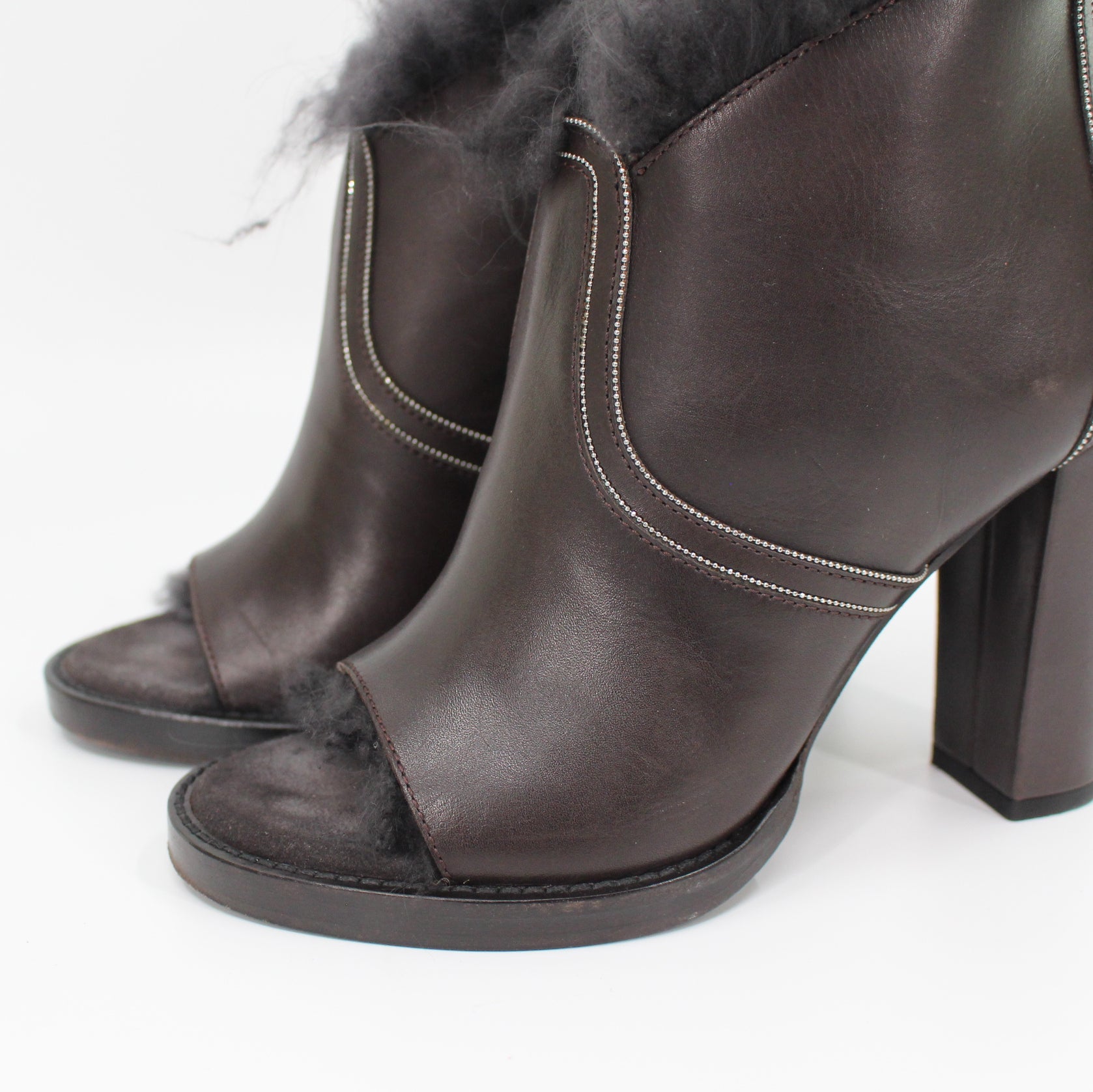 Brunello Cucinelli Black Fur Trim Open Toe Leather Ankle Bootie Sandals