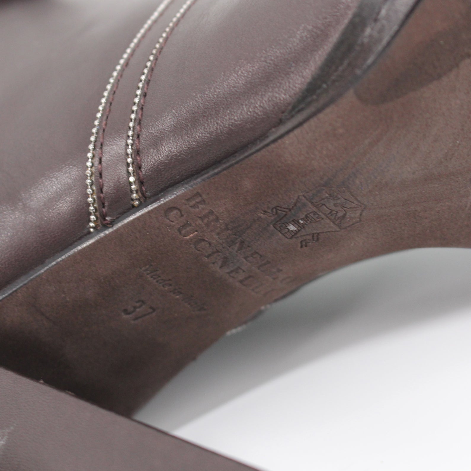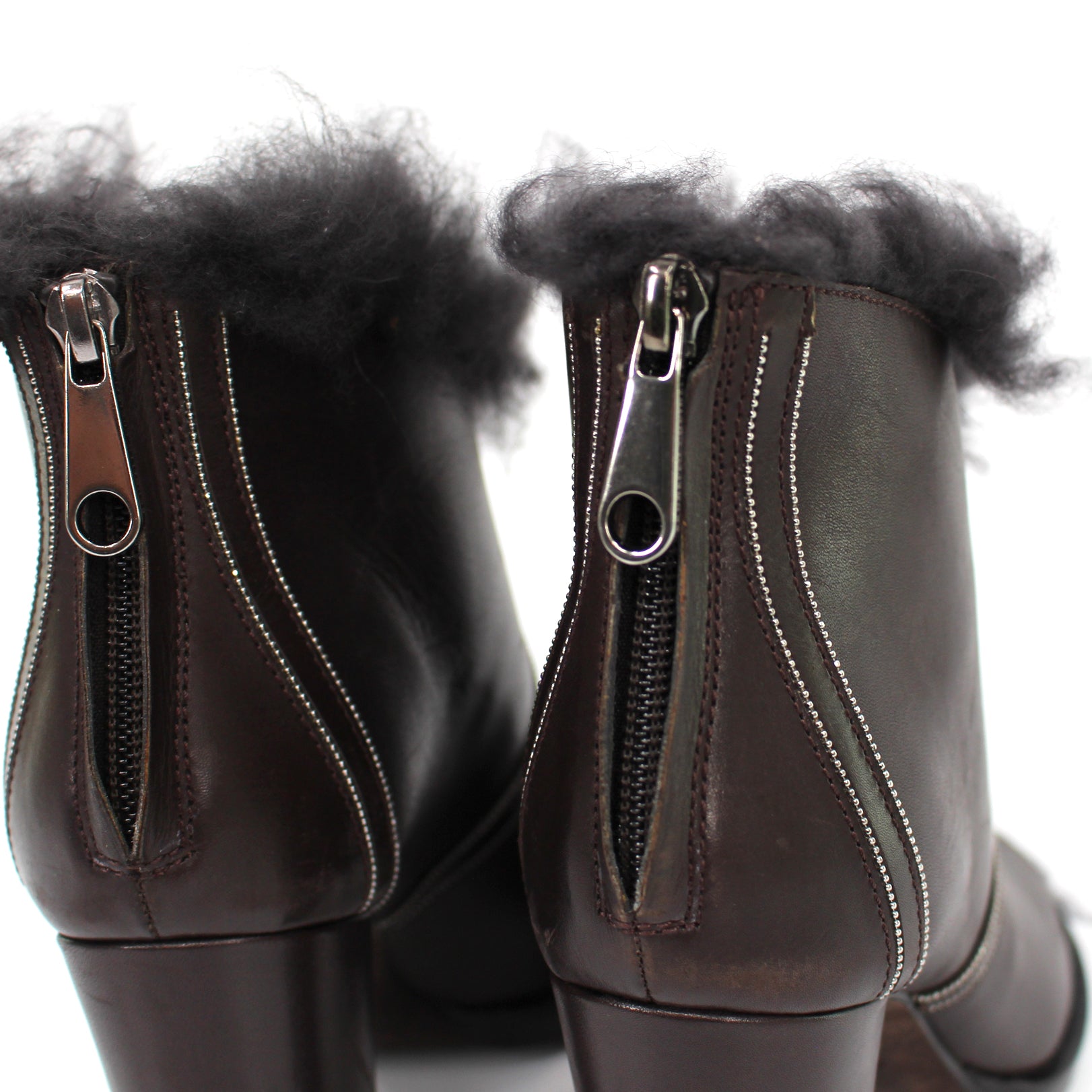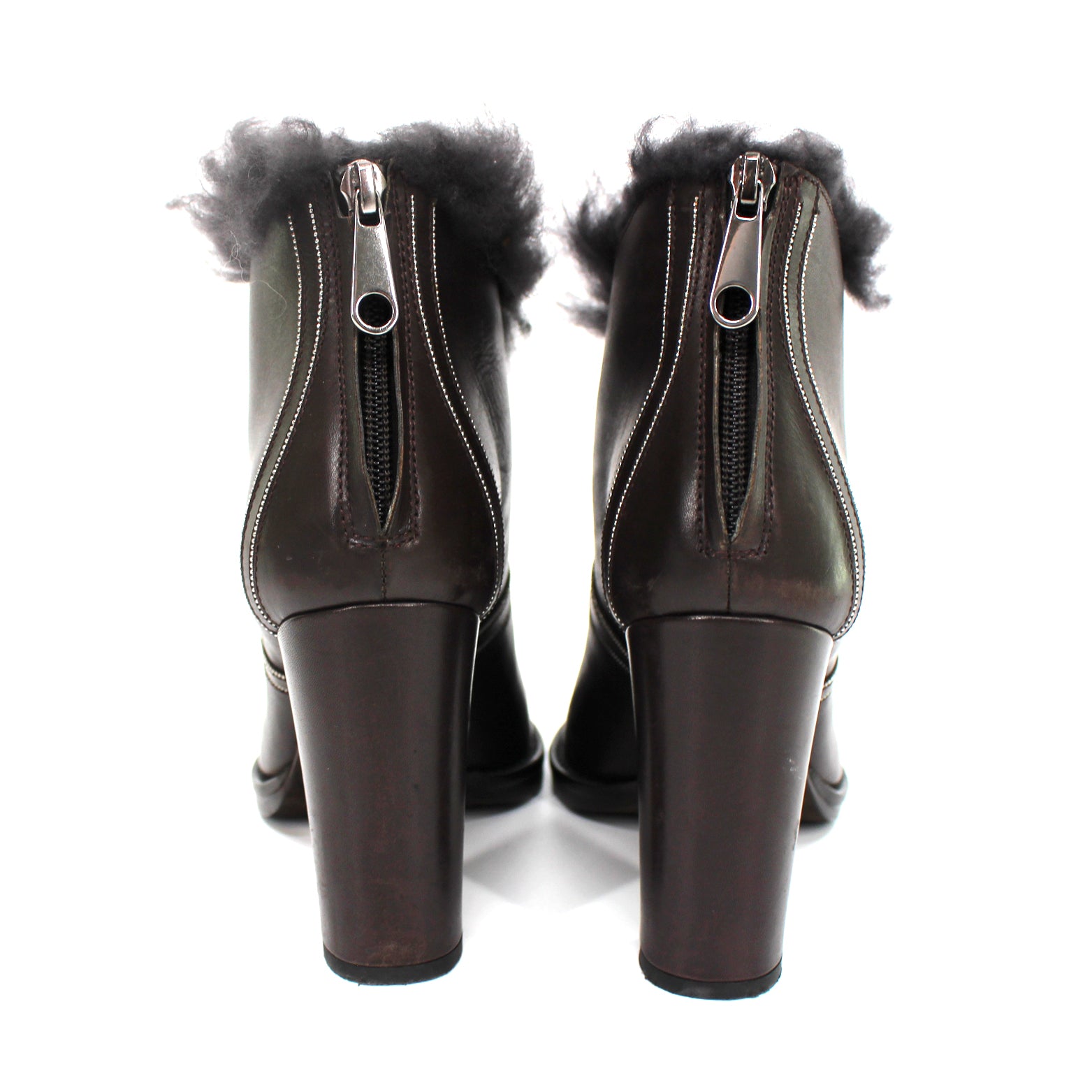 Brunello Cucinelli Black Fur Trim Open Toe Leather Ankle Bootie Sandals