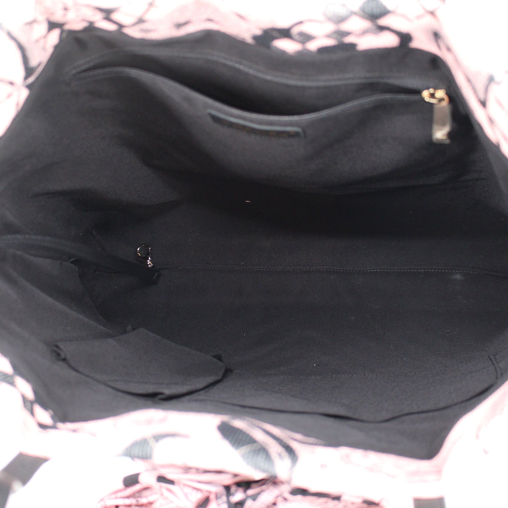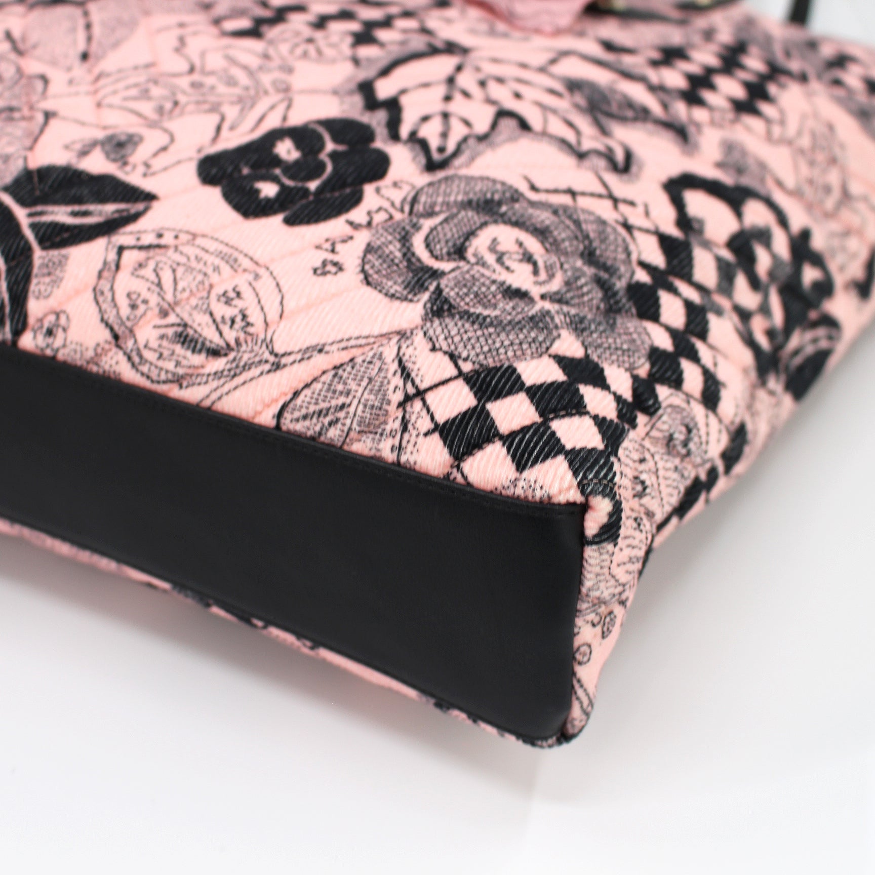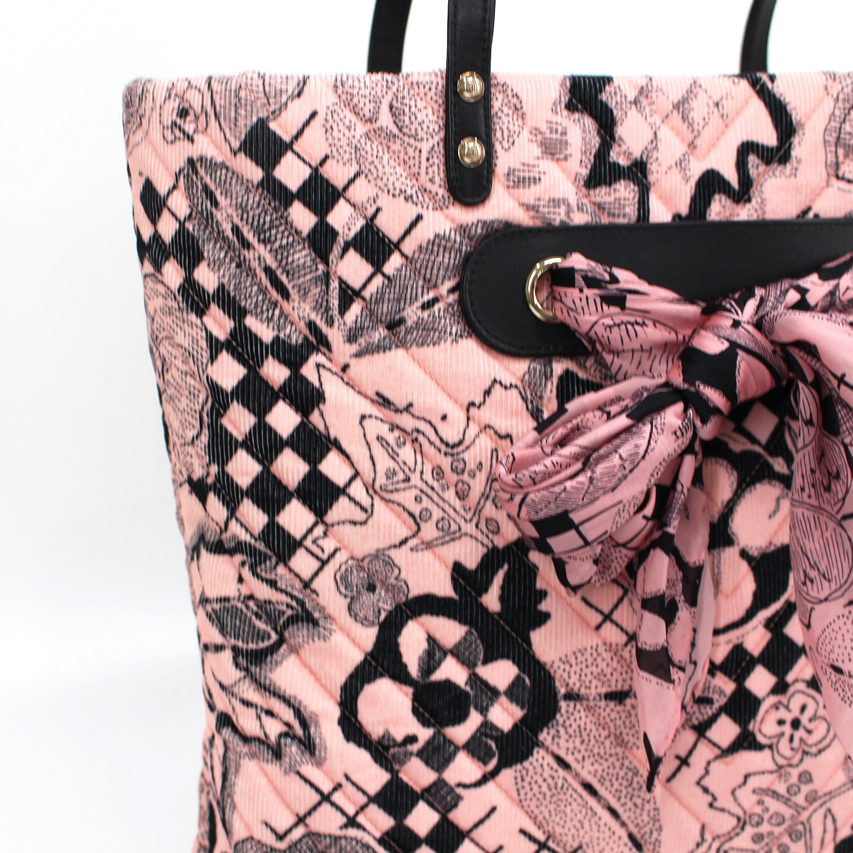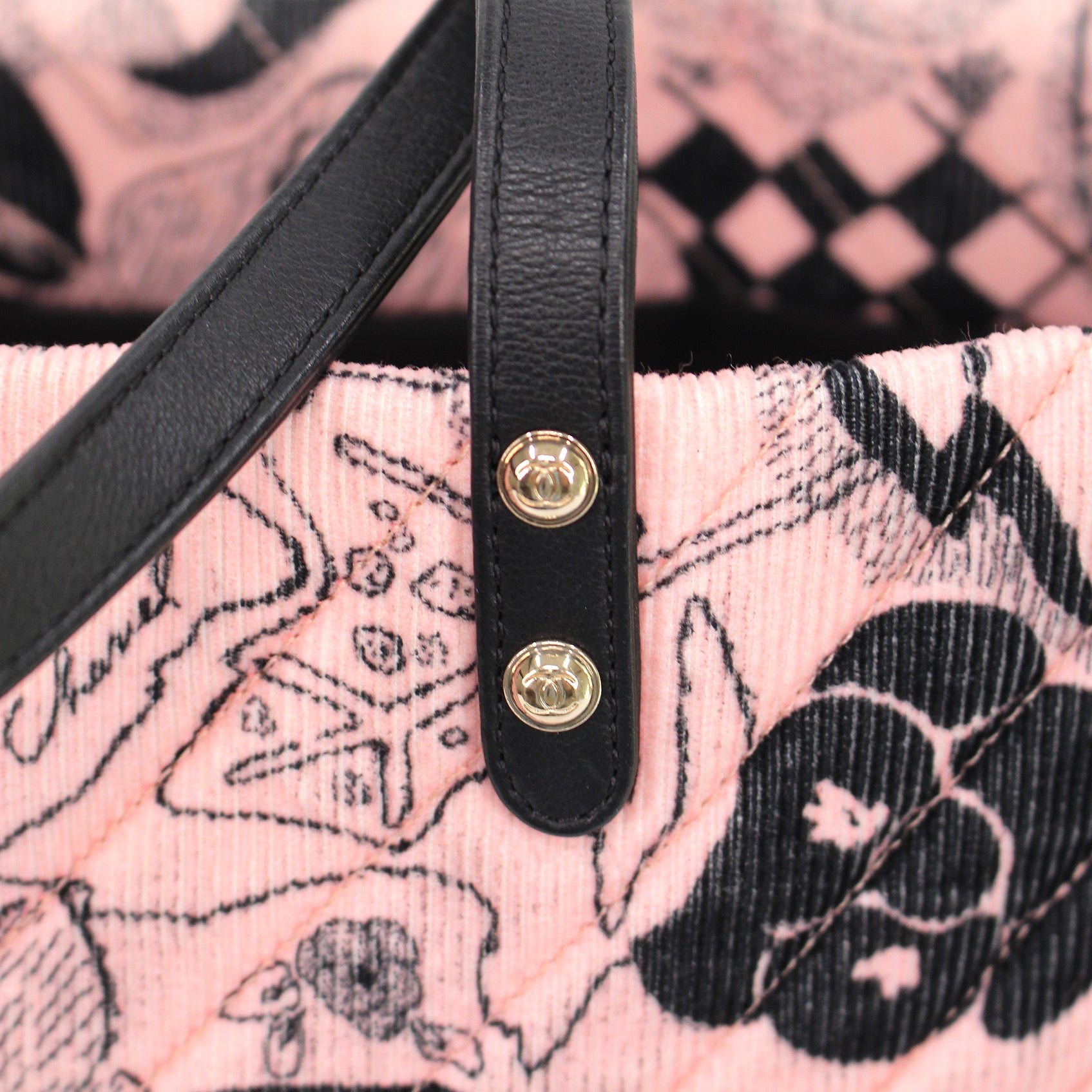 Chanel Scarf Tote Pink Corduroy Black Camellia Pattern Leather Handle Bag