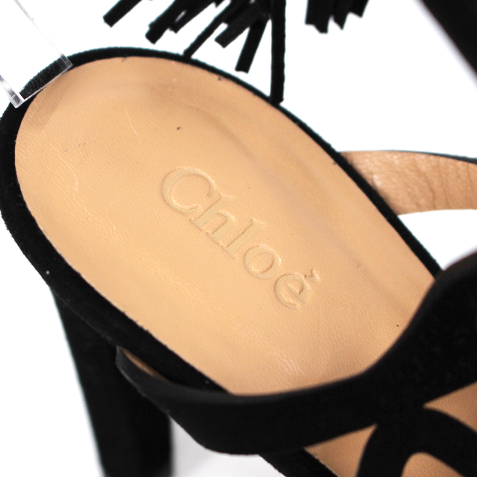 Chloe Kendal Black Suede Caged Cut-Out Heeled Tassel Tie Ankle Sandals
