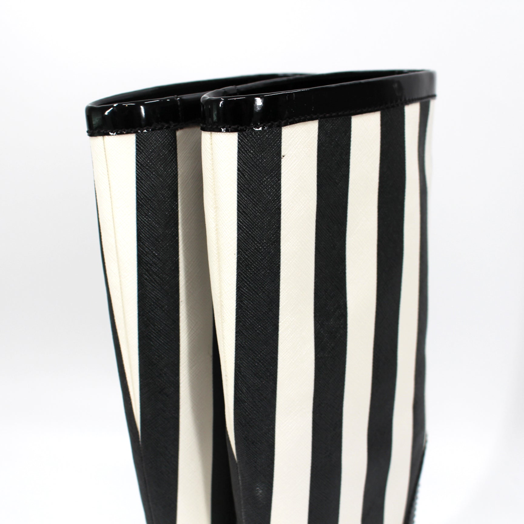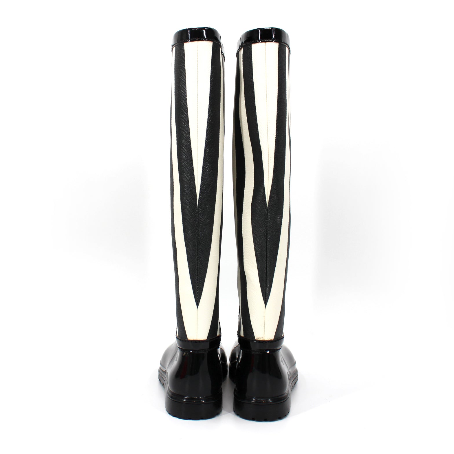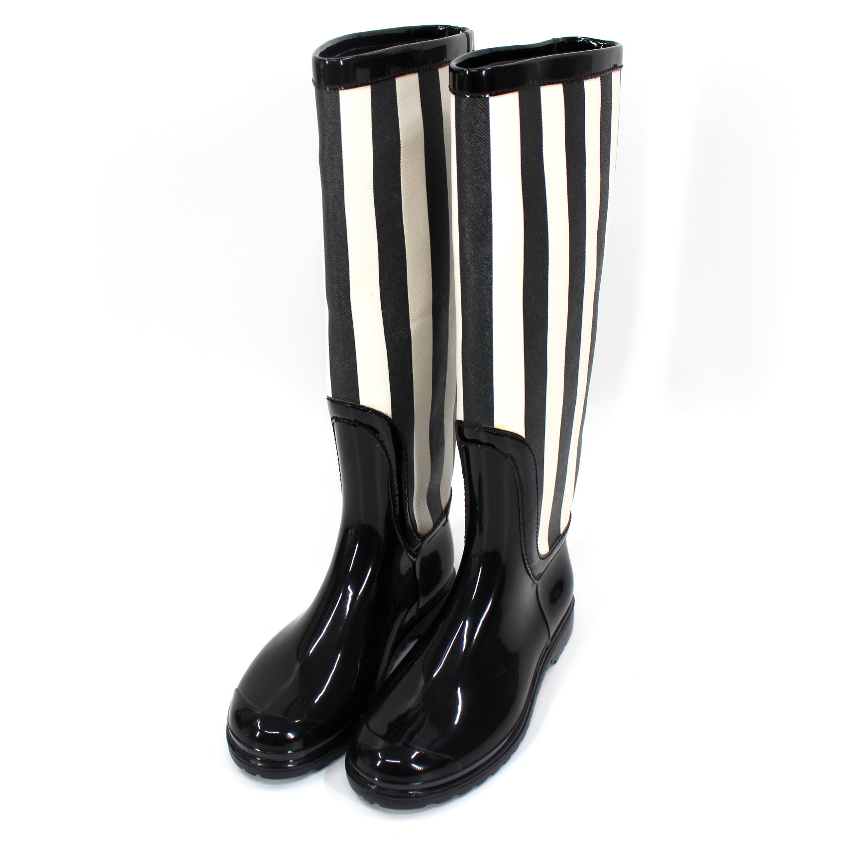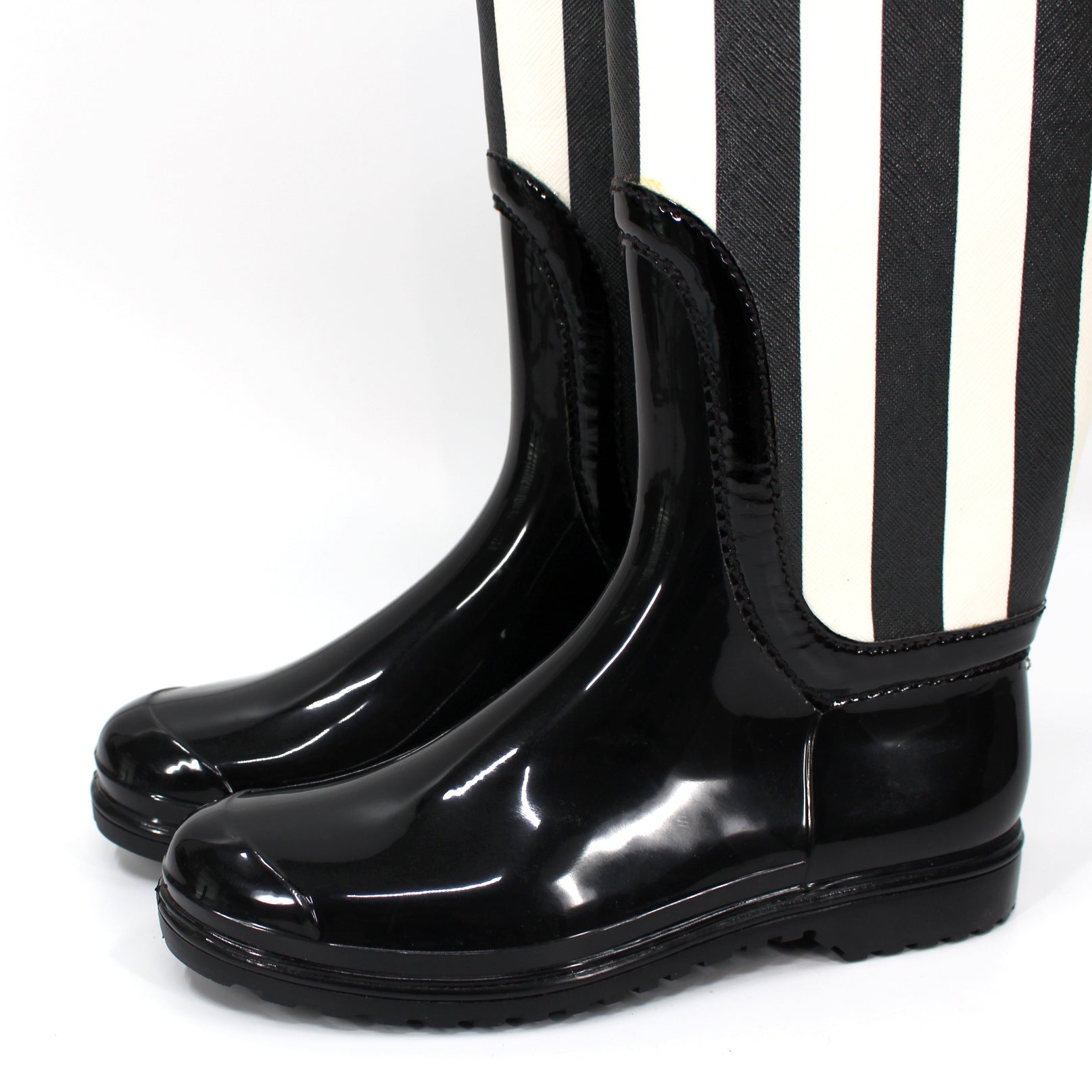 Dolce & Gabbana Wellington Knee High Black White Striped Rain Boots